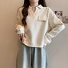 Nueva sudadera retro literaria de 300 jin para mujer otoño 2025 nuevo sentido del diseño cuello suelto cubre vientre top