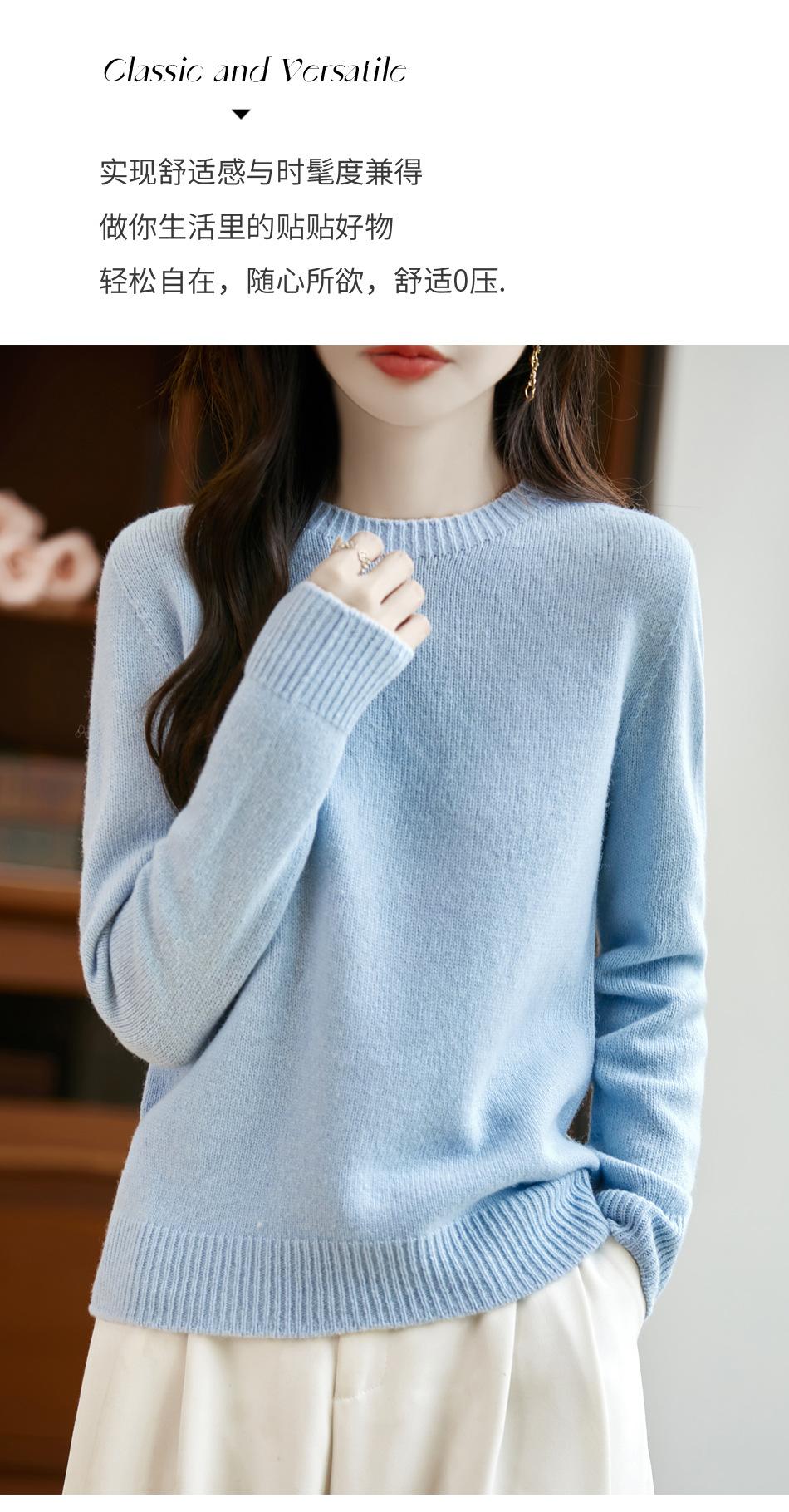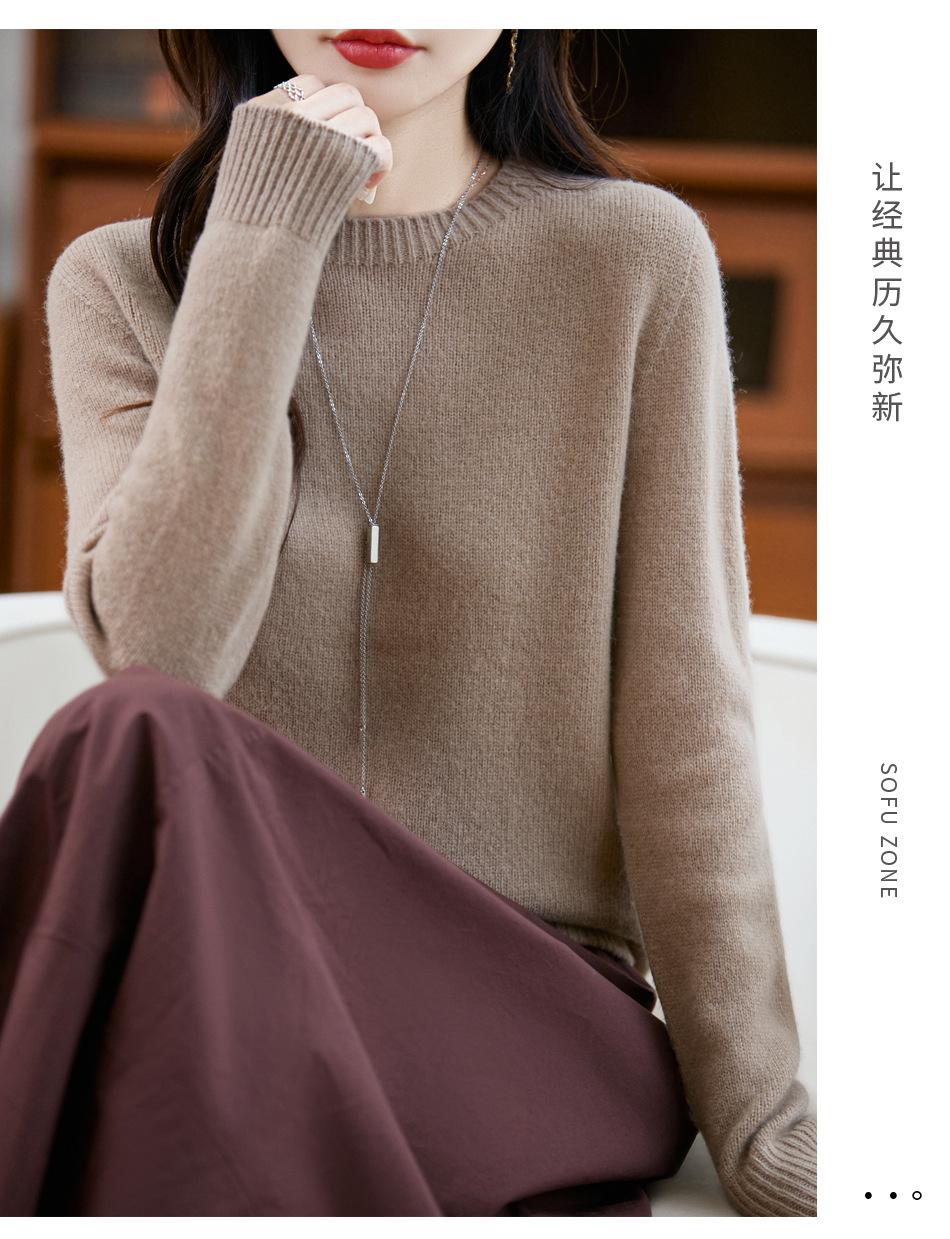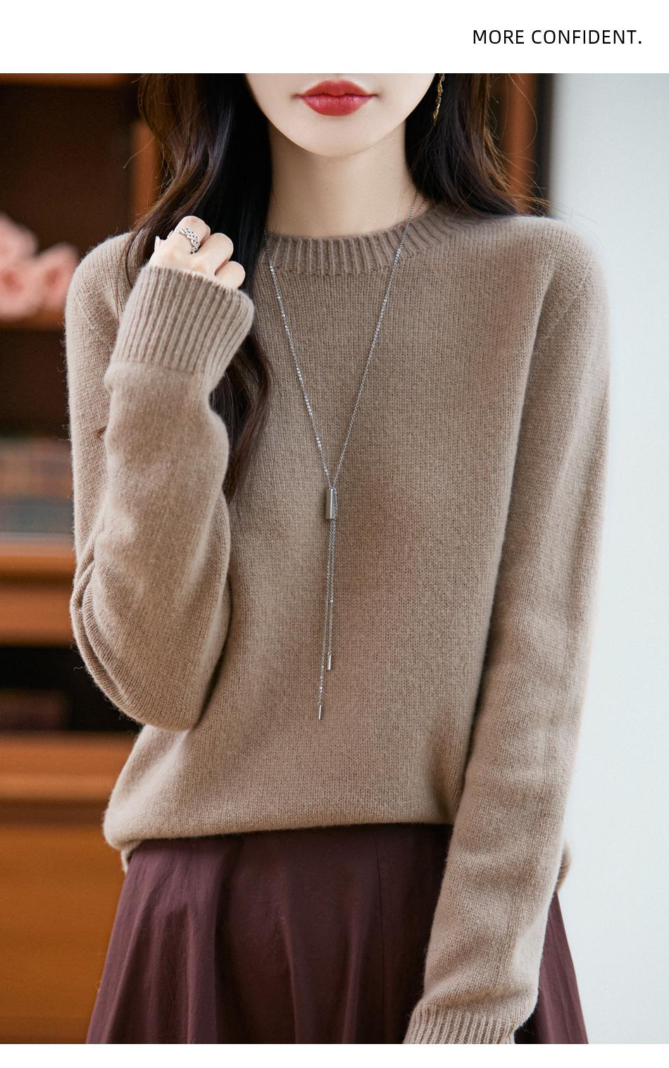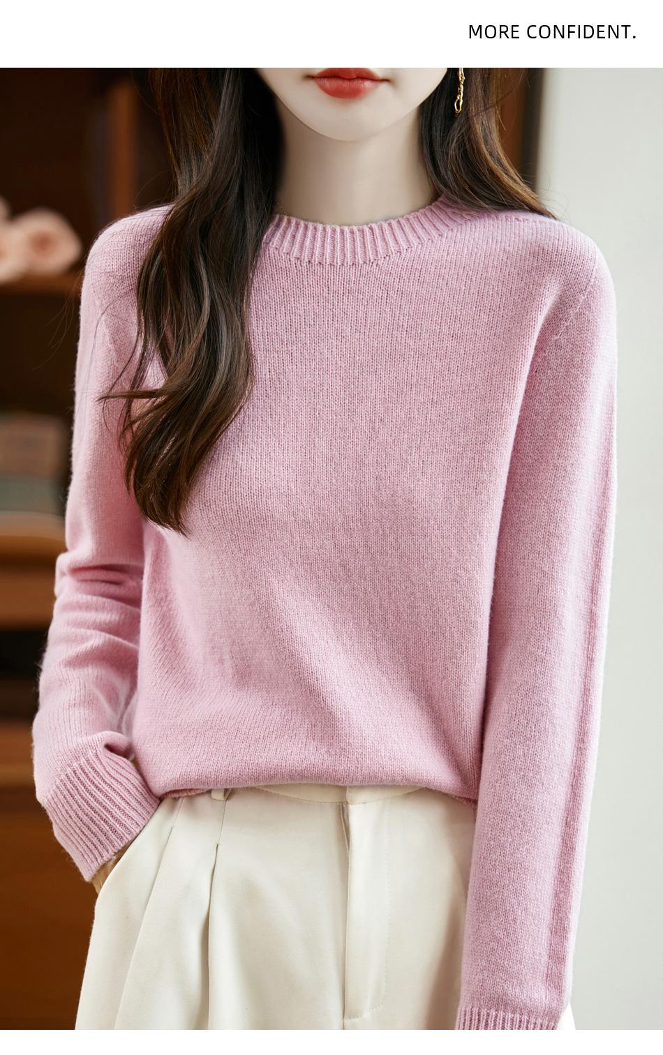 Nuevo jersey de punto de color sólido con cuello redondo casual versátil