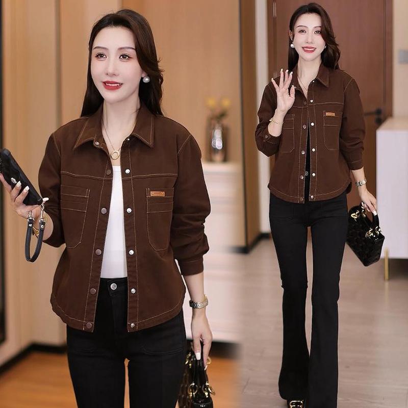 Chaqueta Corta de Mezclilla de Moda para Mujer 2025 Otoño Nuevo Estilo Estilo Extranjero Holgada Adelgazante Sencilla Versátil Casual Chaqueta Top