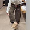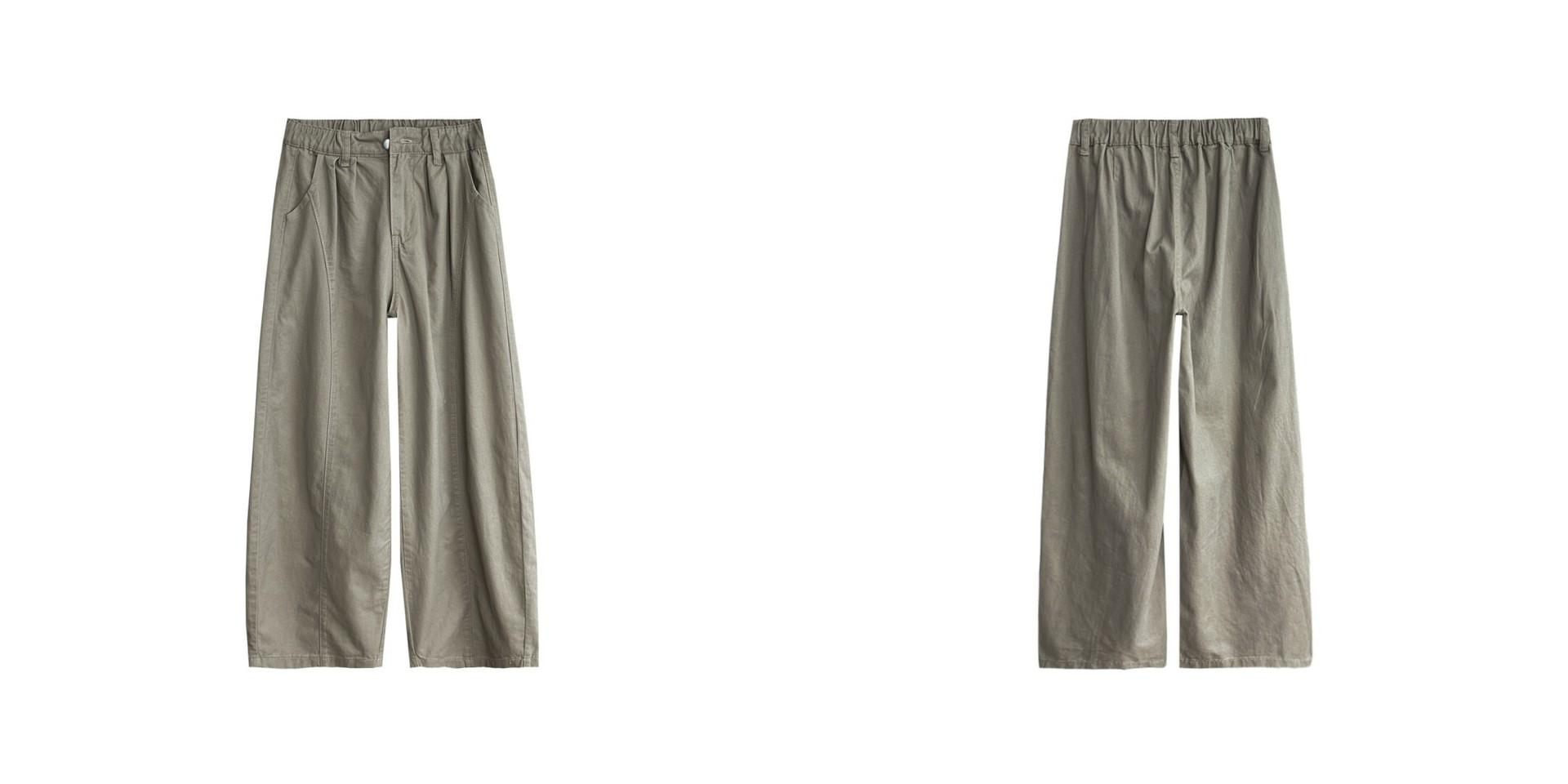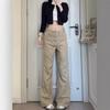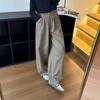 Pantalones casuales retro caqui de pierna ancha para mujer, primavera y otoño, cintura elástica, pantalones holgados tipo cimitarra, pantalones americanos Yamamoto