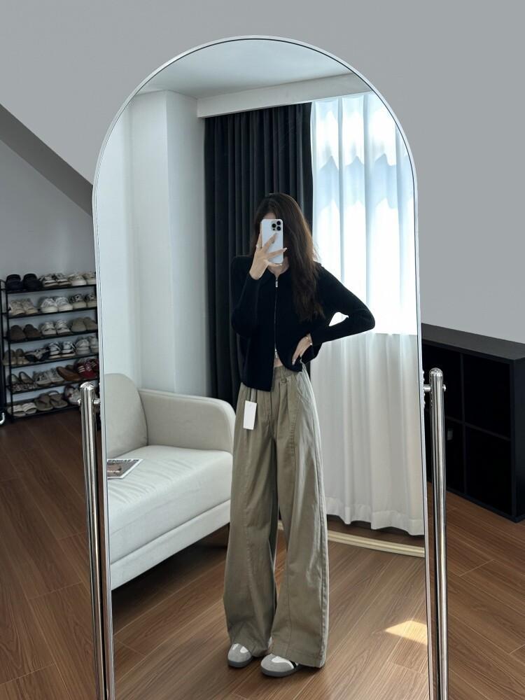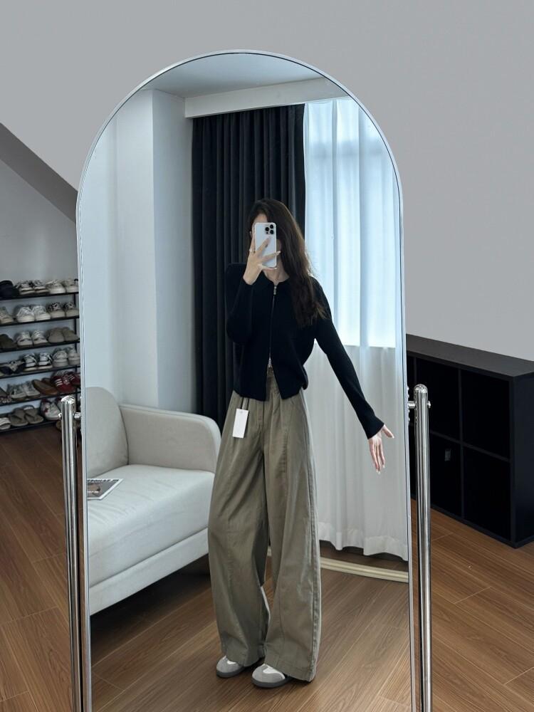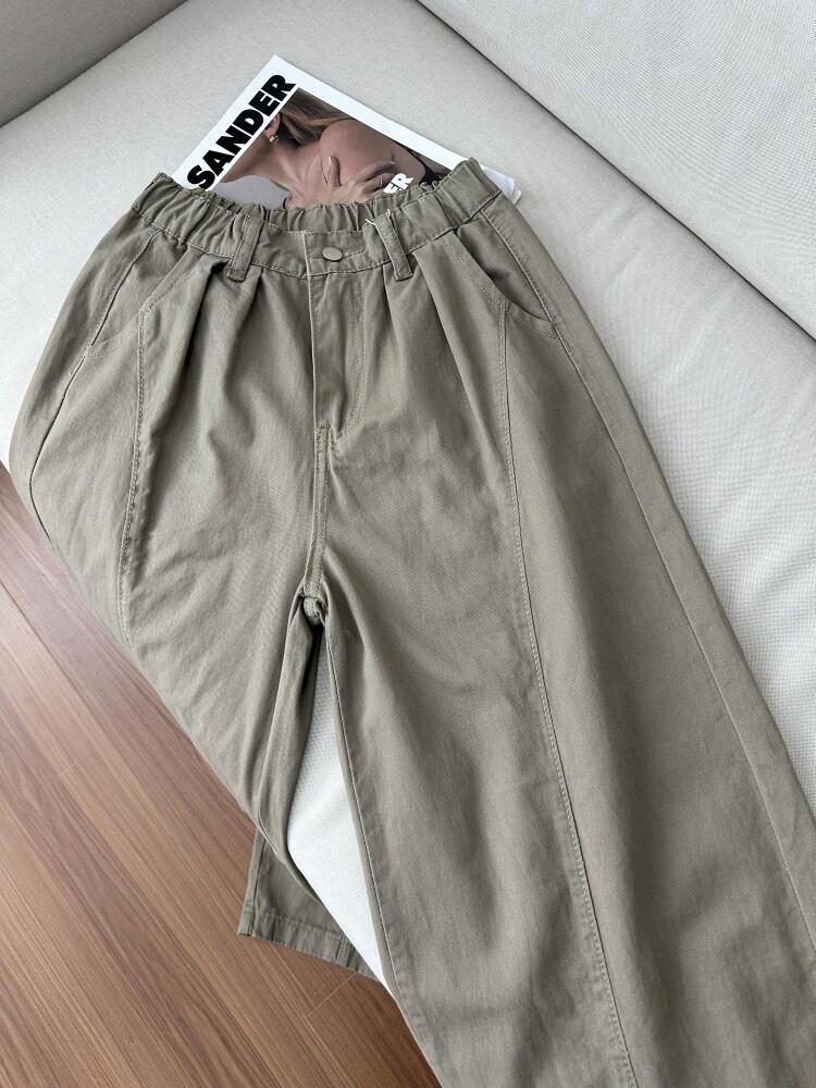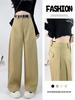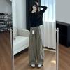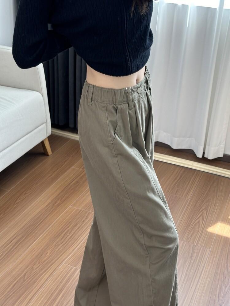 Pantalones casuales retro caqui de pierna ancha para mujer primavera y otoño 2025 cintura elástica holgados tipo cimitarra pantalones americanos Yamamoto