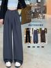 Pantalones de traje grises para mujer, drapeado de alta gama, nuevos otoño 2025, pierna recta, holgados, pantalones largos casuales ajustados, pantalones de pierna ancha