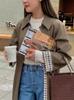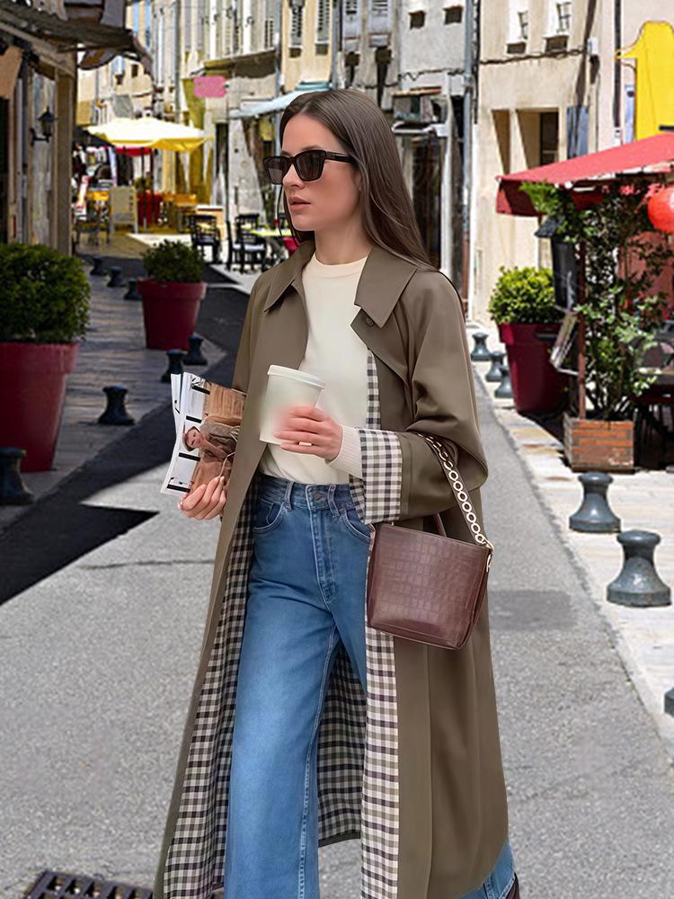 Primavera y Otoño Europeo y Americano Transfronterizo Más Vendido Cuello Vuelto Botón Largo a Cuadros Gabardina Chaqueta Casual Elegante para Mujer para Ir al Trabajo