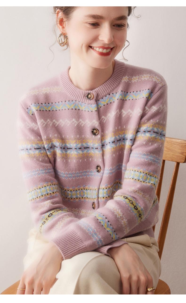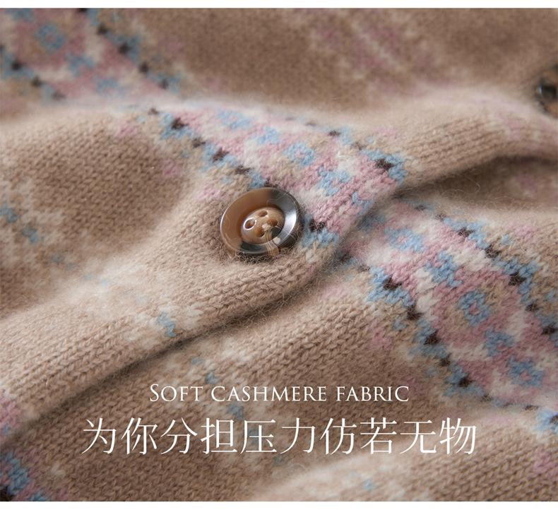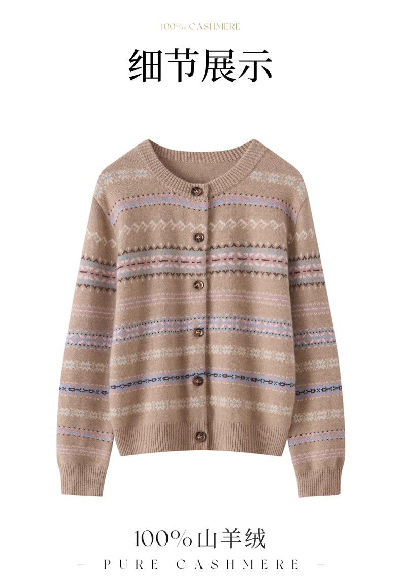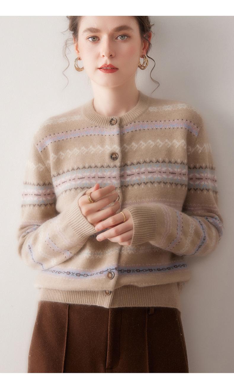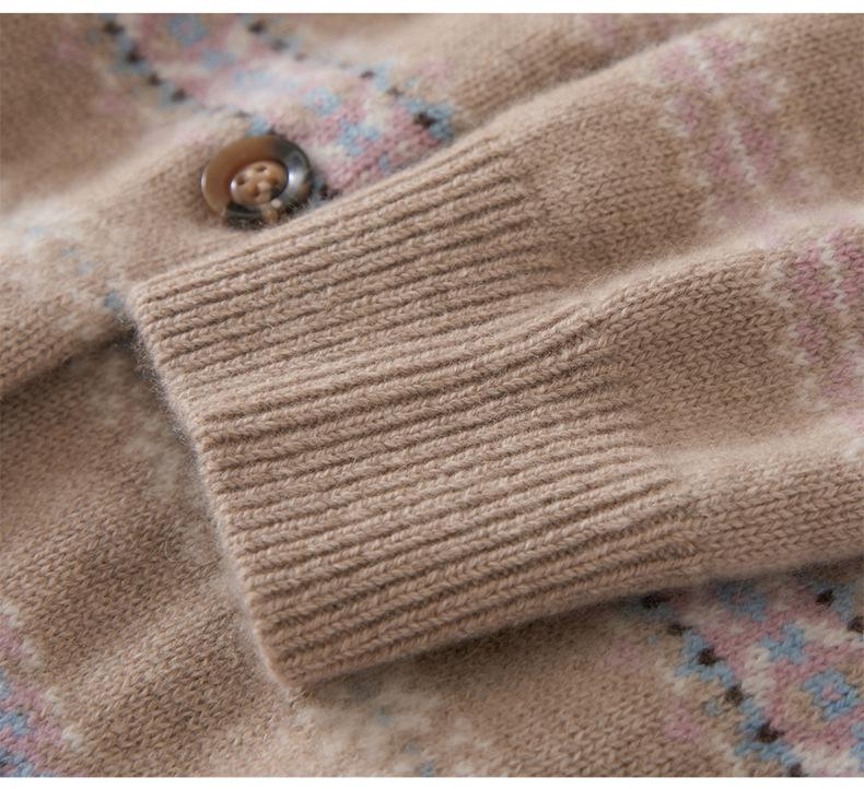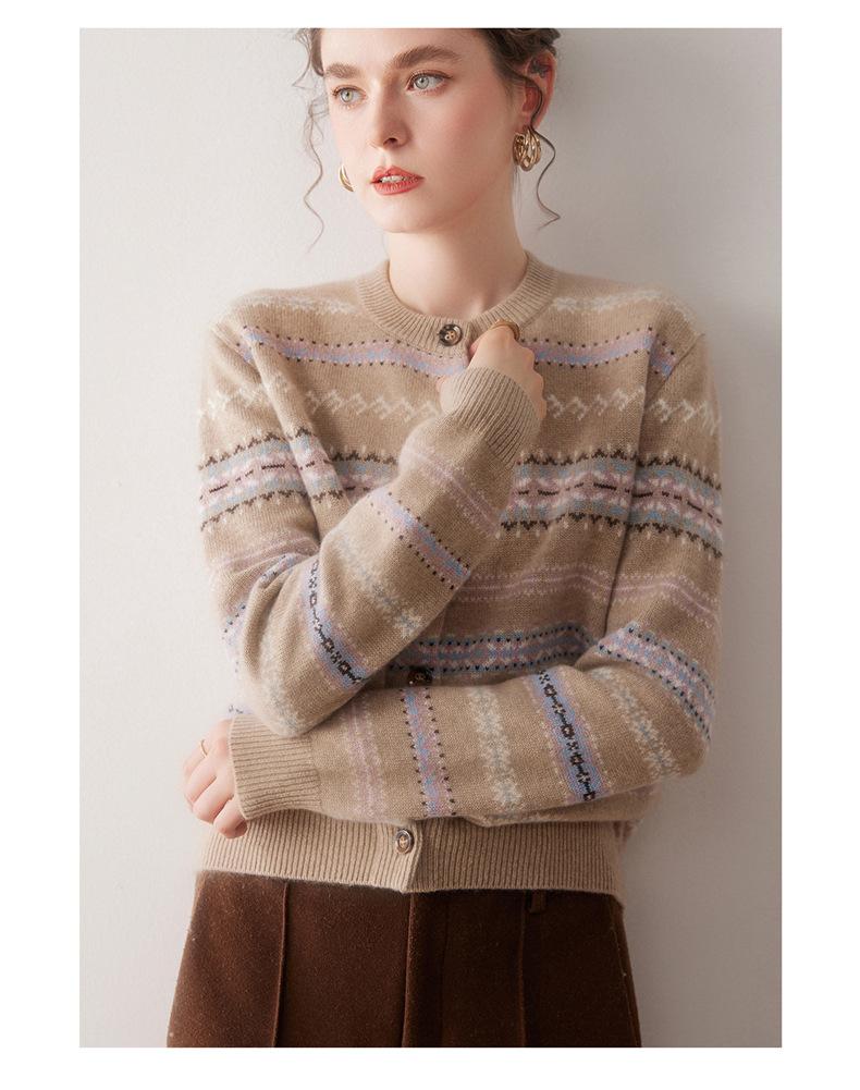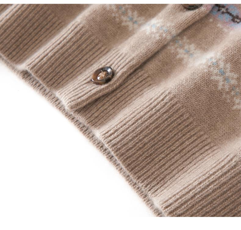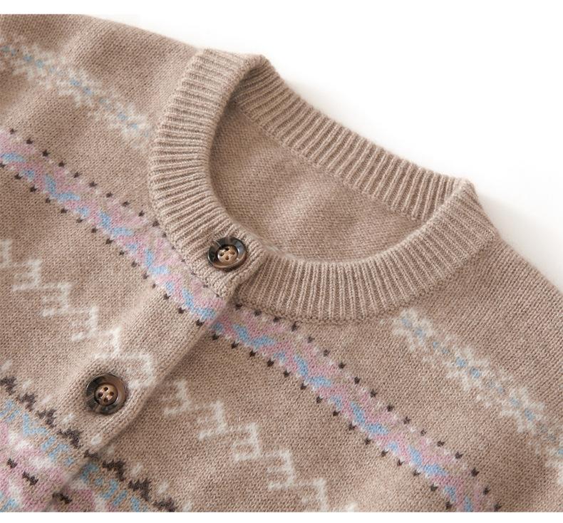 Cárdigan de Cachemira para Mujer 100% Cachemira Pura Otoño Invierno Nueva Moda Cuello Redondo Versátil Jacquard Cálido Suéter Tejido Abrigo