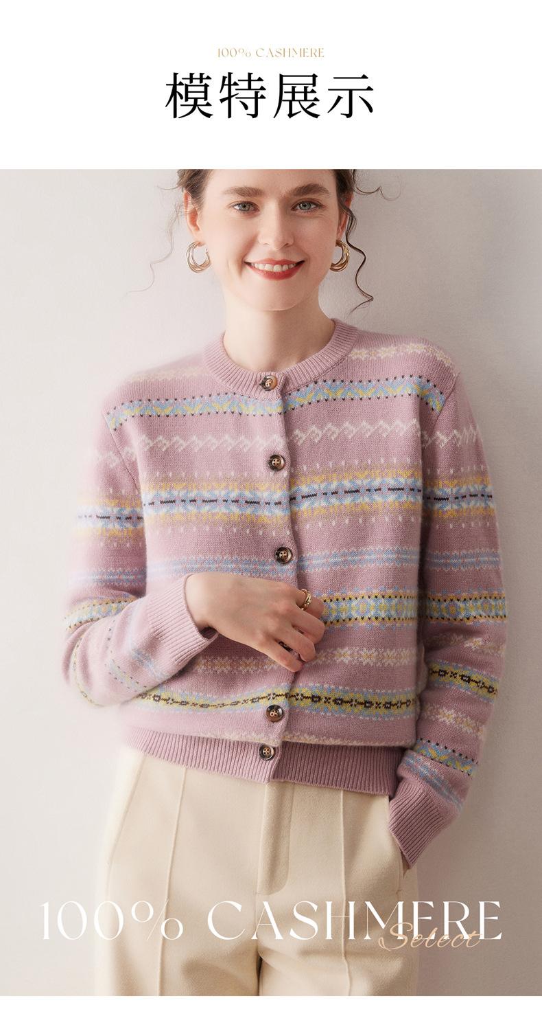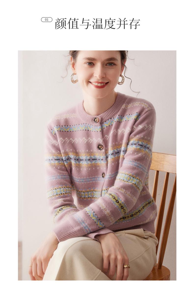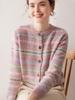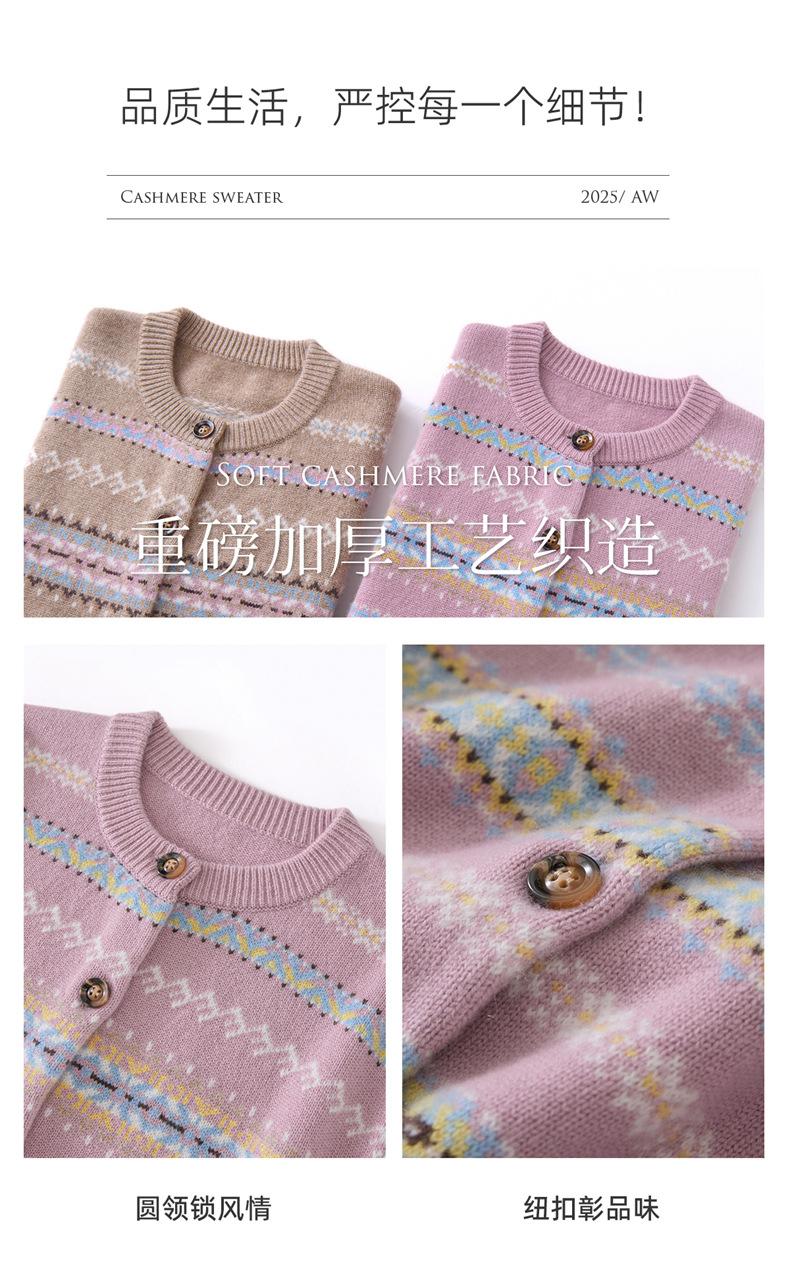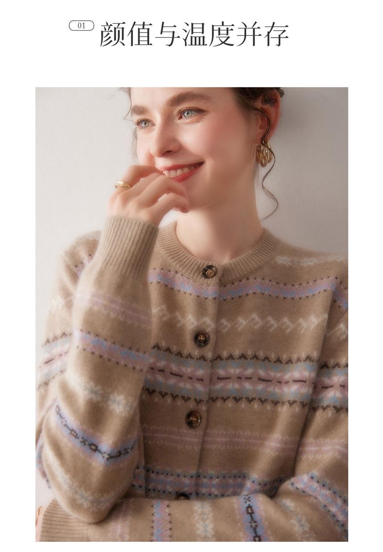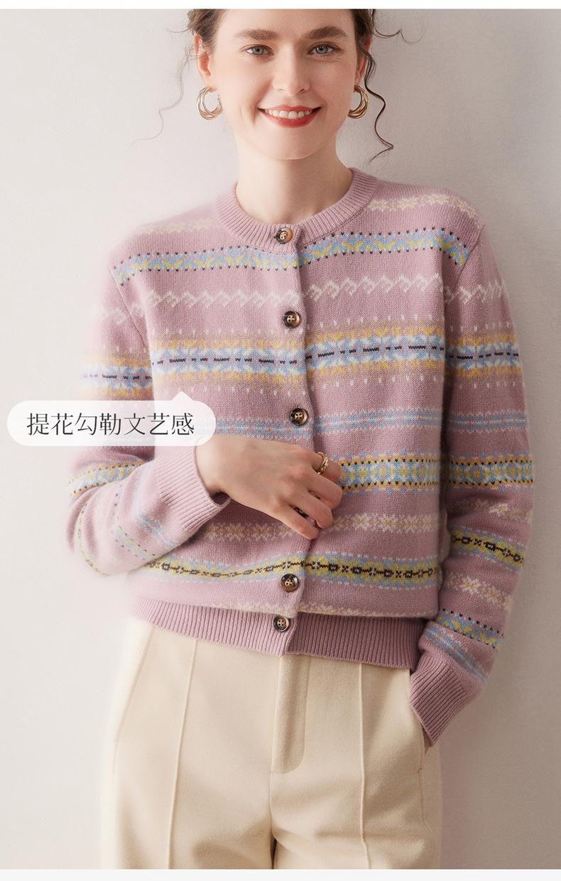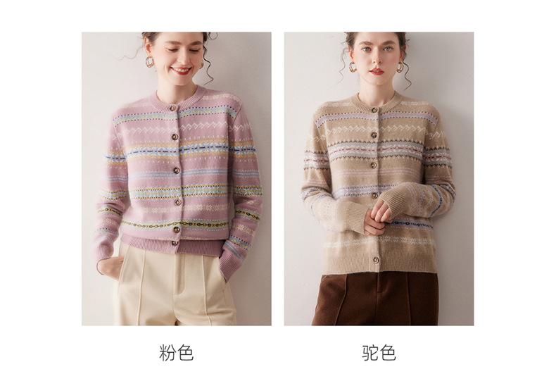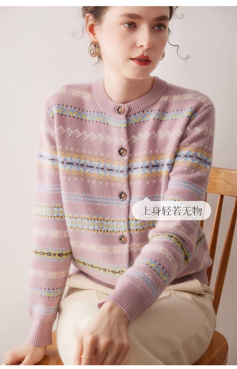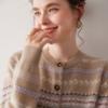 Cárdigan de Cachemira para Mujer 100% Cachemira Pura Otoño Invierno Nueva Moda Cuello Redondo Versátil Jacquard Cálido Suéter Tejido Abrigo