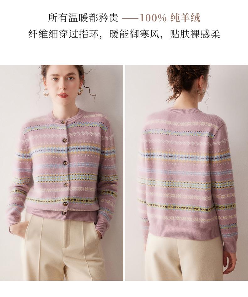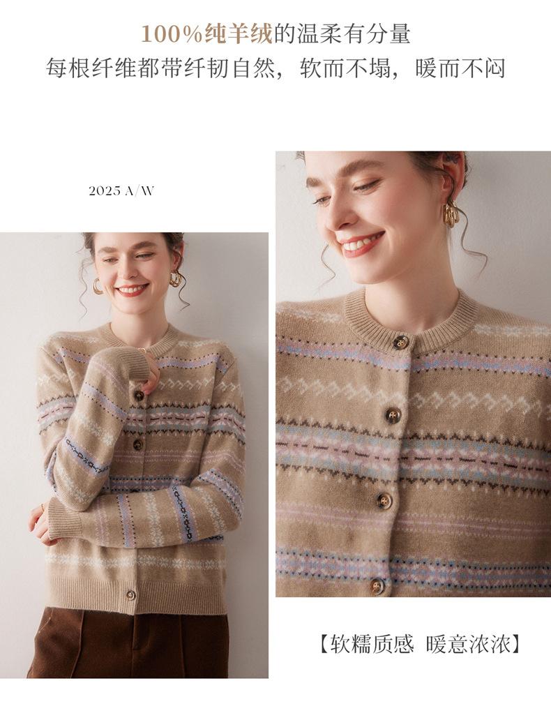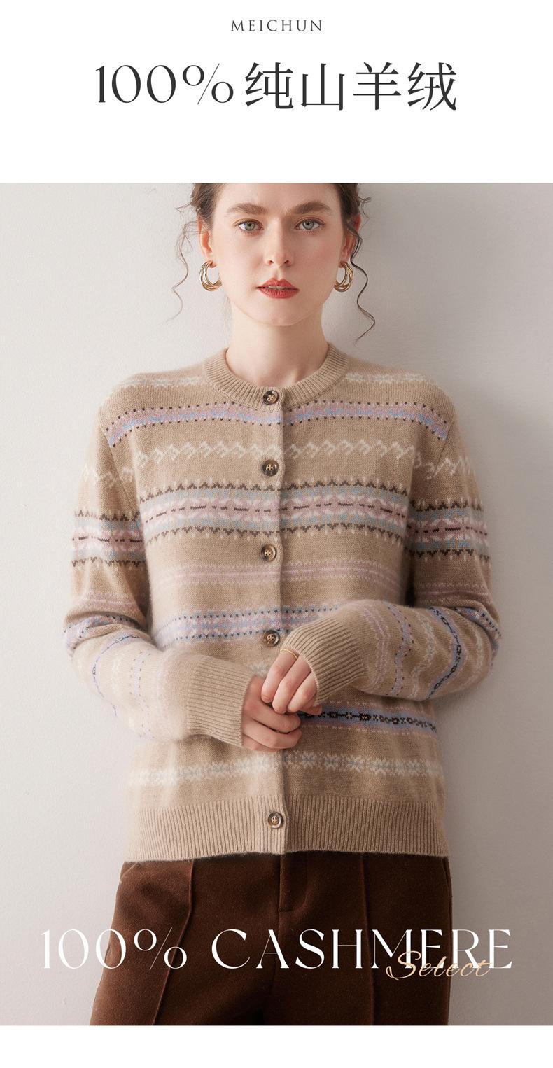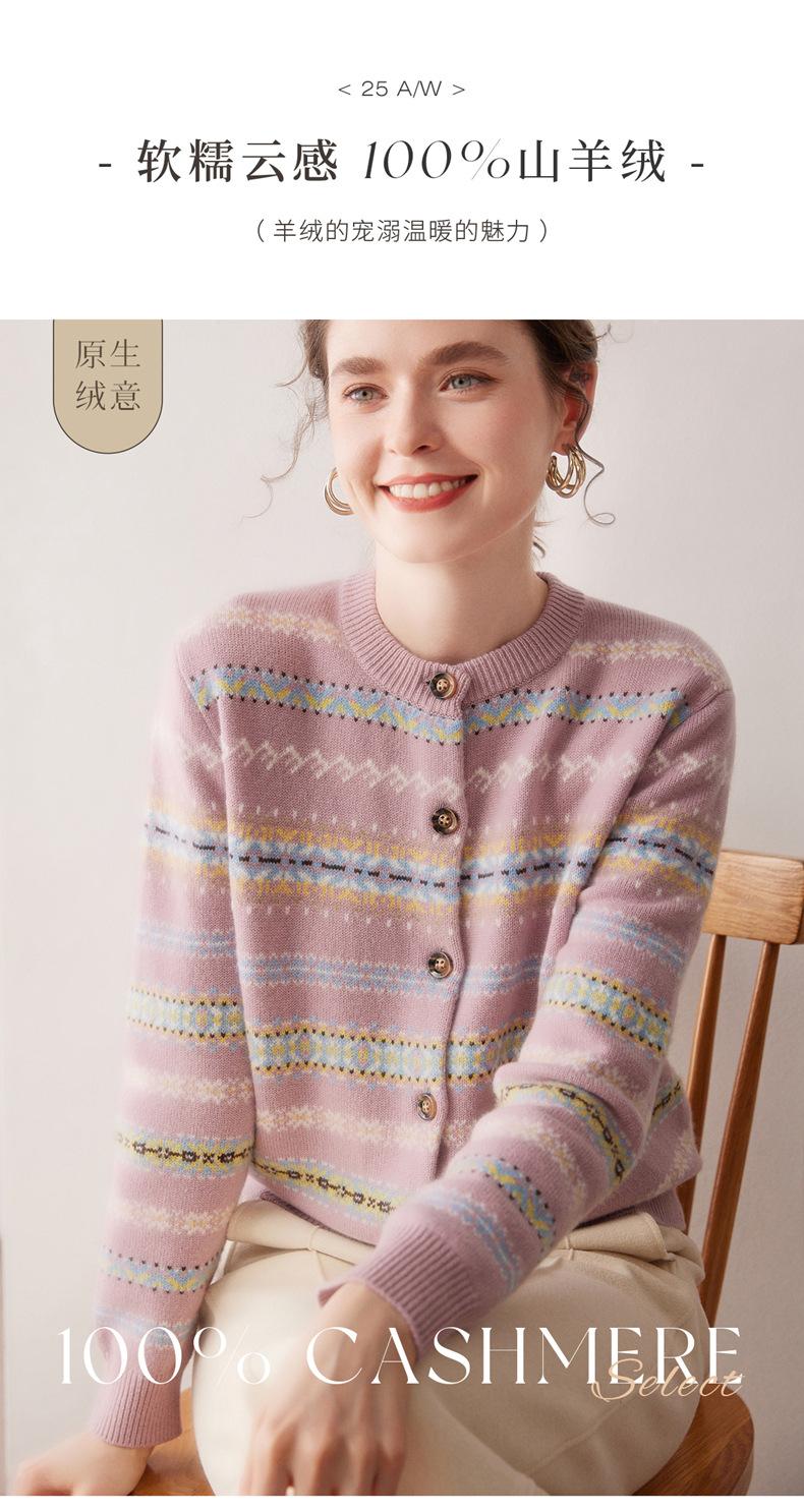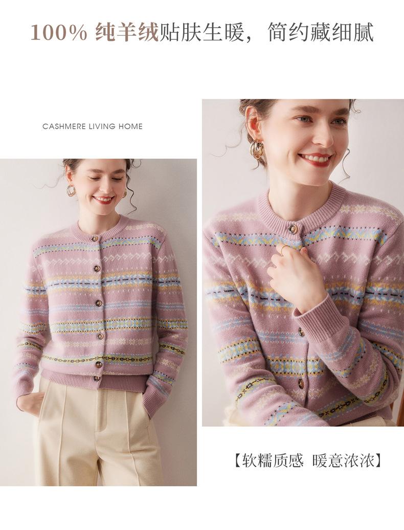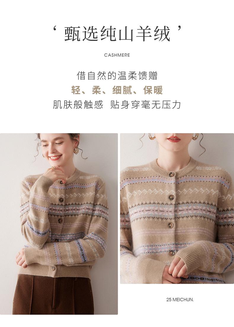 Cárdigan de Cachemira para Mujer 100% Cachemira Pura Otoño Invierno Nueva Moda Cuello Redondo Versátil Jacquard Cálido Suéter Tejido Abrigo