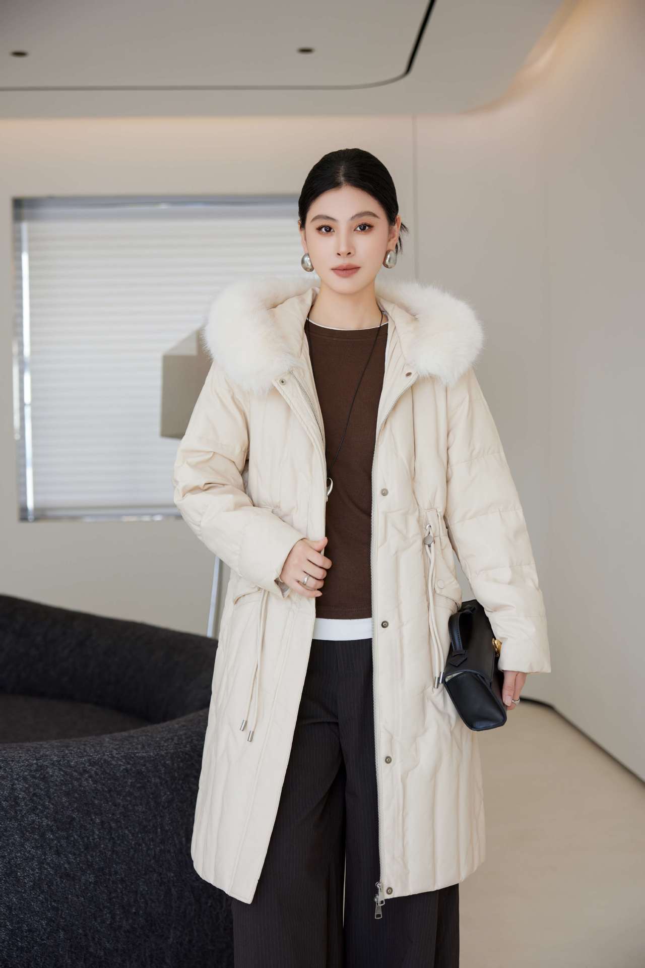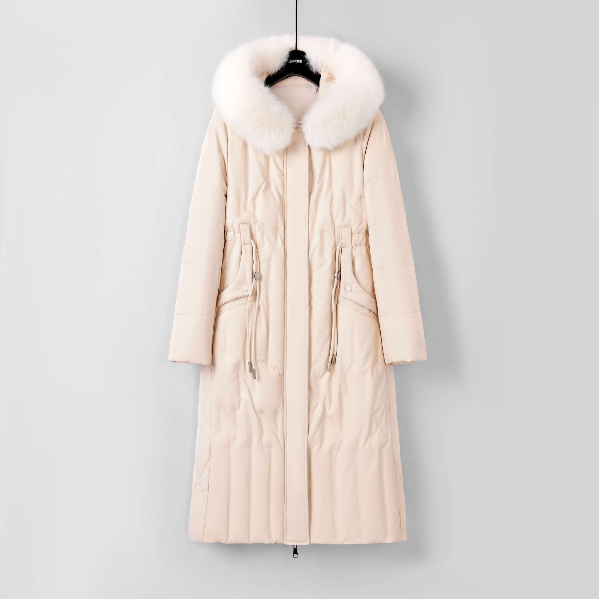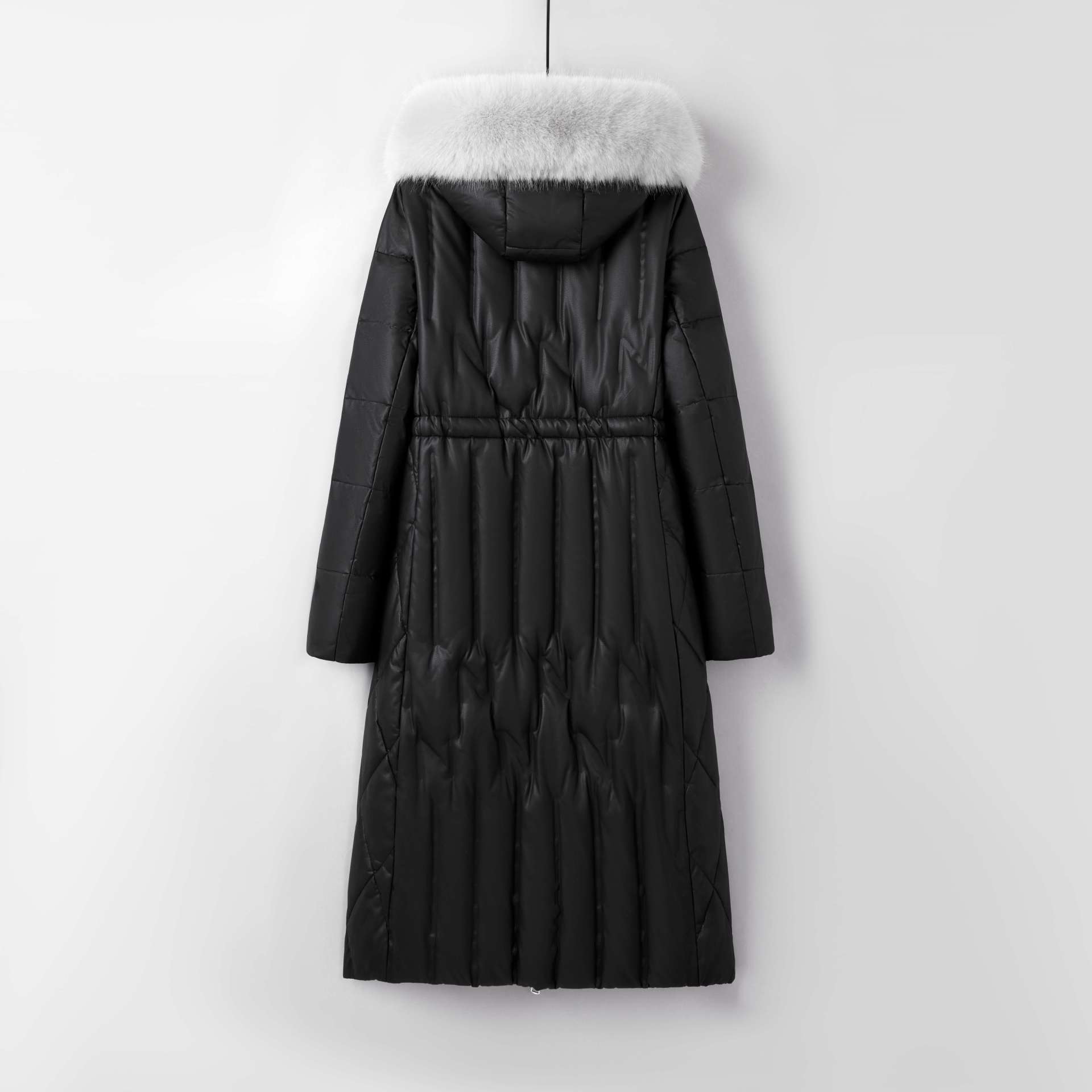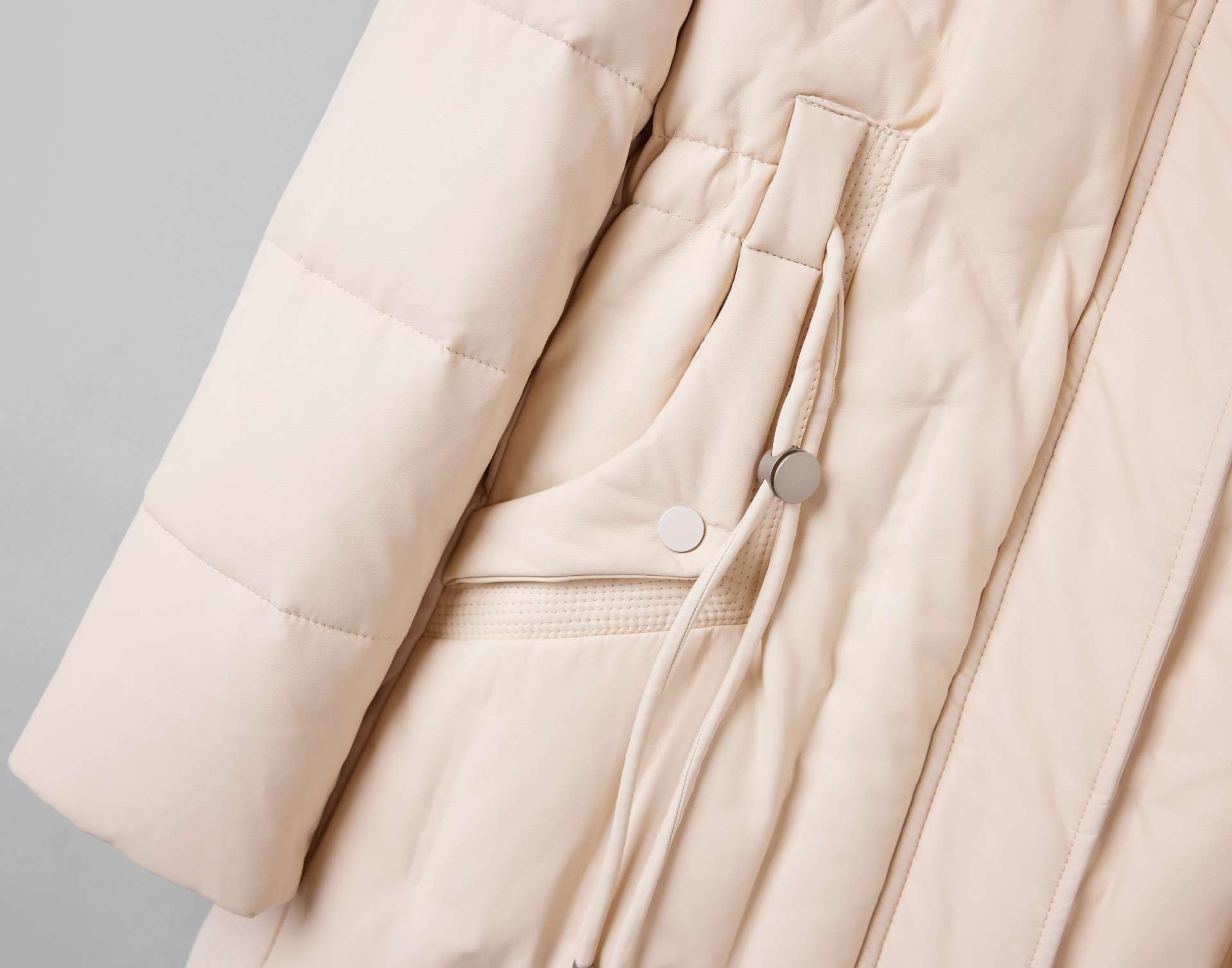 Nueva Chaqueta de Plumas Cálida para Invierno para Mujer Chaqueta de Cuero Abrigo de Largo Medio con Forro Polar Personalizado Abrigo con Capucha y Cuello de Piel Gabardina