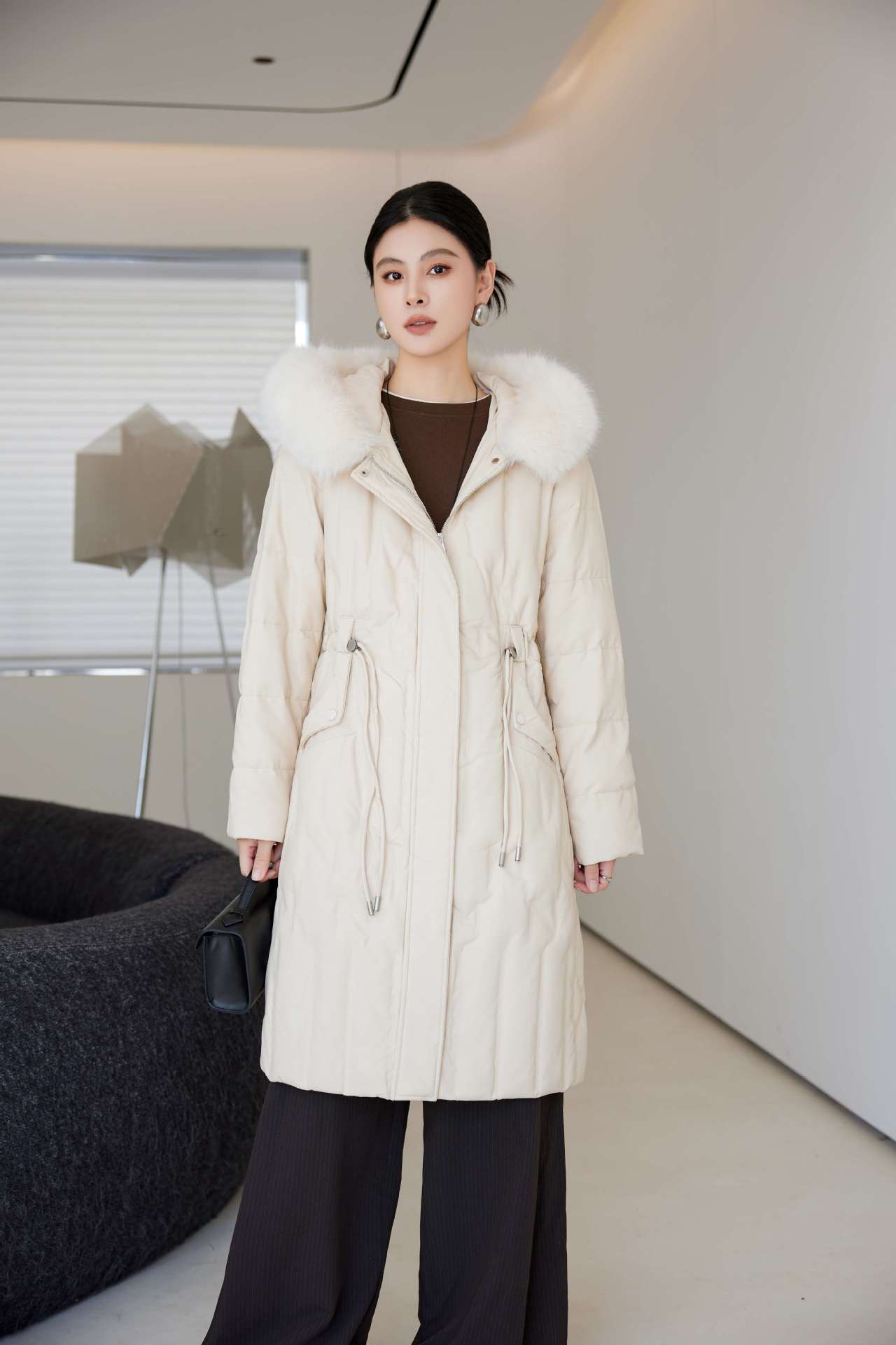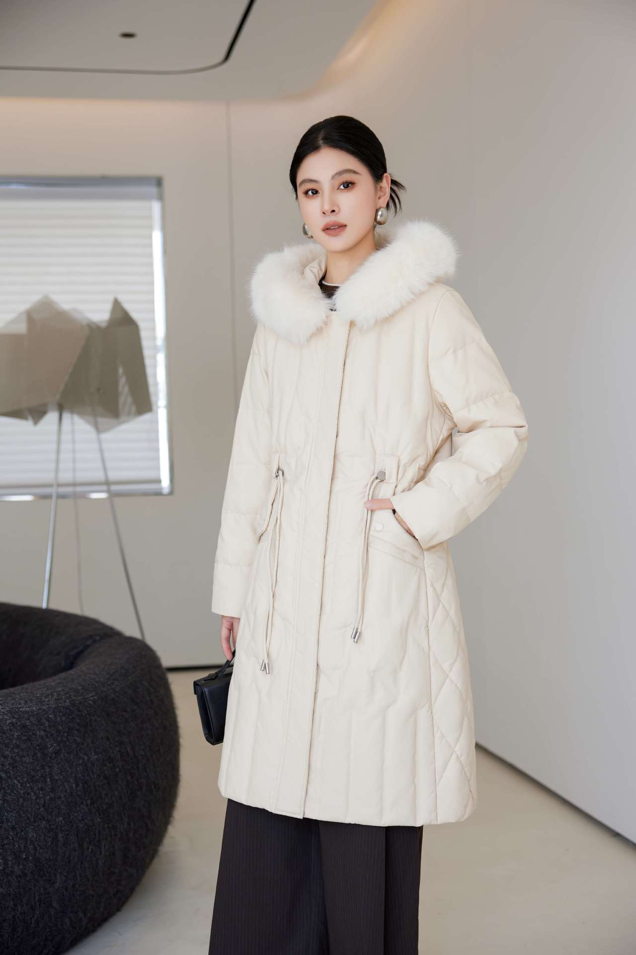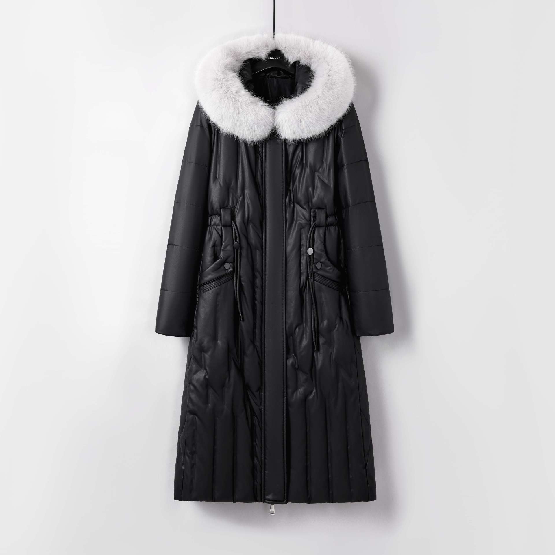 Nueva Chaqueta de Plumas Cálida para Invierno para Mujer Chaqueta de Cuero Abrigo de Largo Medio con Forro Polar Personalizado Abrigo con Capucha y Cuello de Piel Gabardina