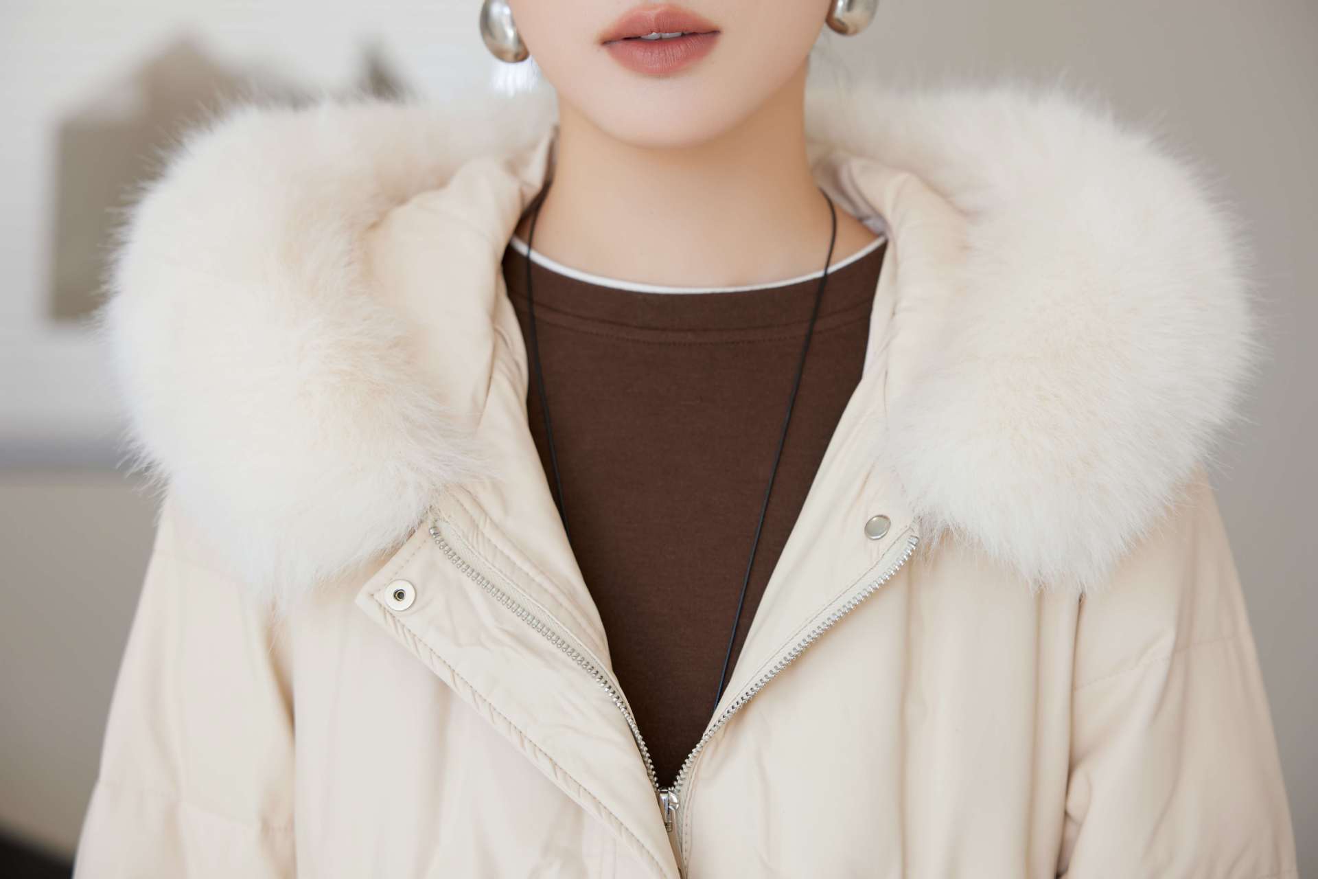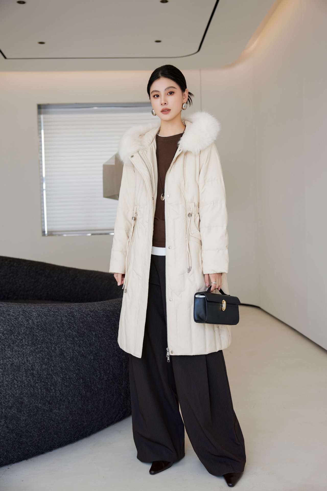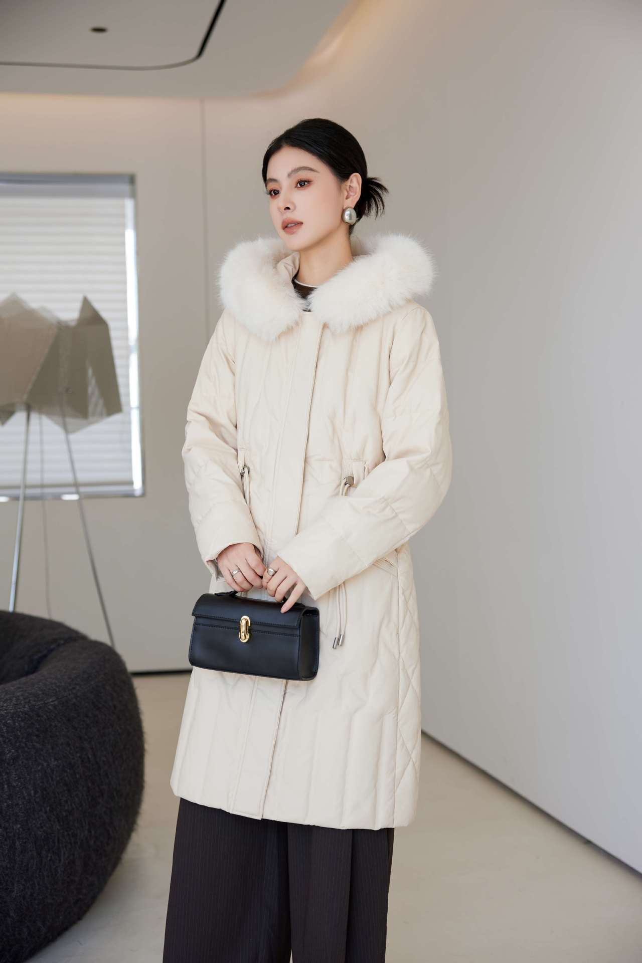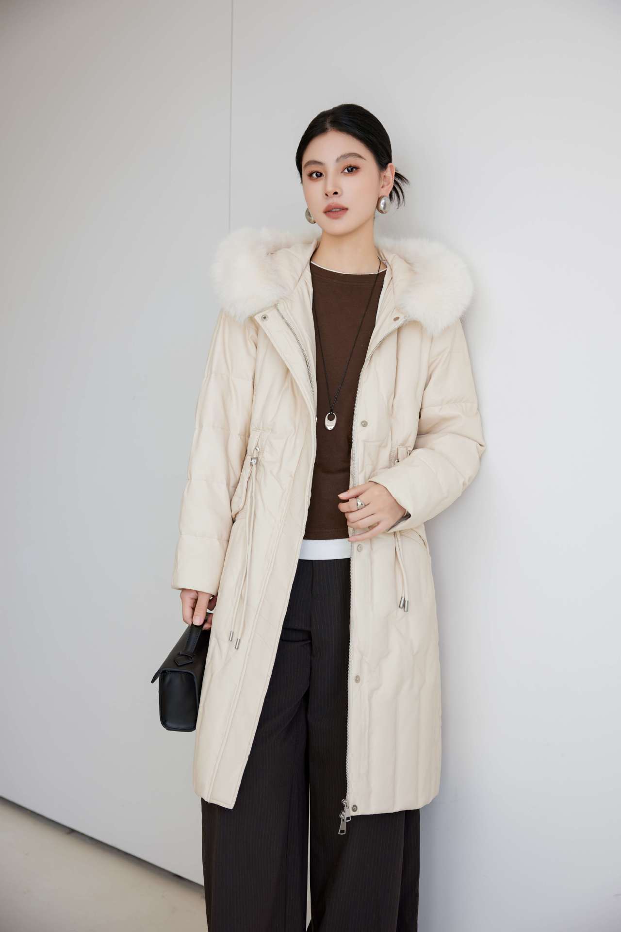 Nueva Chaqueta de Plumas Cálida para Invierno para Mujer Chaqueta de Cuero Abrigo de Largo Medio con Forro Polar Personalizado Abrigo con Capucha y Cuello de Piel Gabardina