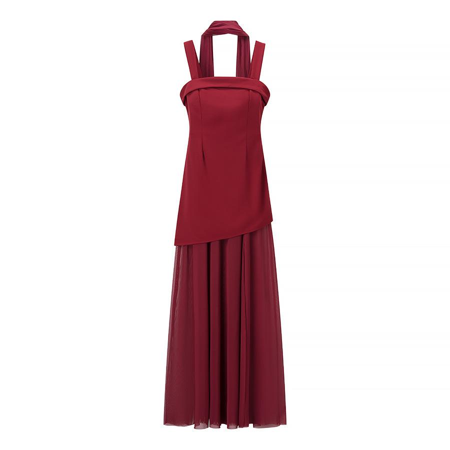 Z Estilo Europeo y Americano Transfronterizo 2025 Nueva Moda Temperamento Ropa de Mujer al por Mayor Sexy Sin Espalda Sin Mangas Abertura Alta Vestido Largo