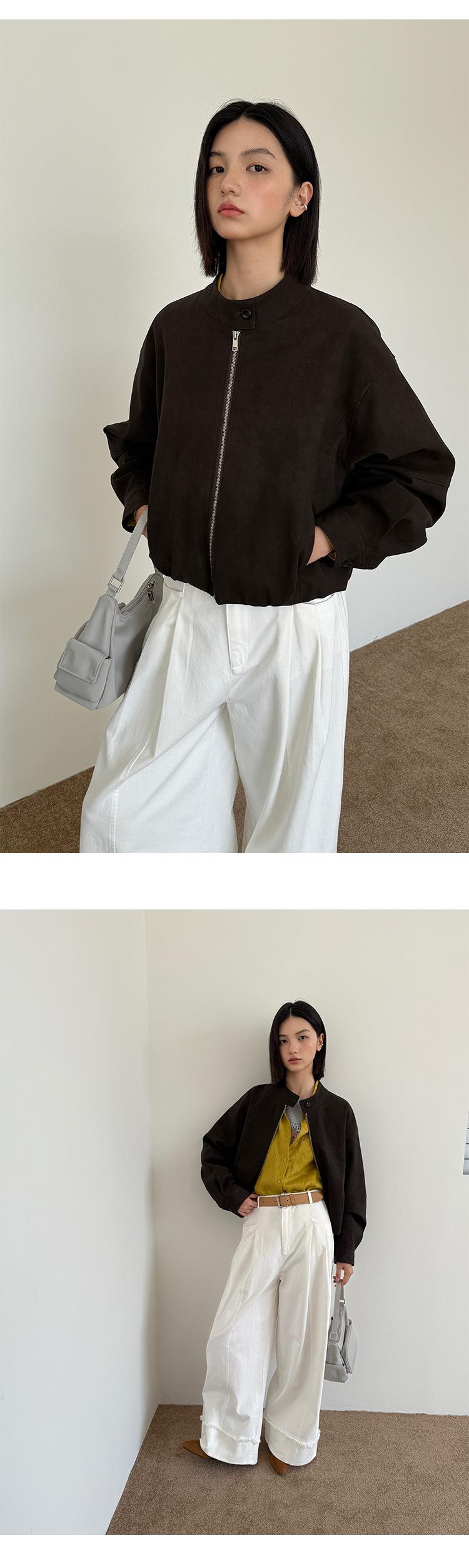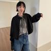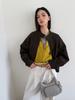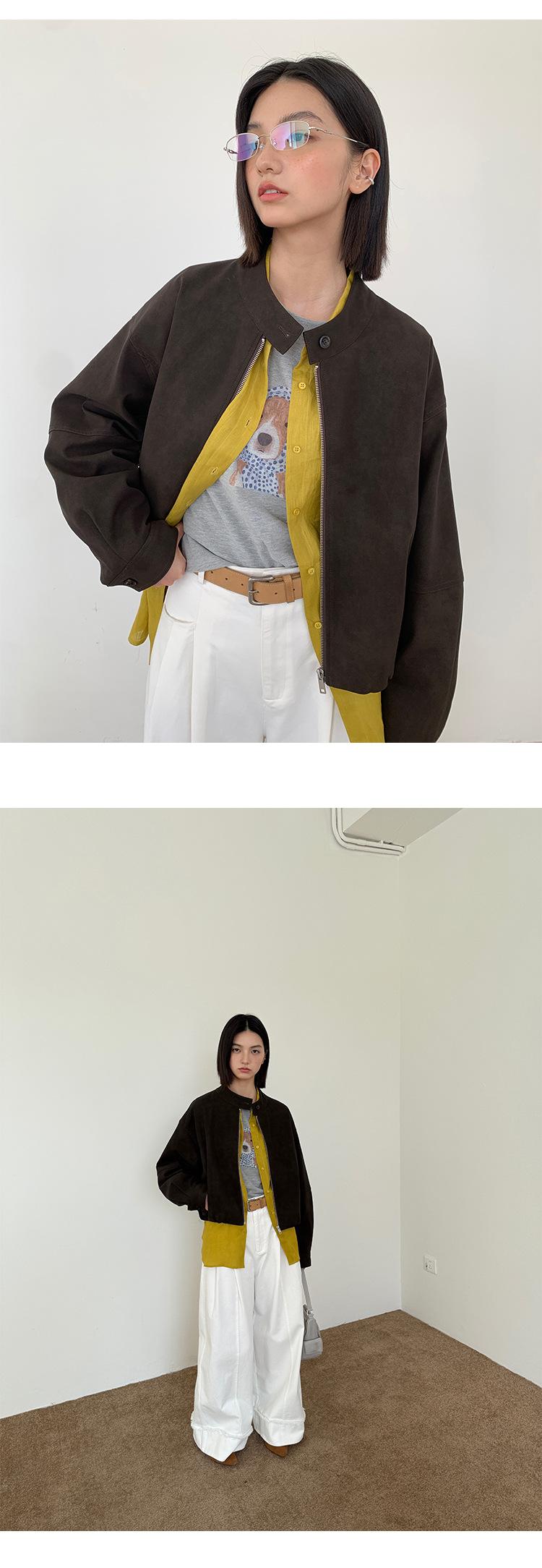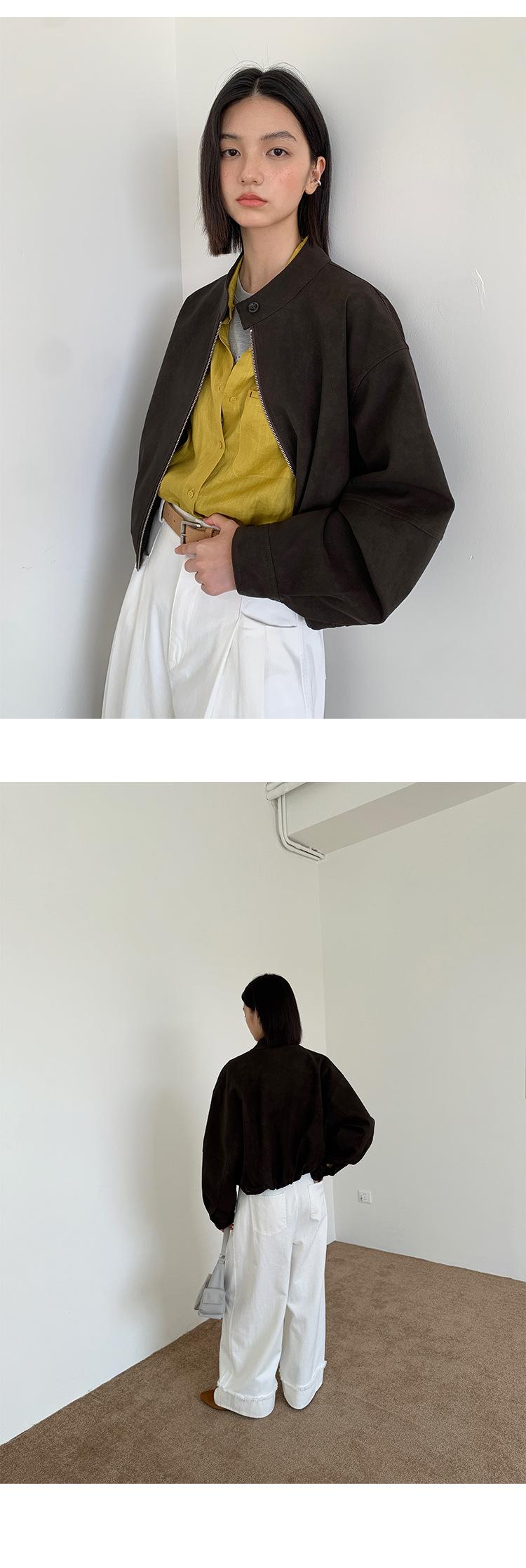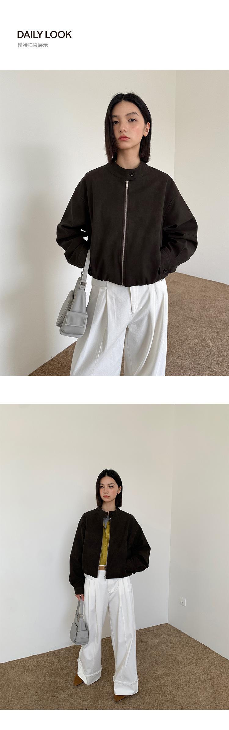 Yifu Chivalry~Chaqueta de Cuero Biker de Cuello Mao Corta Suave Abrigo Chaqueta Sencilla y Pulcra Top 23689