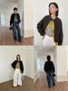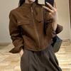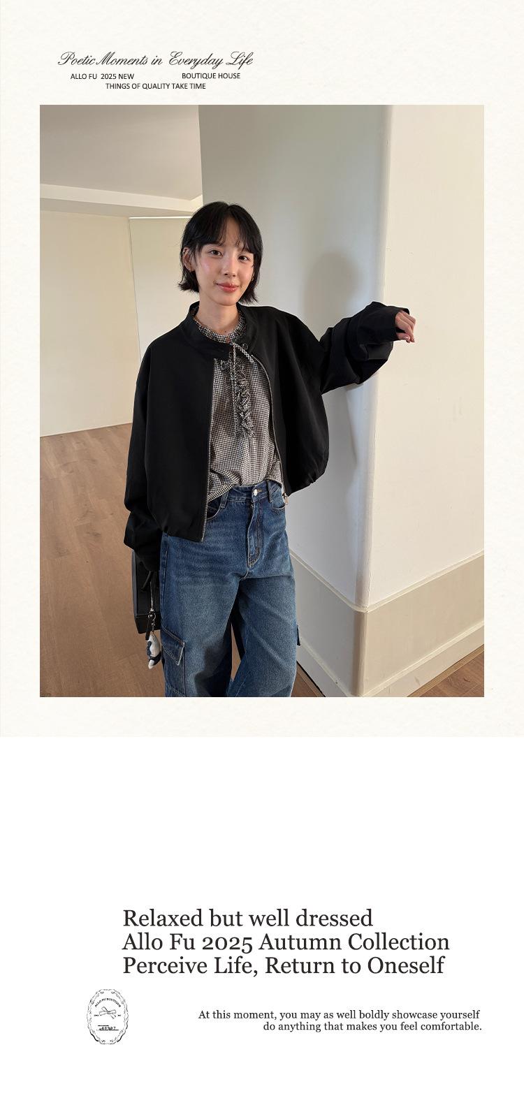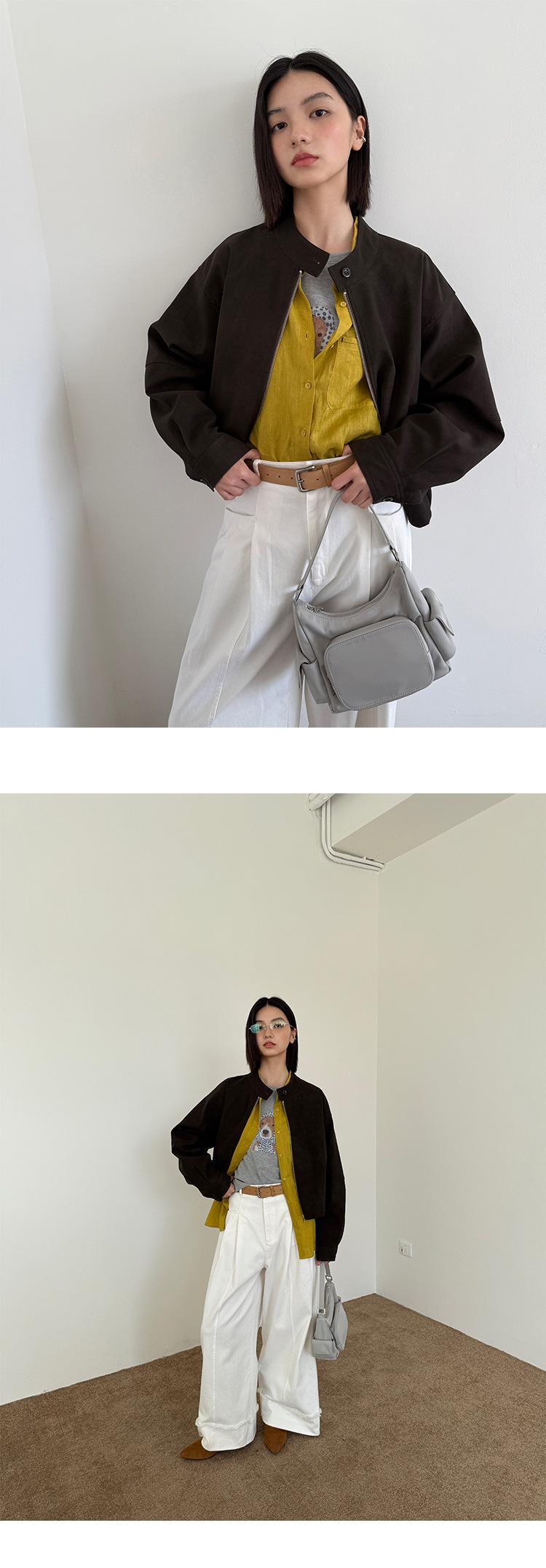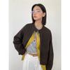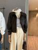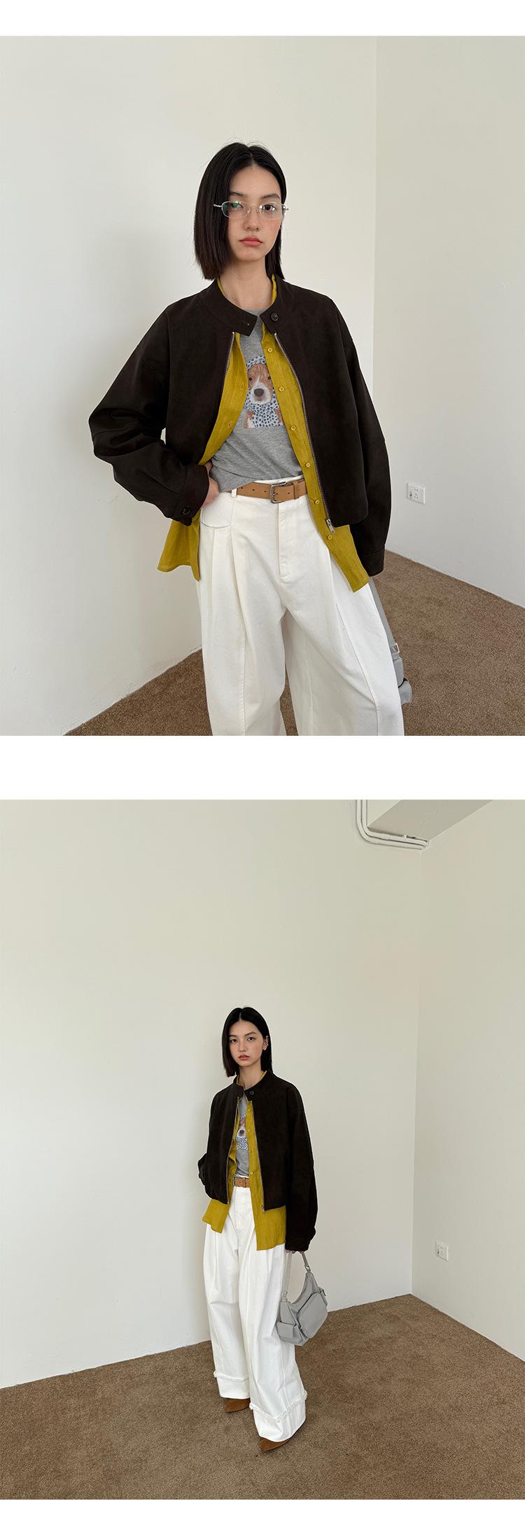 Yifu Chivalry~Chaqueta de Cuero Biker de Cuello Mao Corta Suave Abrigo Chaqueta Sencilla y Pulcra Top 23689