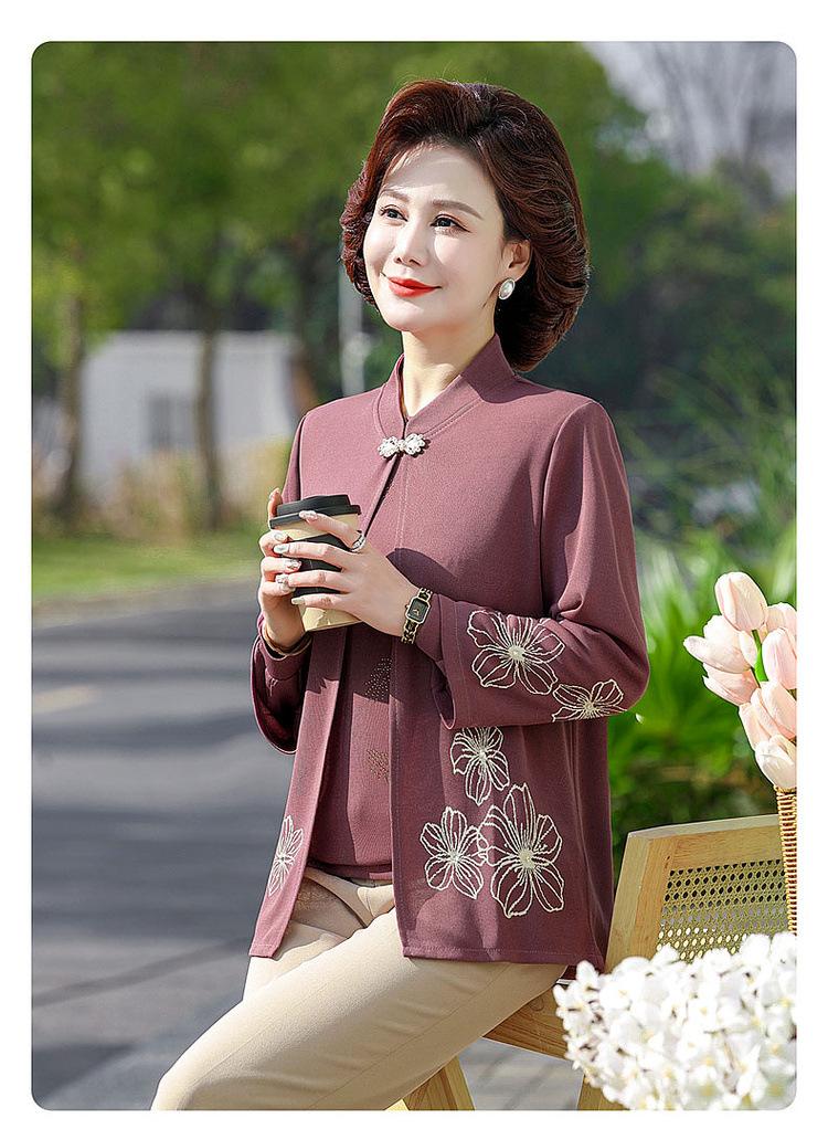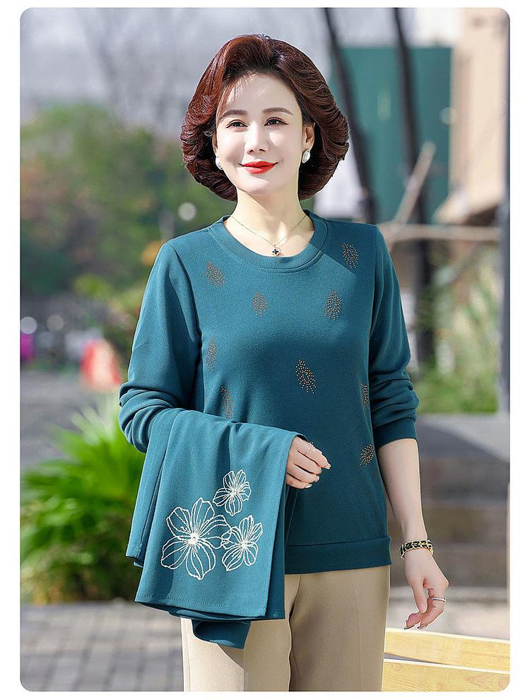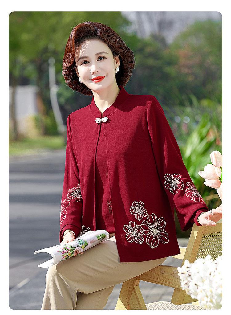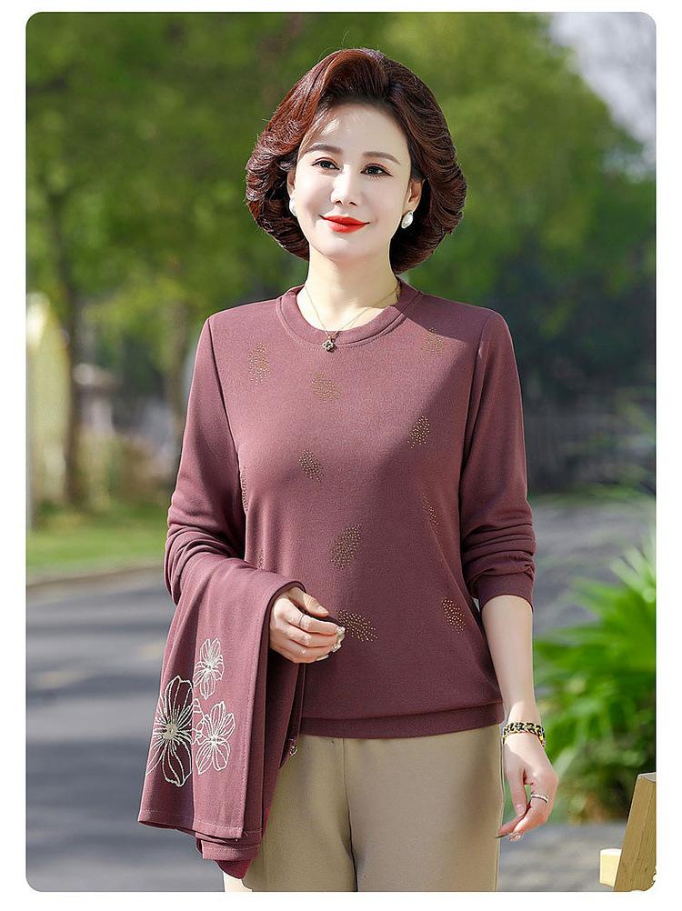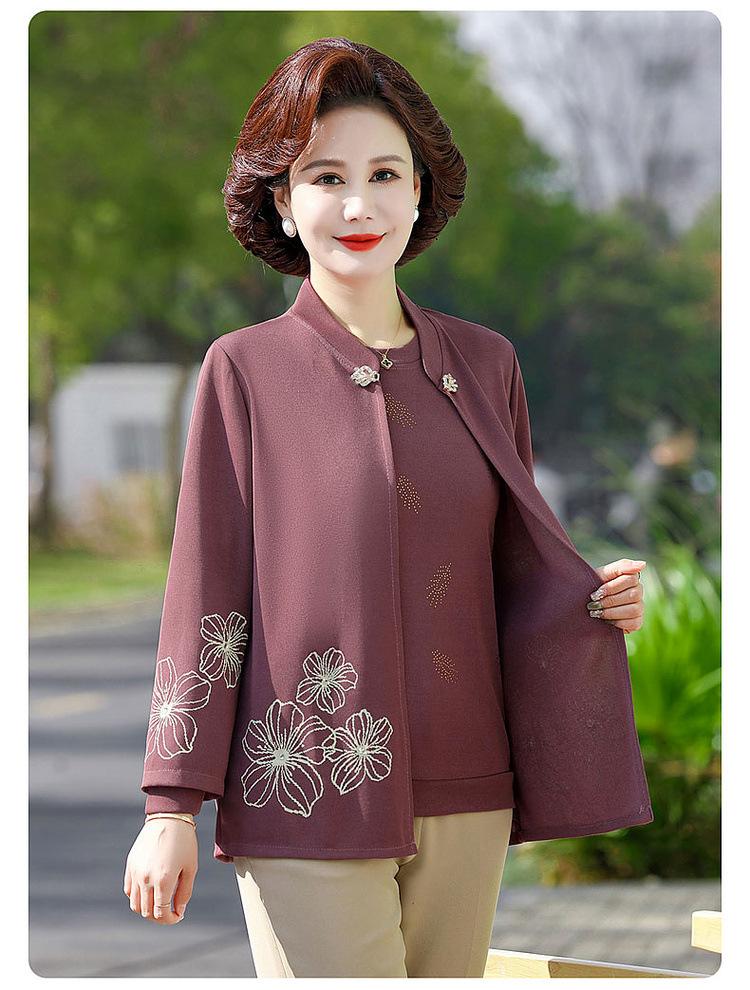 Ropa de otoño para mujeres de mediana edad y ancianas, suéter de punto moderno 2025, nuevo estilo para mujer, top de manga larga para mamá, temperamento de moda, conjunto de dos piezas