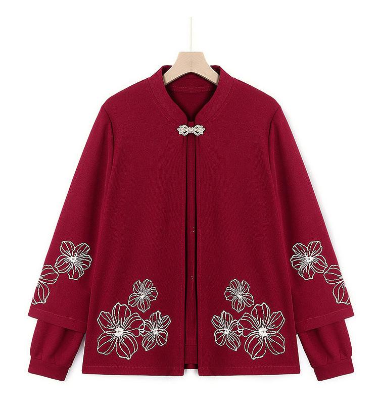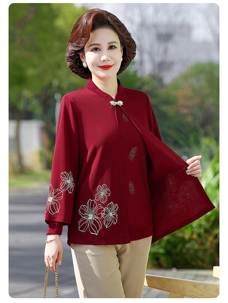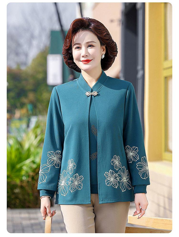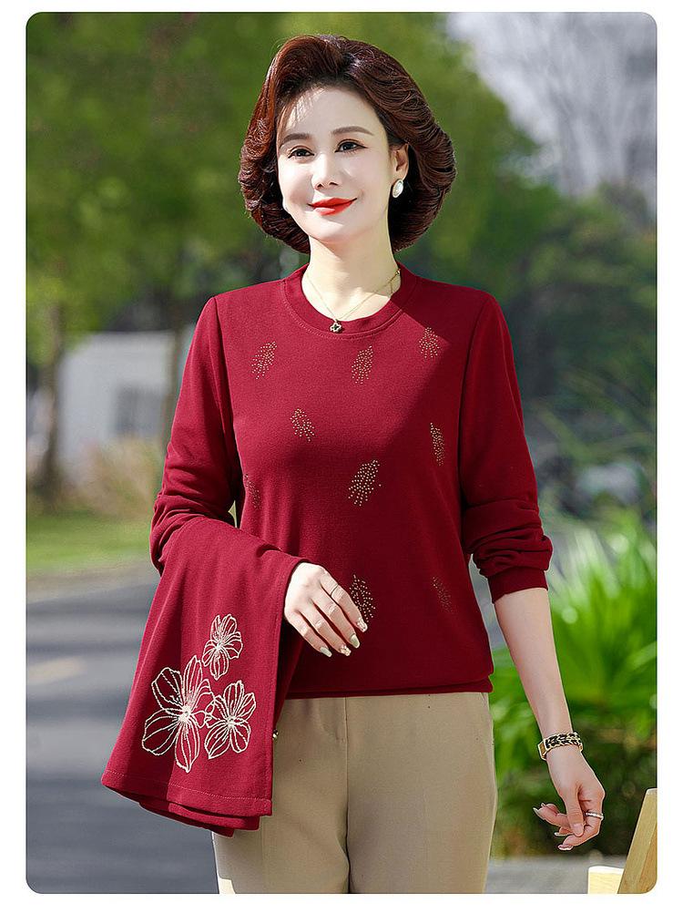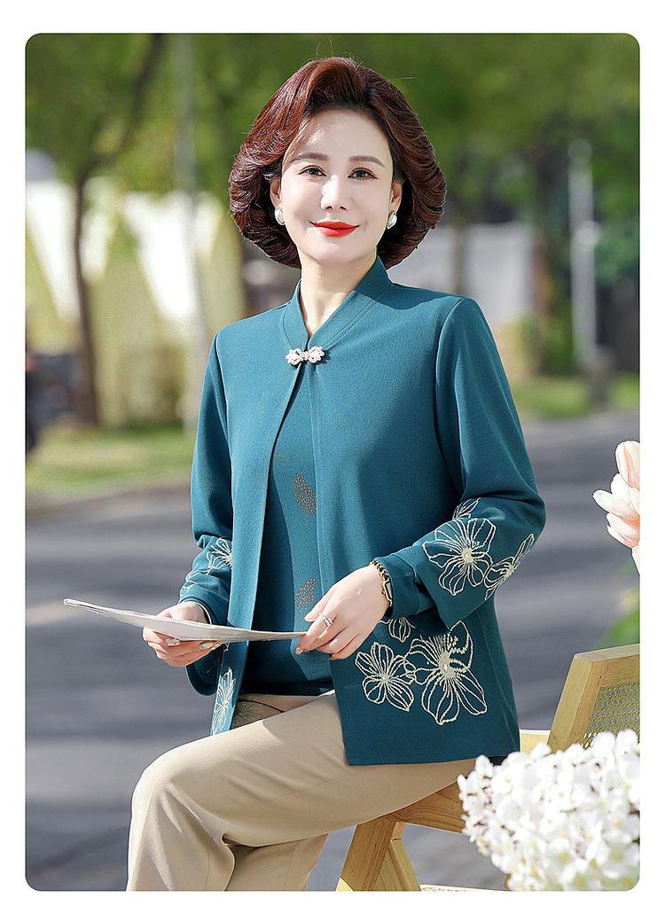 Ropa de otoño para mujeres de mediana edad y ancianas, suéter de punto moderno 2025, nuevo estilo para mujer, top de manga larga para mamá, temperamento de moda, conjunto de dos piezas