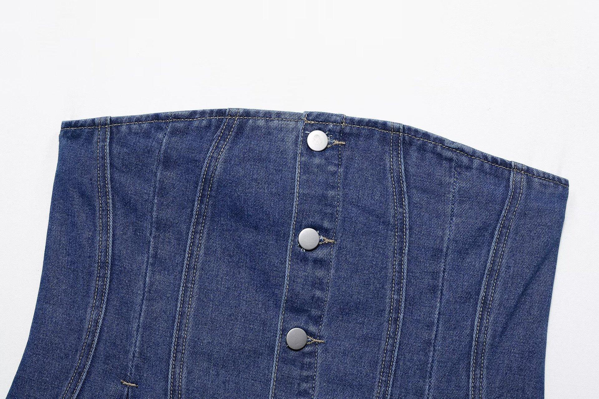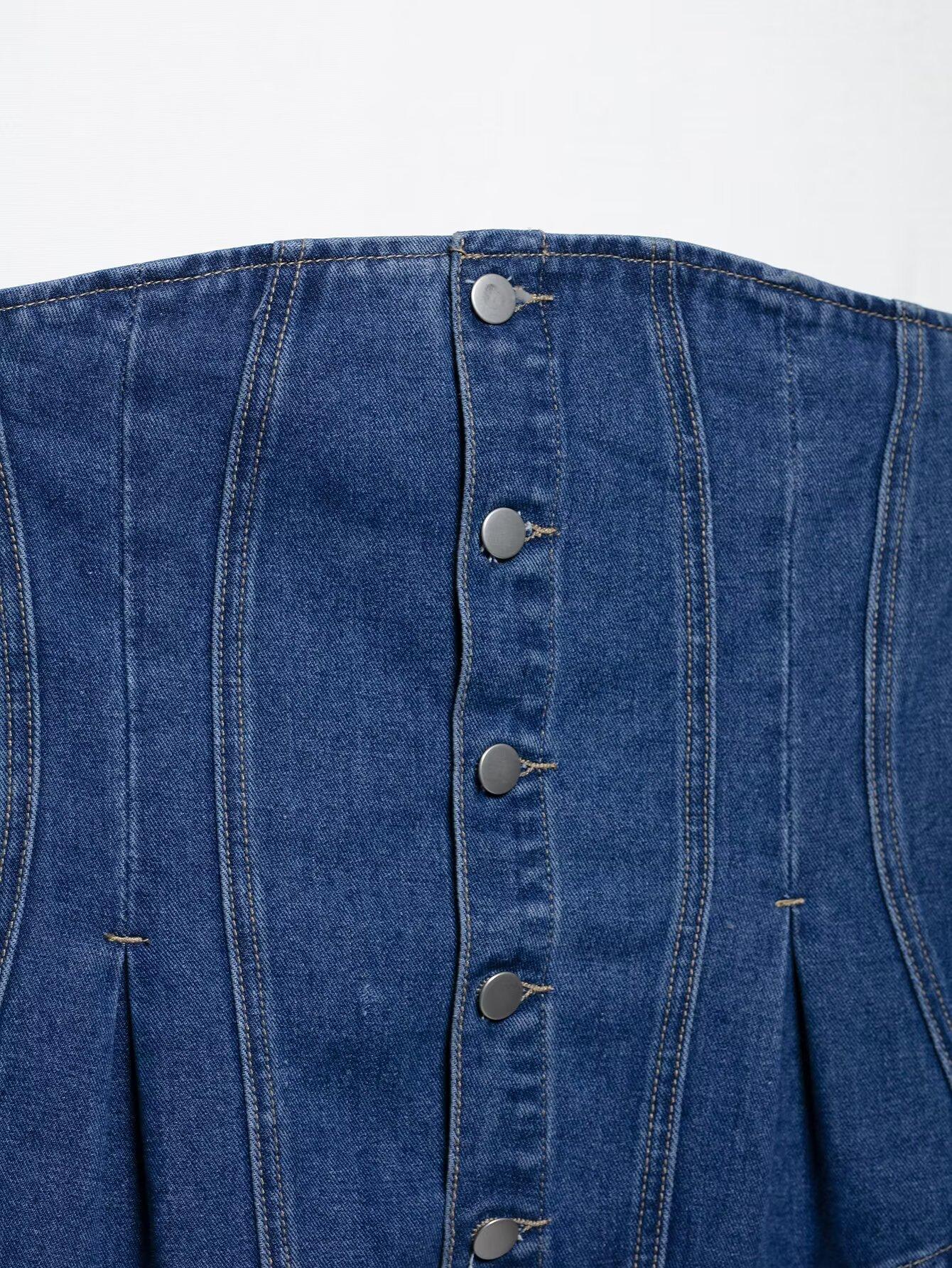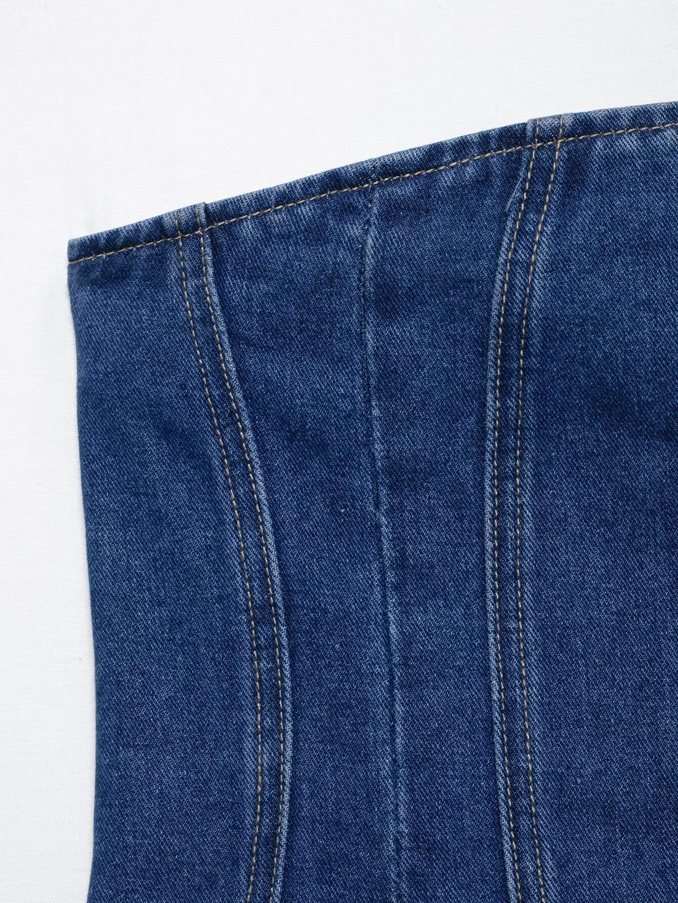 2025 Primavera/Verano Nuevo Estilo Europeo y Americano Moda Femenina Sexy Top Corsé de Mezclilla para Chica Caliente