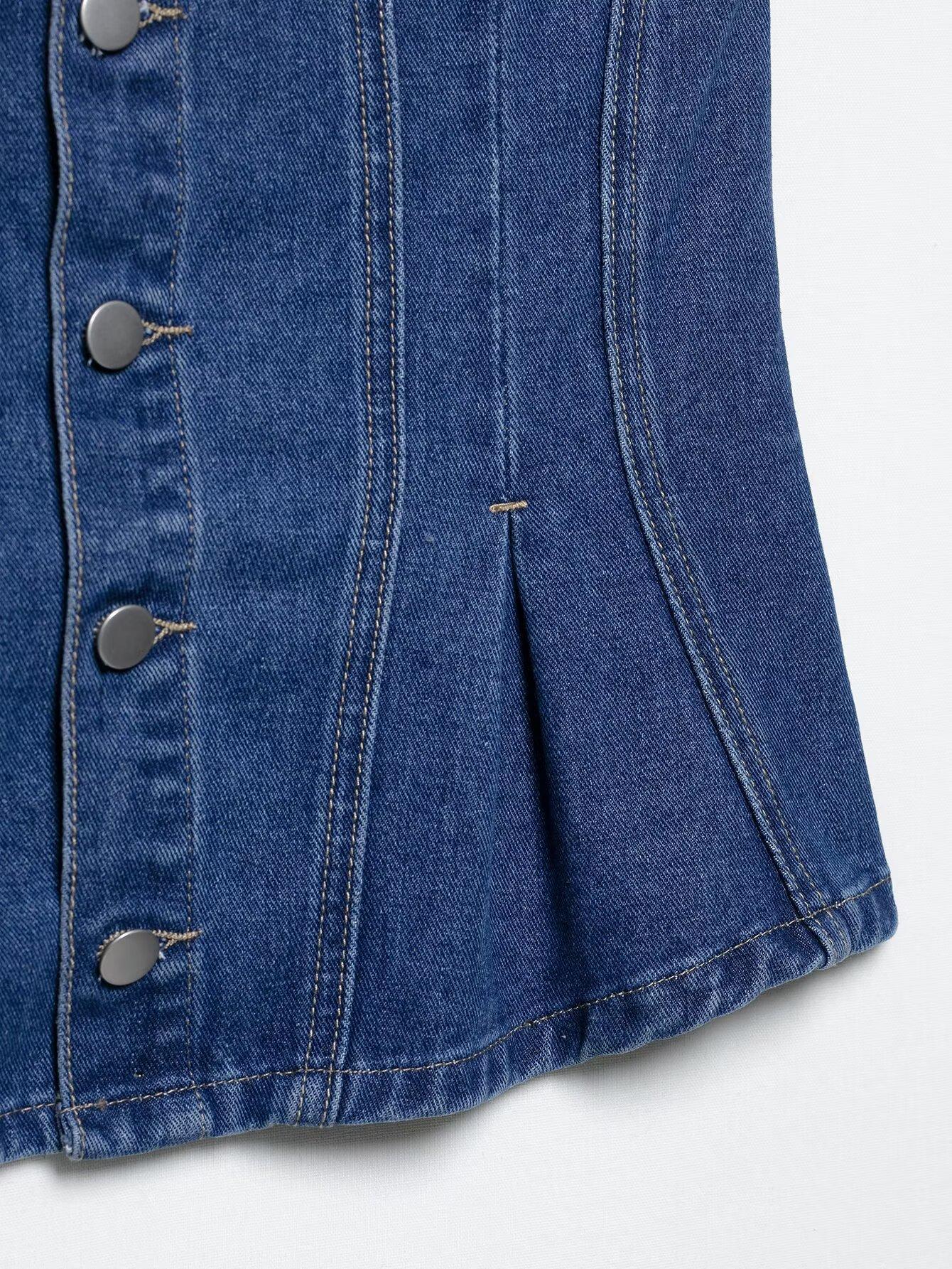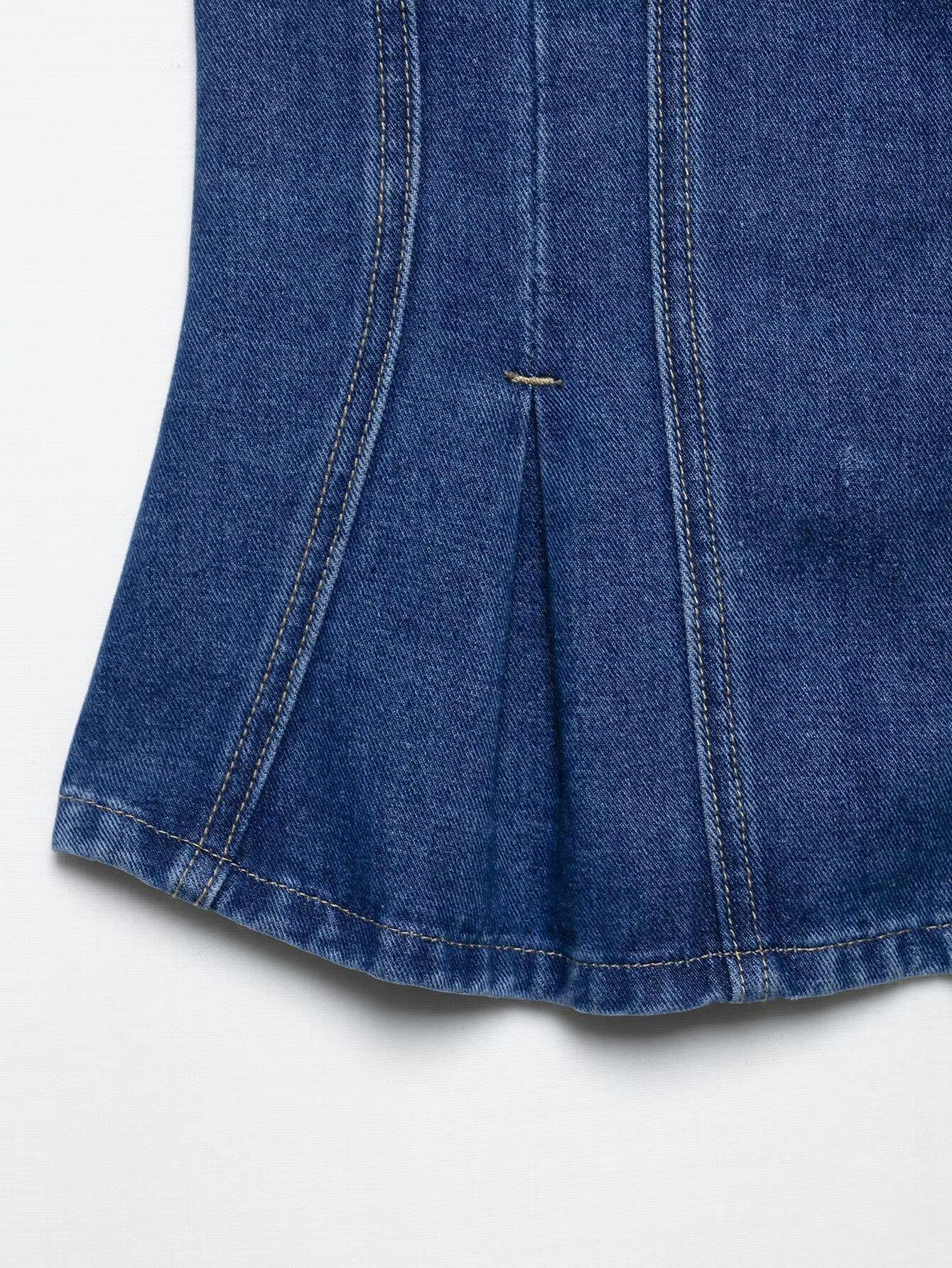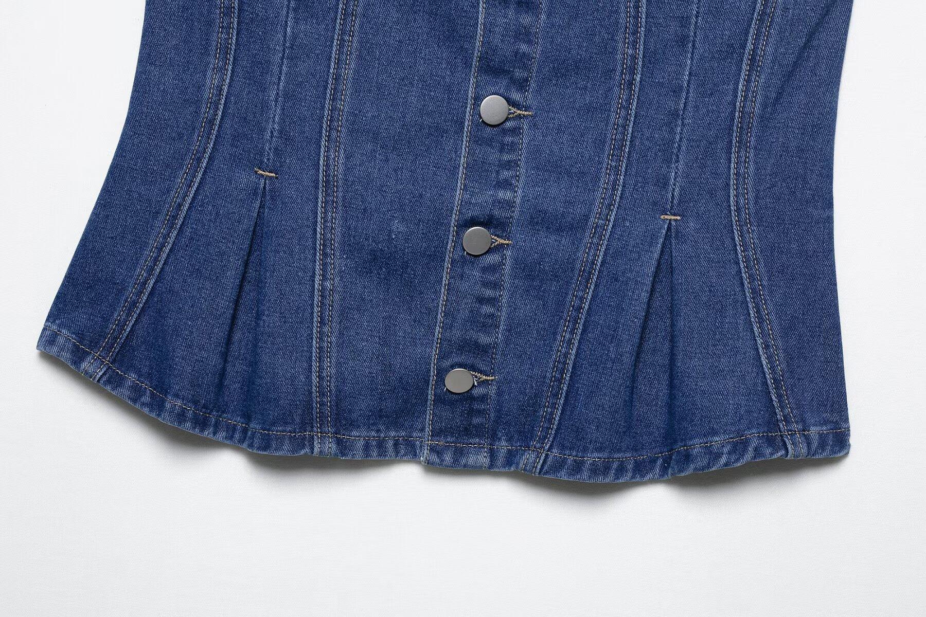 2025 Primavera/Verano Nuevo Estilo Europeo y Americano Moda Femenina Sexy Top Corsé de Mezclilla para Chica Caliente