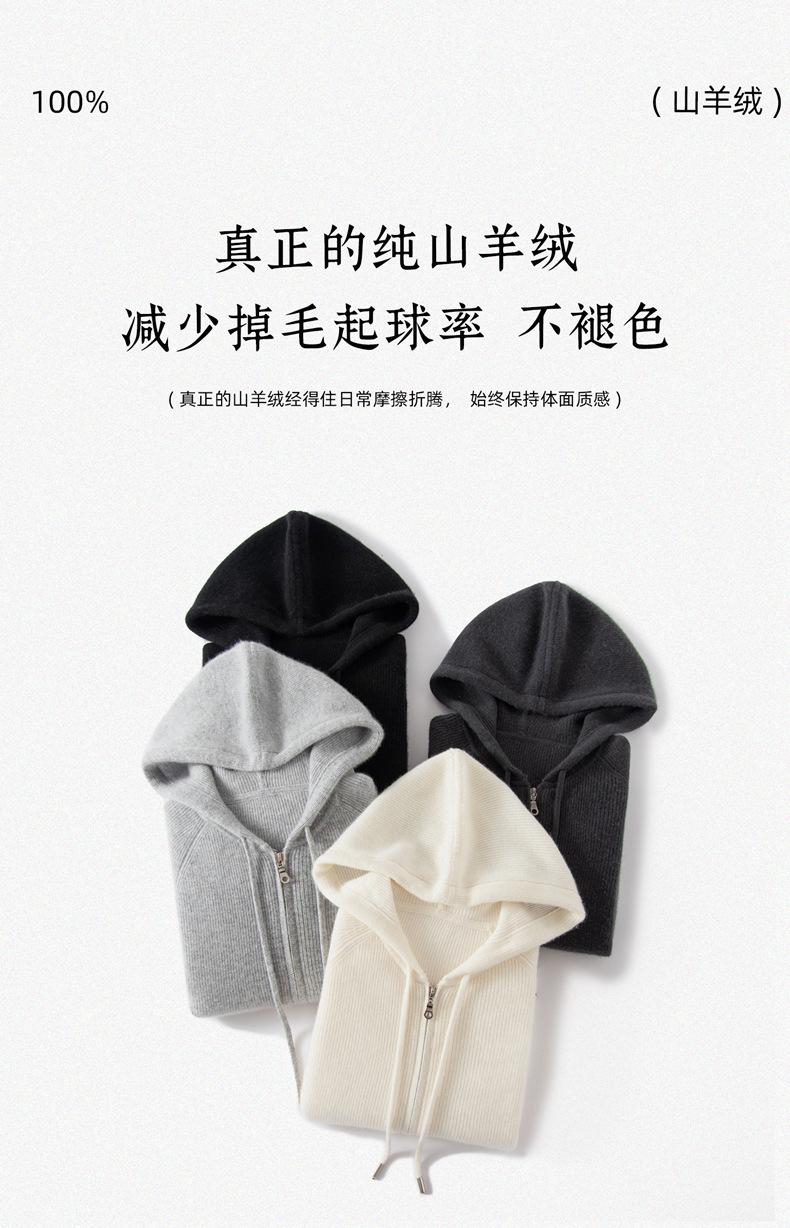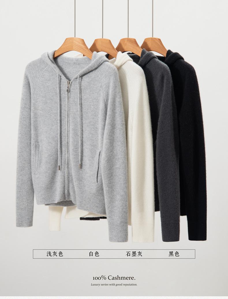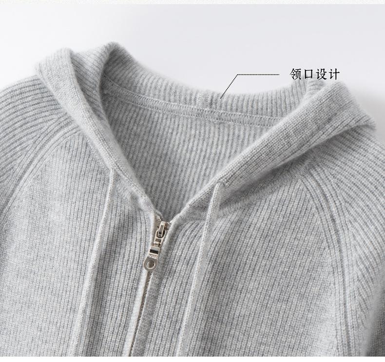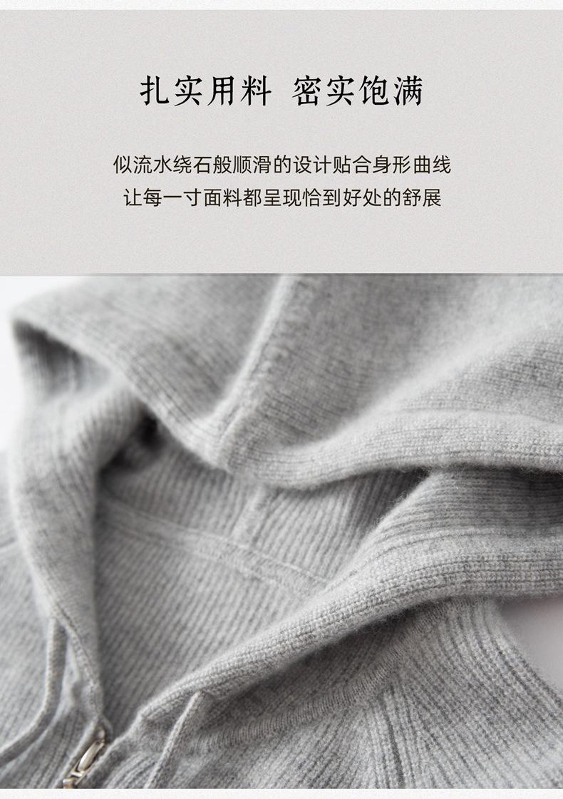 Cárdigan de Cachemira para Mujer 100% Cachemira Pura con Capucha Holgado Adelgazante Base Tejido Casual Suéter Cálido Abrigo