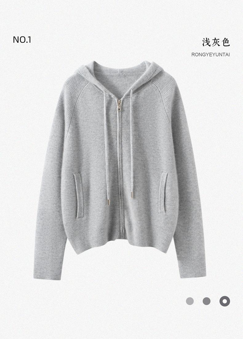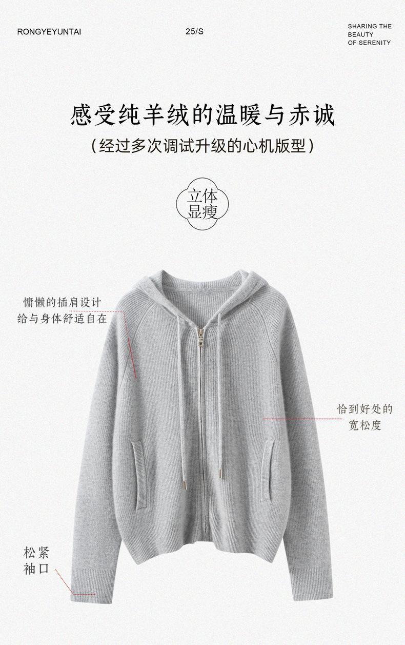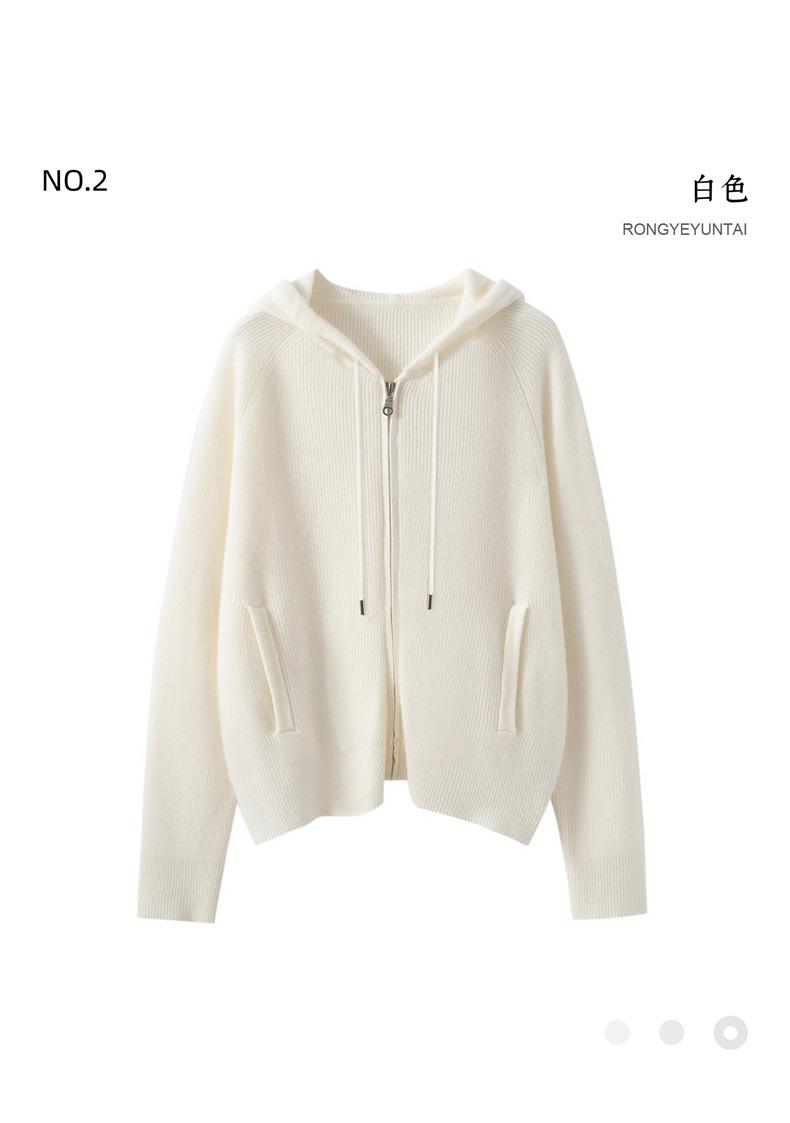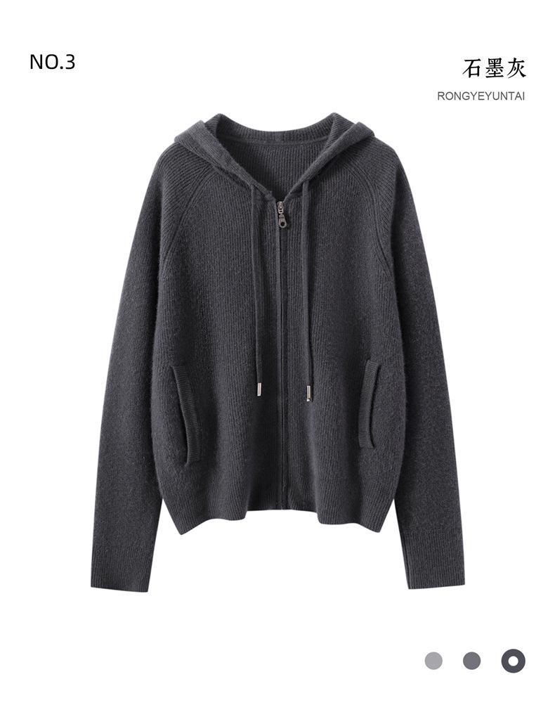Cárdigan de Cachemira para Mujer 100% Cachemira Pura con Capucha Holgado Adelgazante Base Tejido Casual Suéter Cálido Abrigo