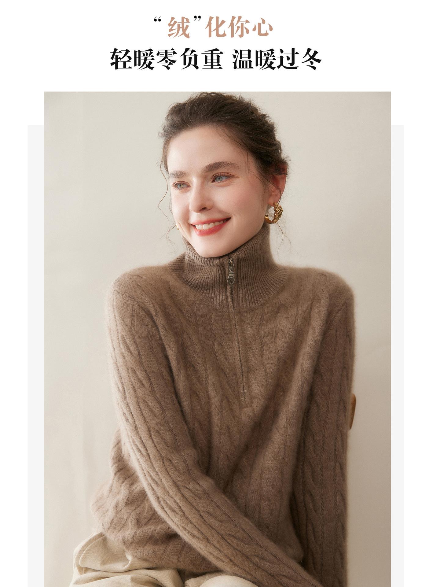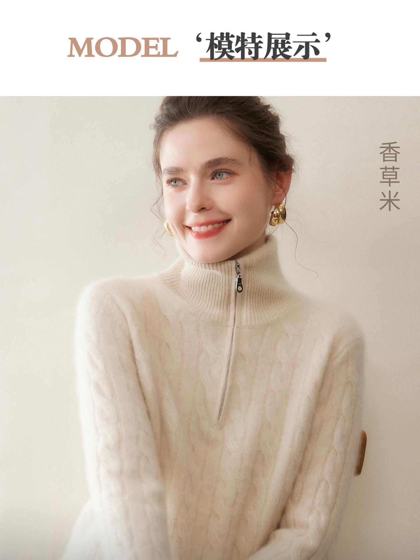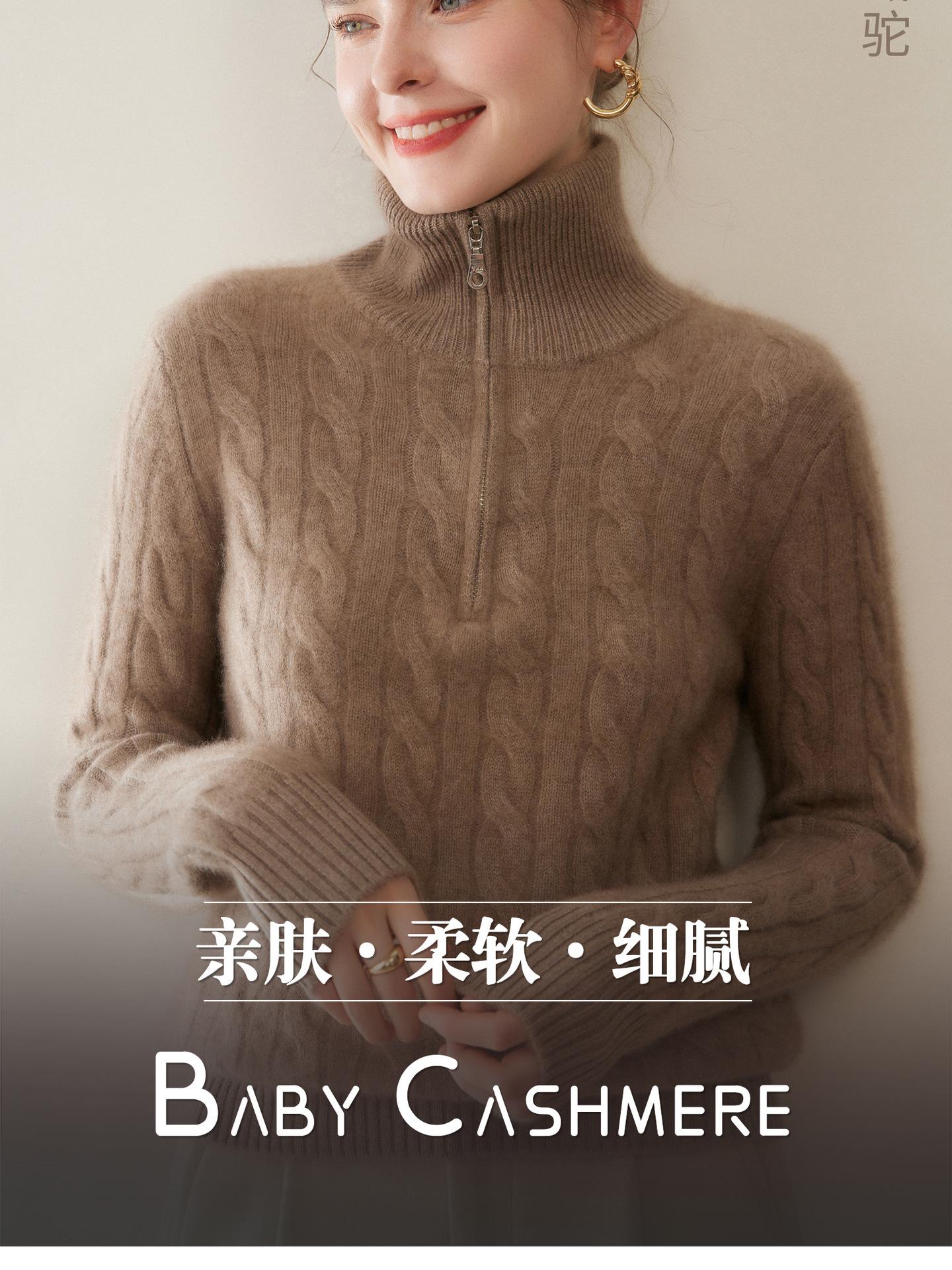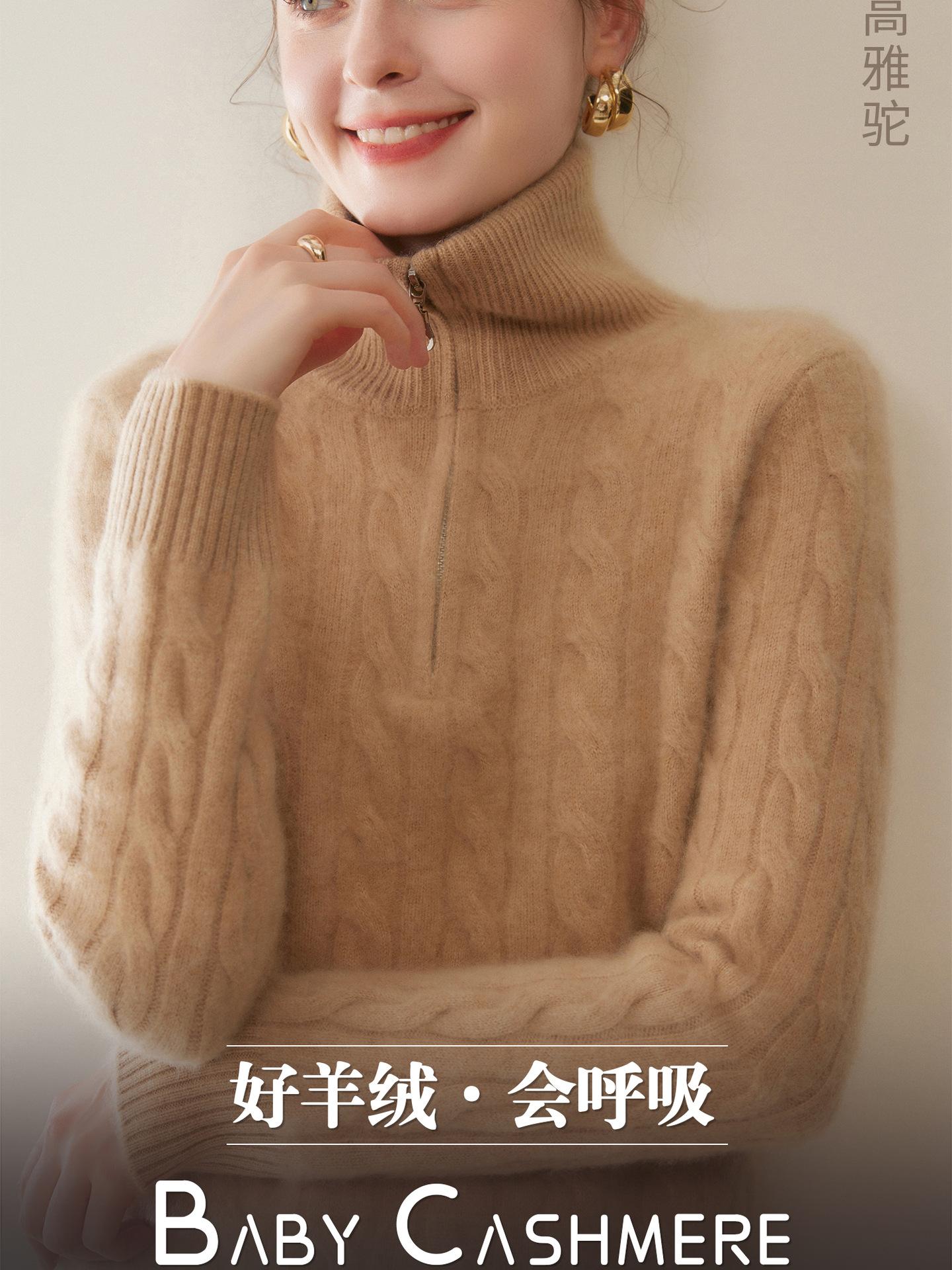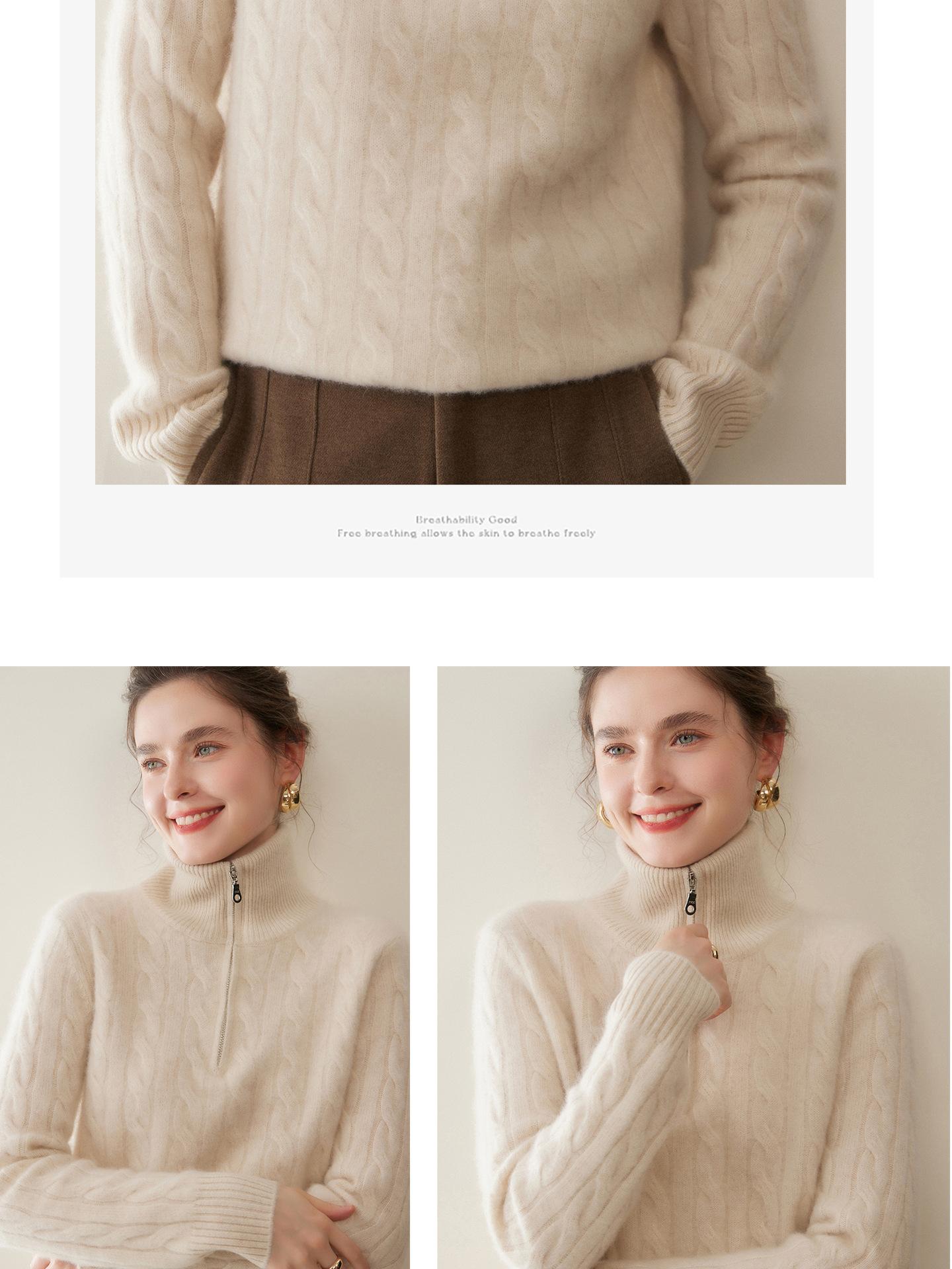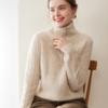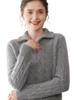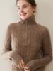 Suéter de cuello alto con media cremallera para mujer, nuevo de otoño e invierno, tejido de cable integral, color sólido, punto de cachemira, camiseta base de punto, manga larga