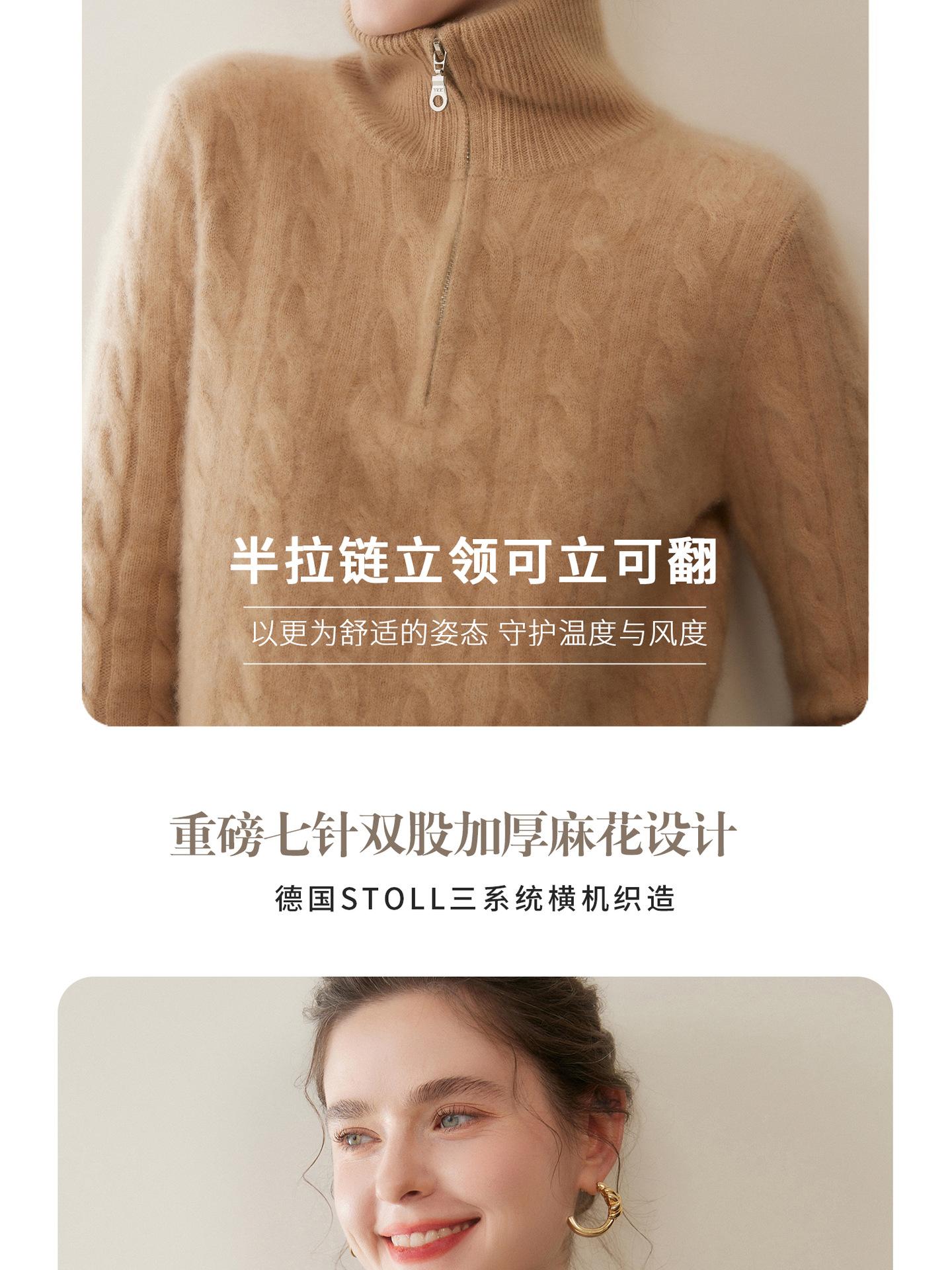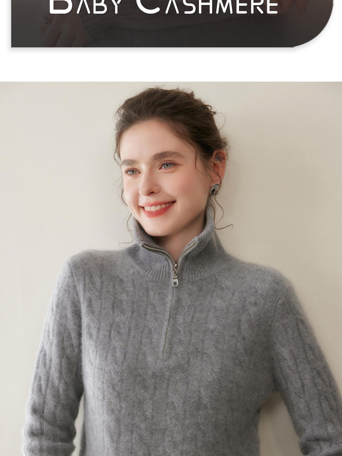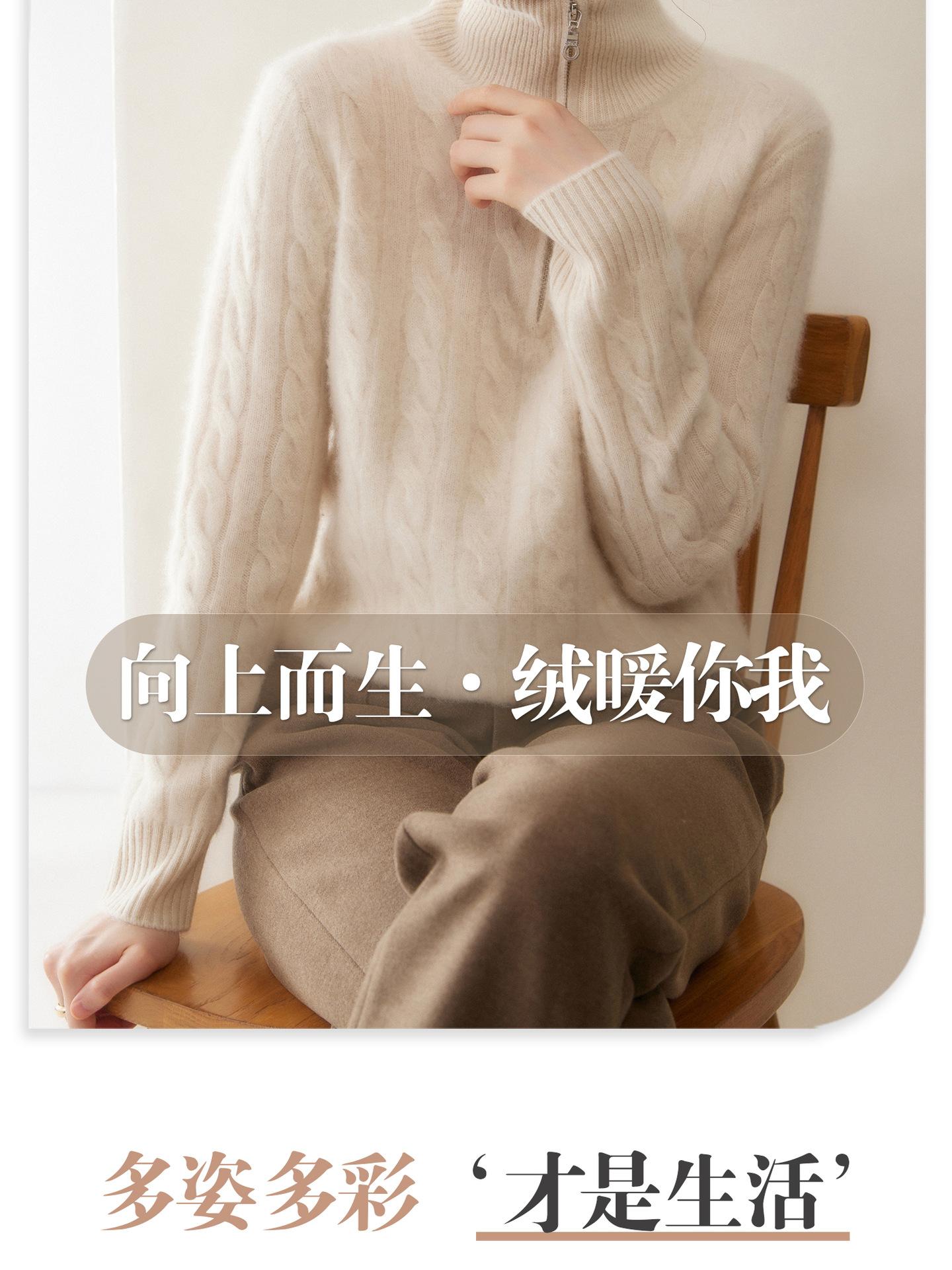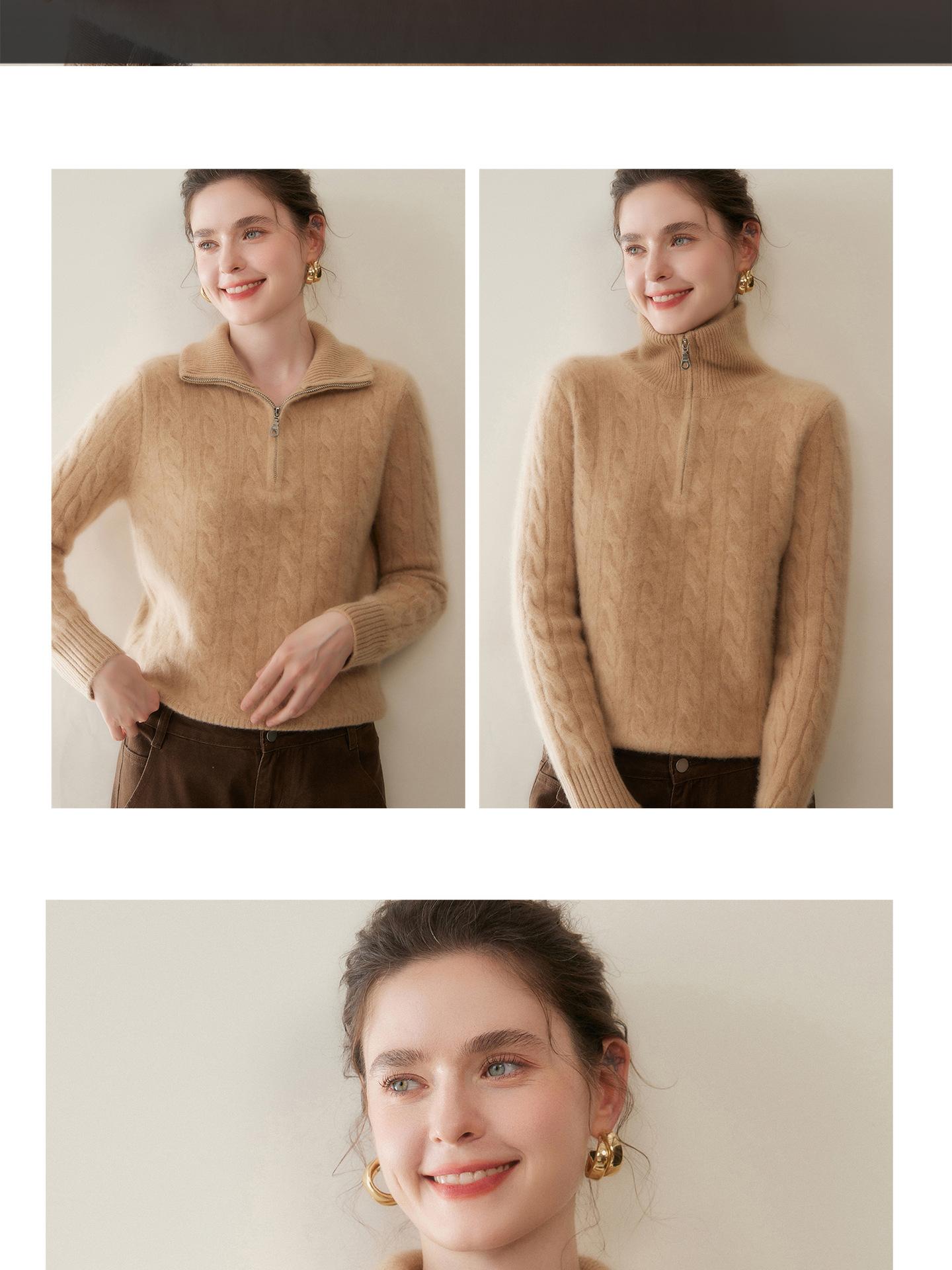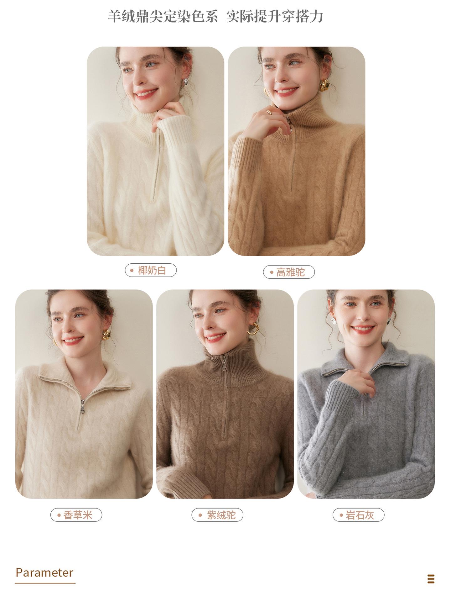 Suéter de cuello alto con media cremallera para mujer, nuevo de otoño e invierno, tejido de cable integral, color sólido, punto de cachemira, camiseta base de punto, manga larga
