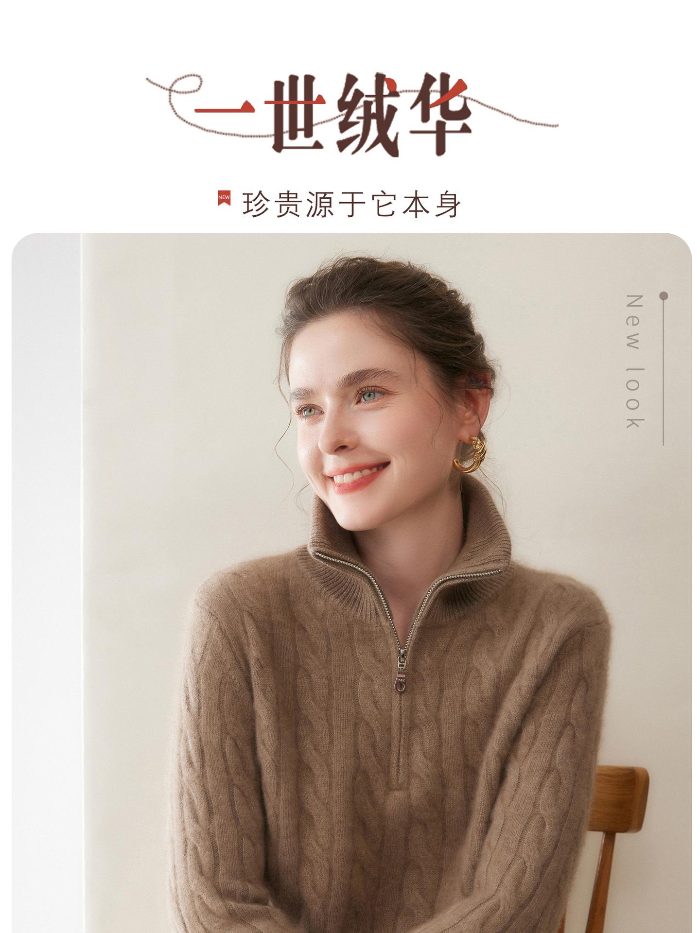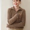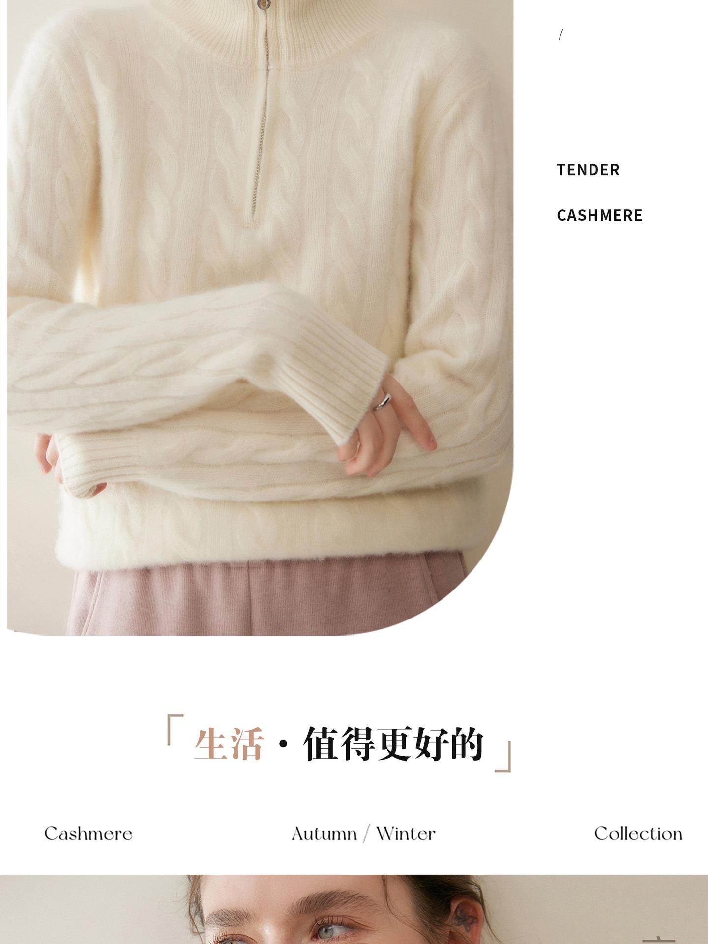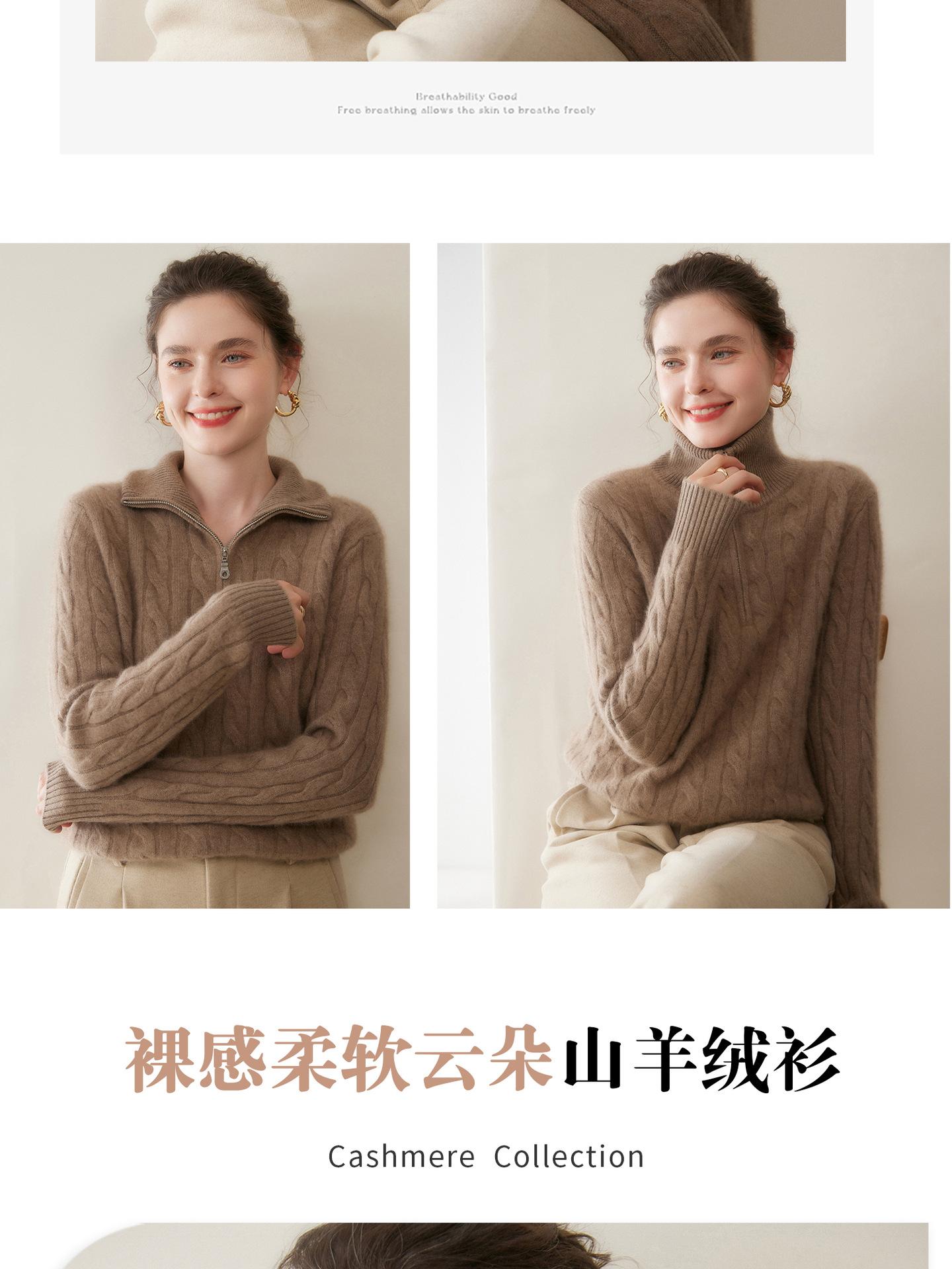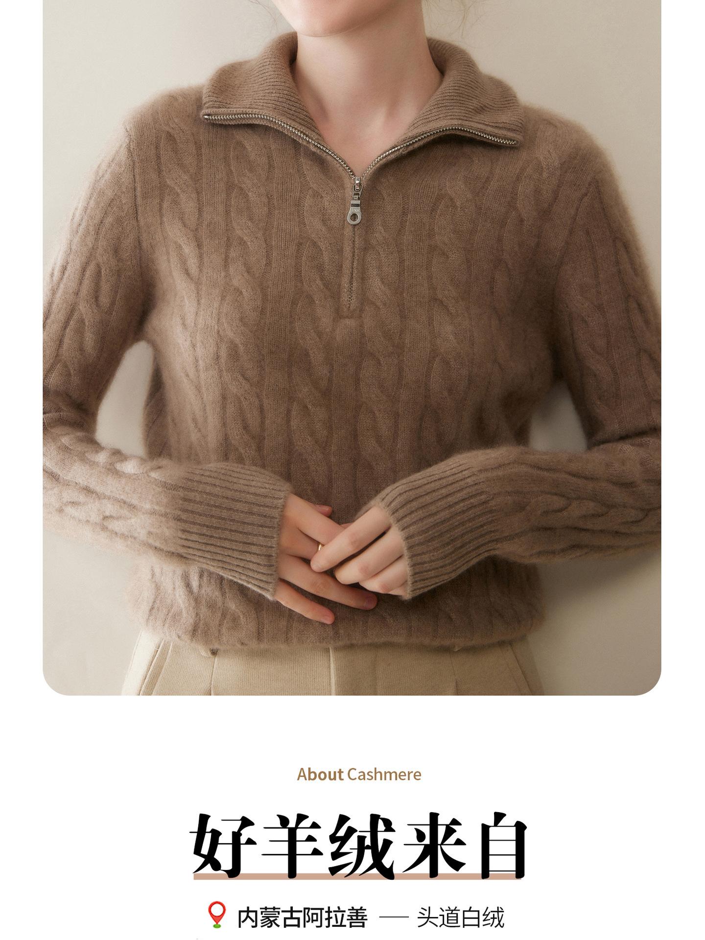 Suéter de cuello alto con media cremallera para mujer, nuevo de otoño e invierno, tejido de cable integral, color sólido, punto de cachemira, camiseta base de punto, manga larga