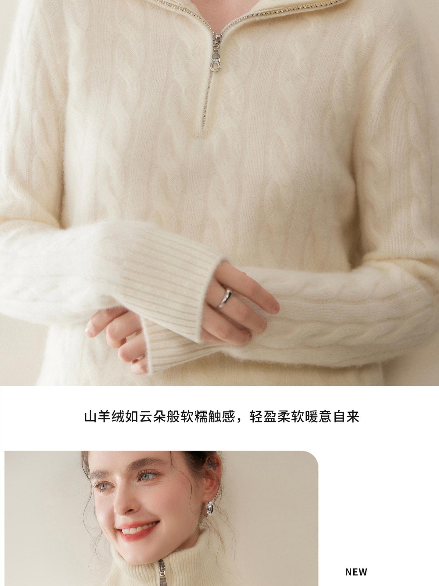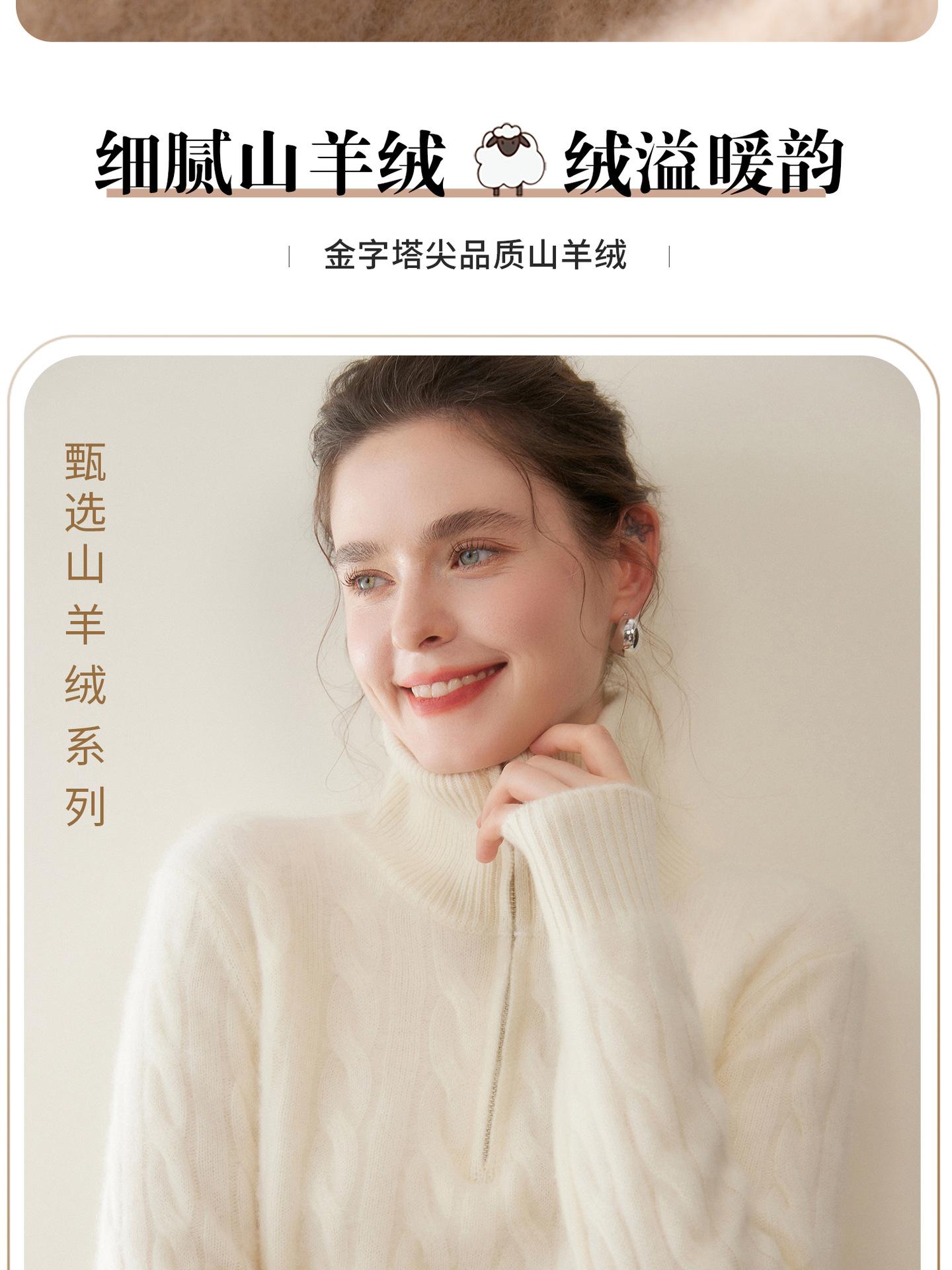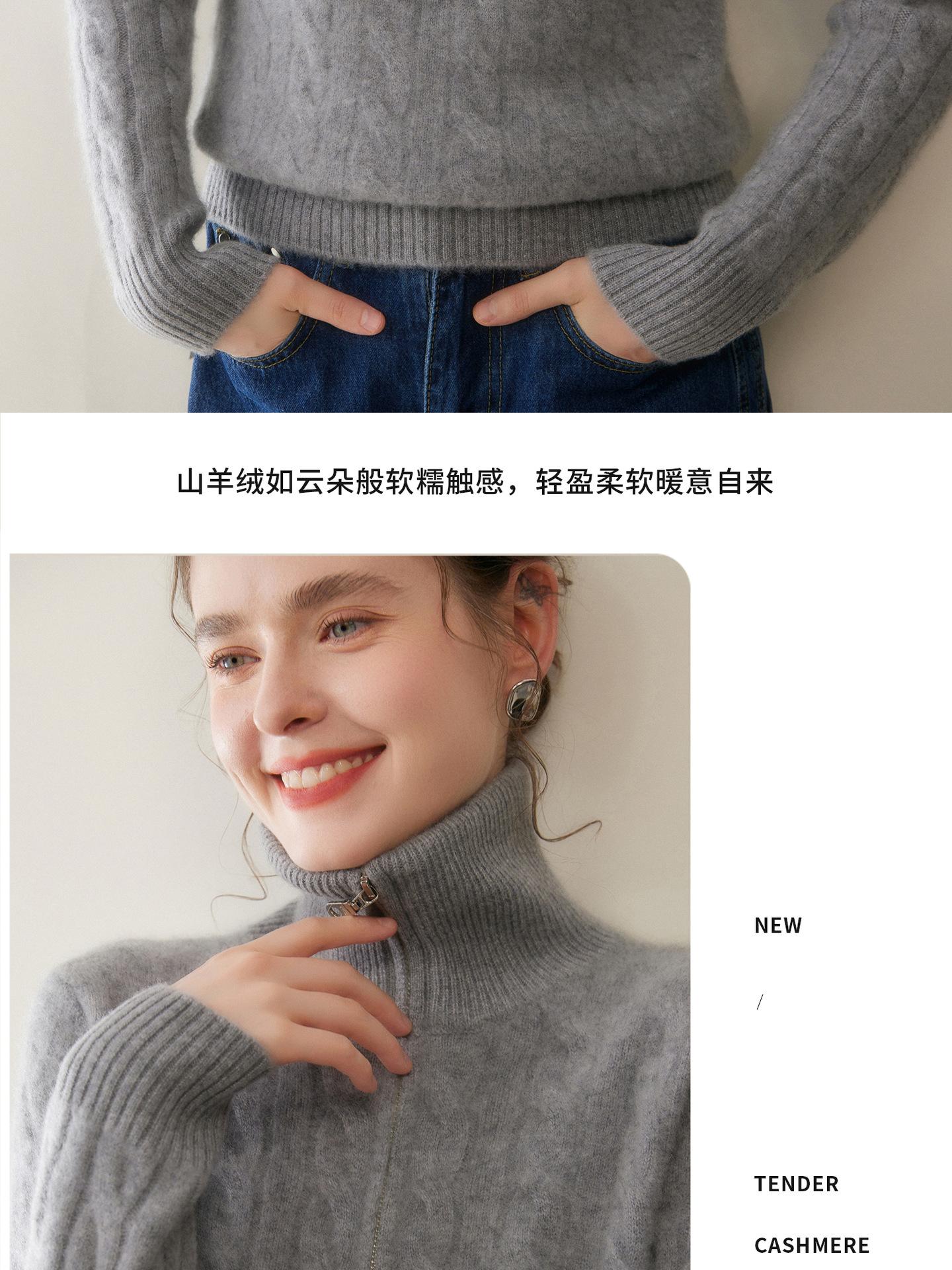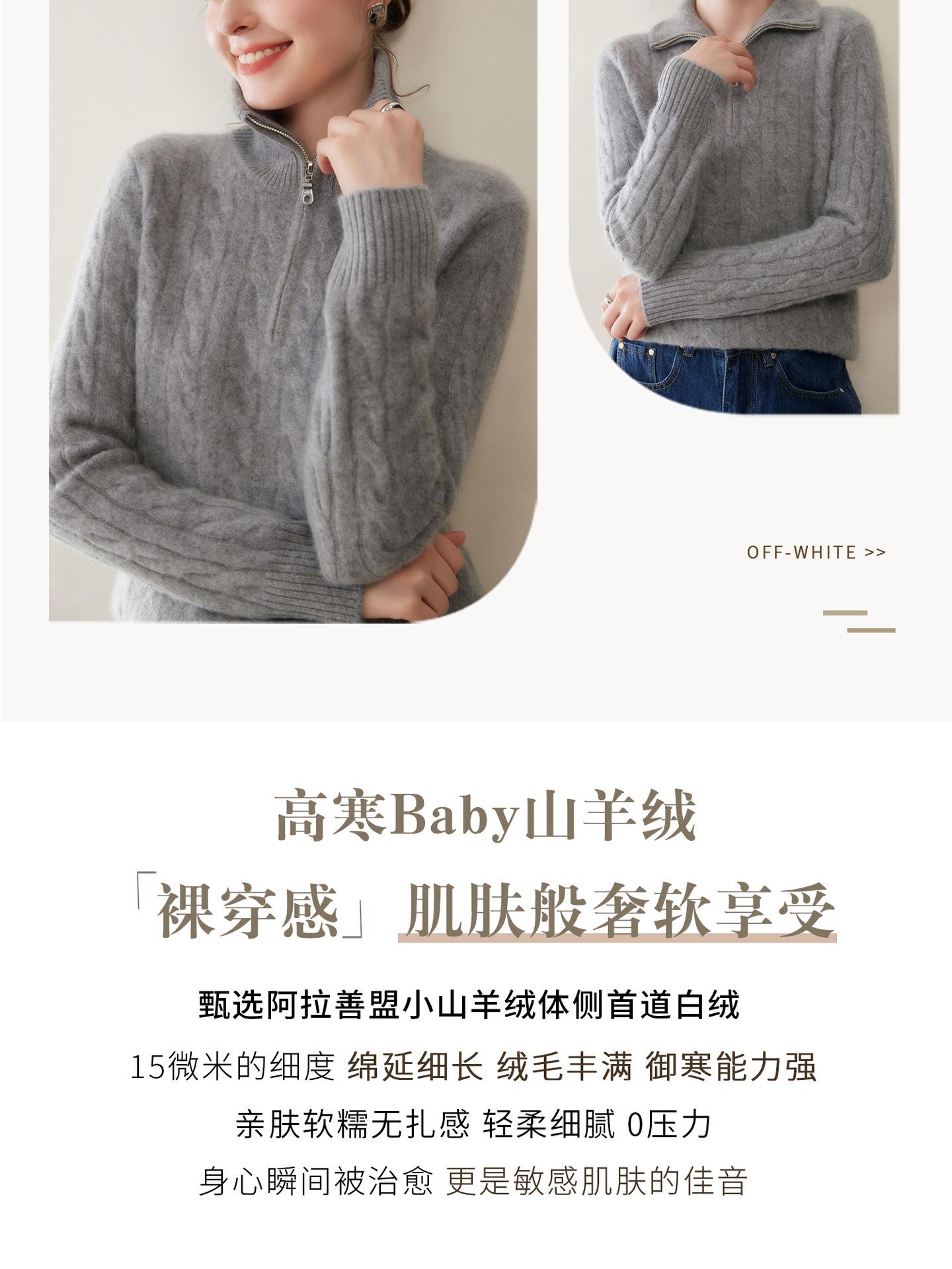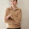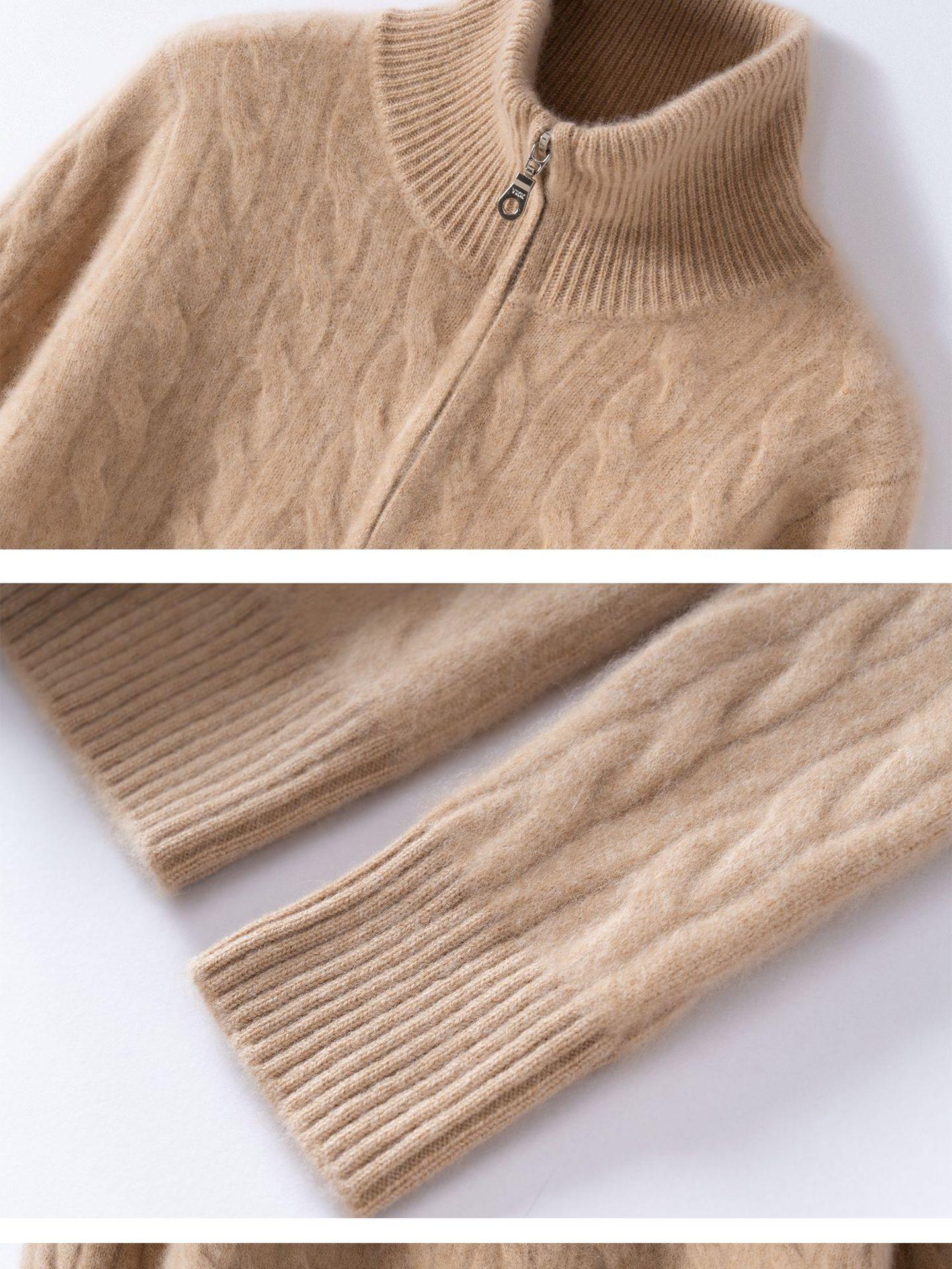 Suéter de cuello alto con media cremallera para mujer, nuevo de otoño e invierno, tejido de cable integral, color sólido, punto de cachemira, camiseta base de punto, manga larga