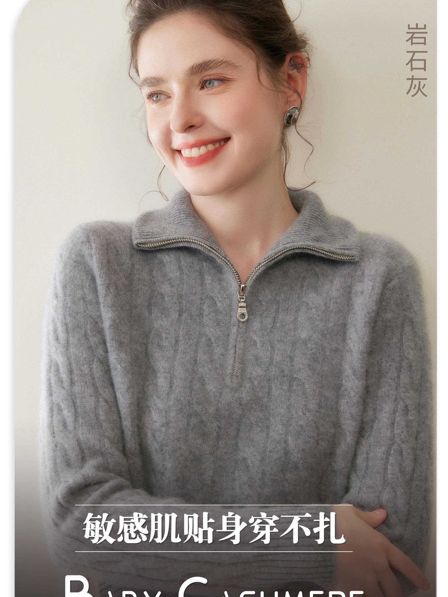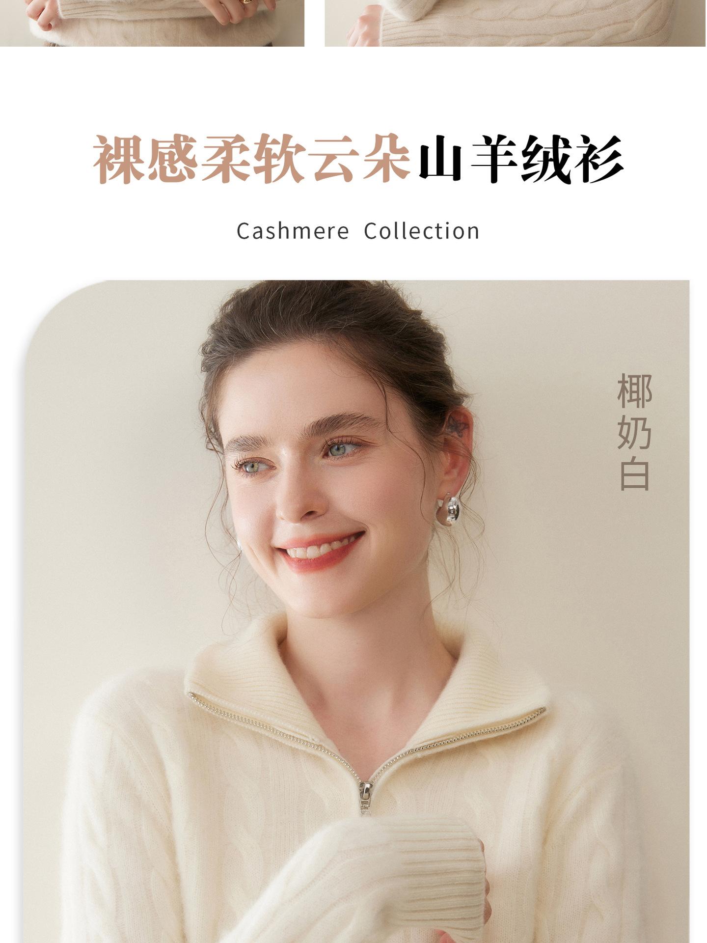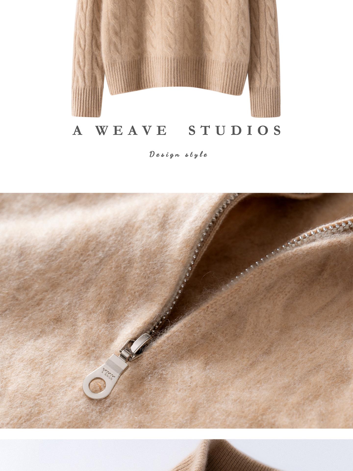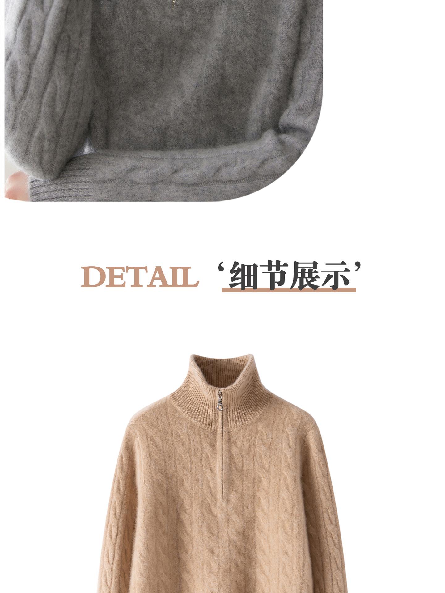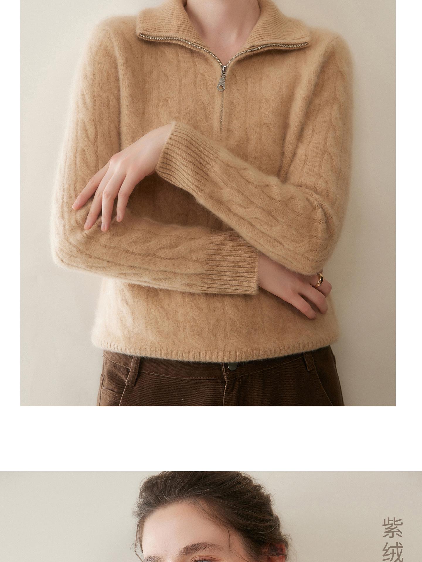 Suéter de cuello alto con media cremallera para mujer, nuevo de otoño e invierno, tejido de cable integral, color sólido, punto de cachemira, camiseta base de punto, manga larga