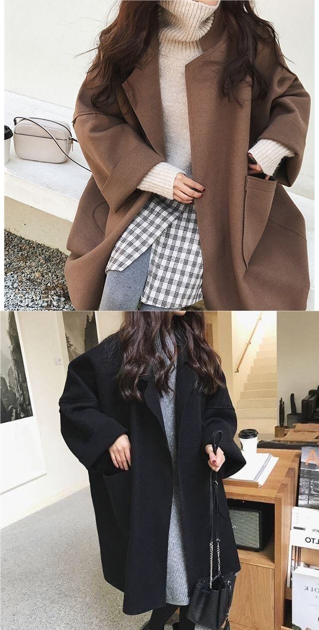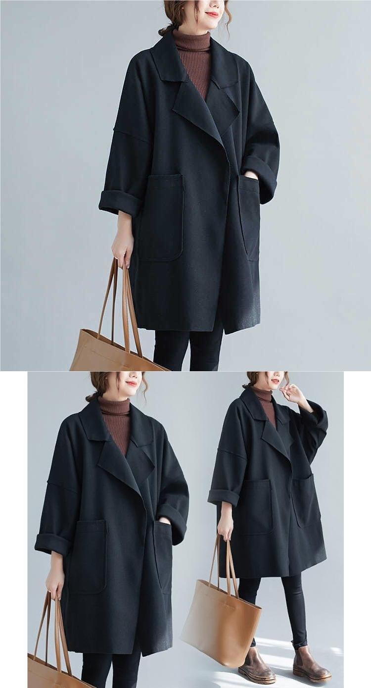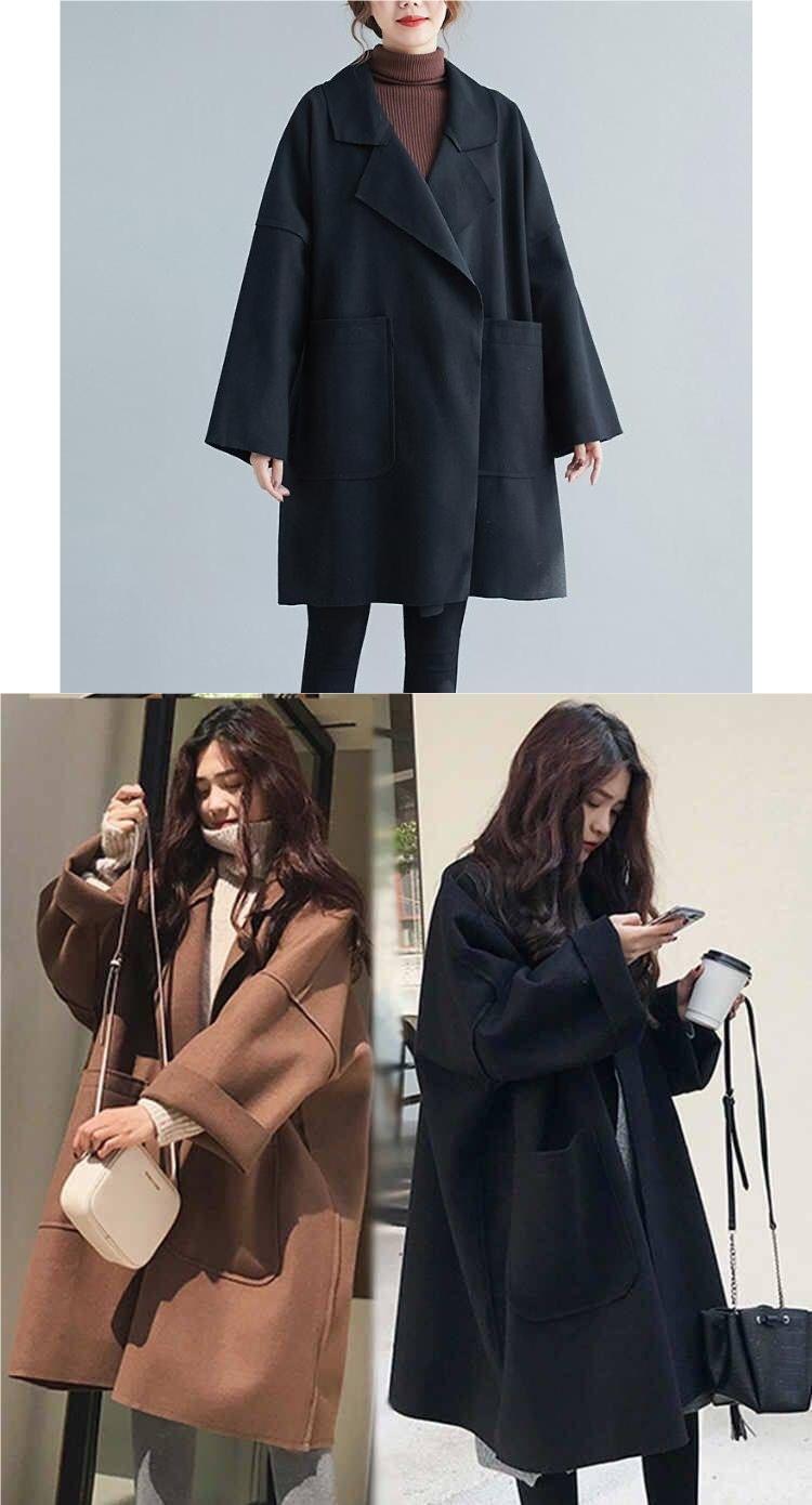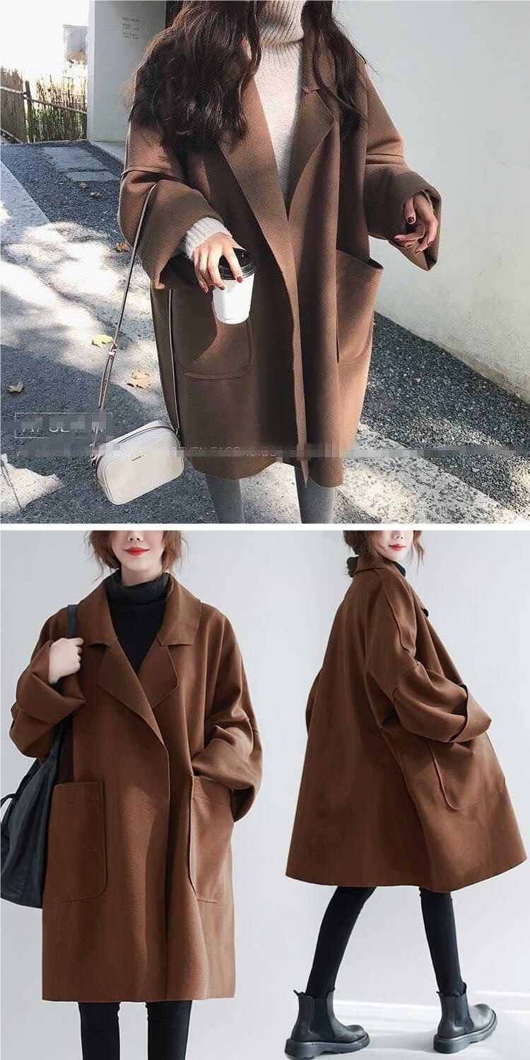 Abrigo Trench de Talla Extra Grande para Primavera y Otoño para Mujer, Nuevo Adelgazante, Nuevo Holgado de Largo Medio, Lana, Moderno, Abrigo 300 Jin
