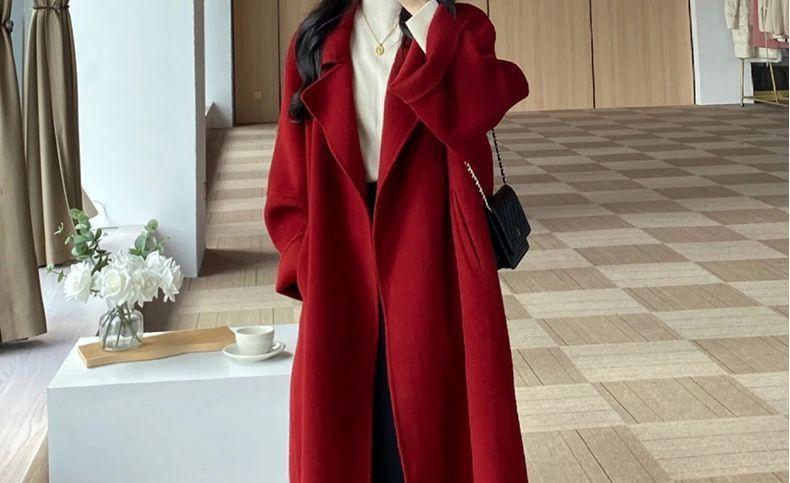 Abrigo rojo de lana para mujer invierno 2025 nuevo suelto temperamento de alta gama largo medio abrigo de lana