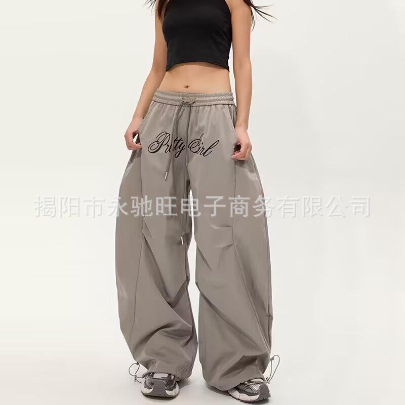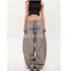 Verano Nuevo Americano Lavado Personalidad Estampado de Letras Pantalones Casuales Holgados Tendencia Japonesa Rectos Pierna Ancha