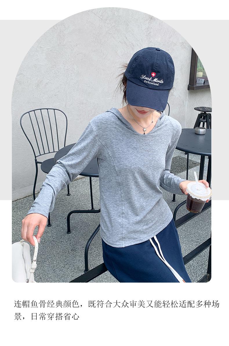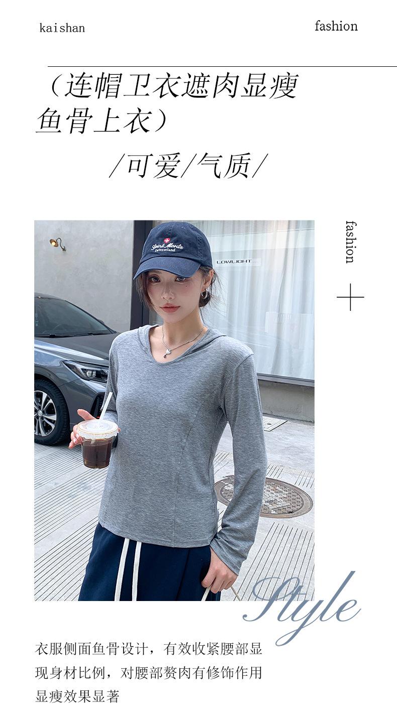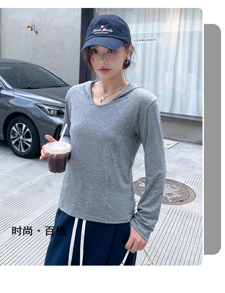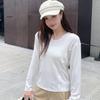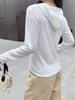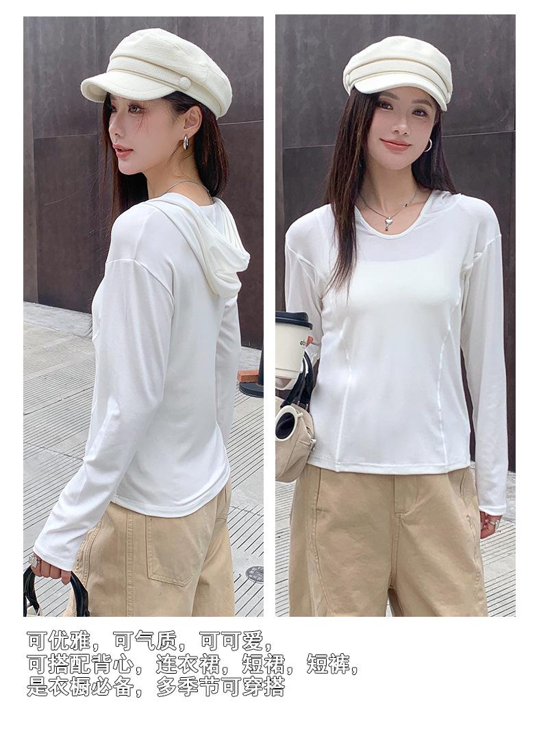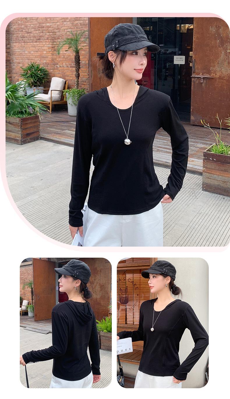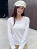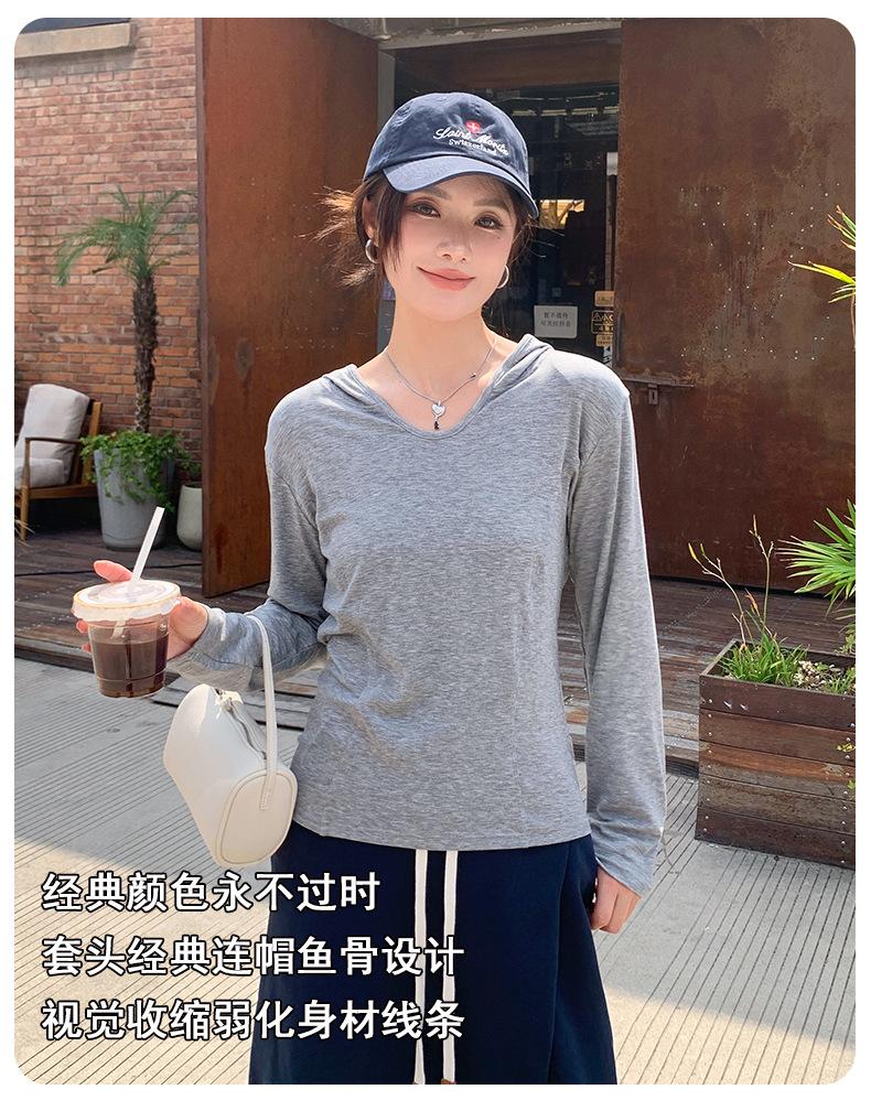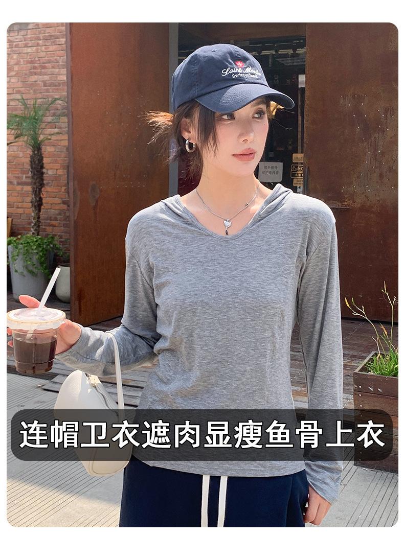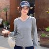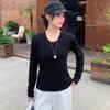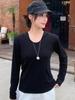 Playera de Manga Larga con Cuello en U Estilo Coreano para Mujer Primavera/Otoño 2025 Nueva Moda Ajuste Slim Sudadera con Capucha Capa Base Tejida