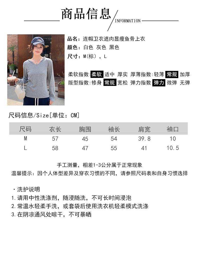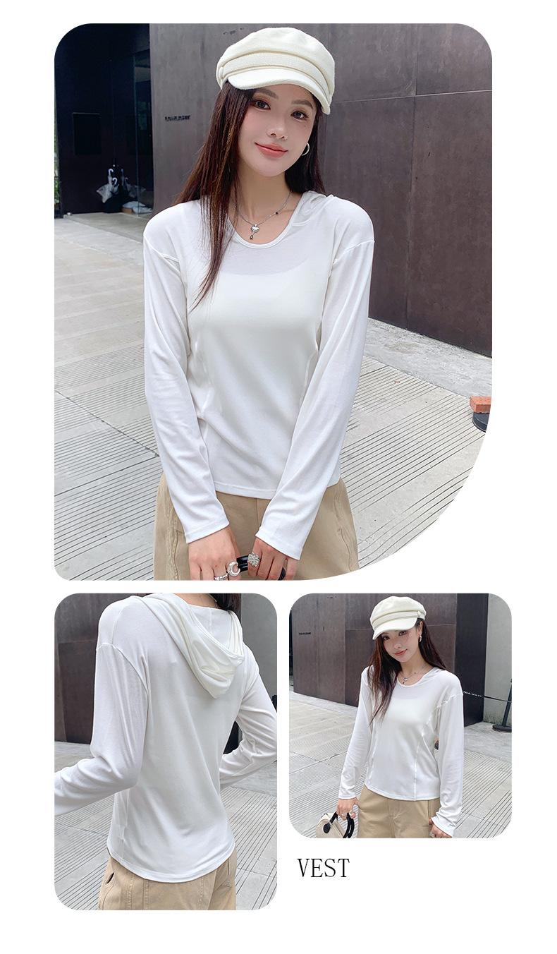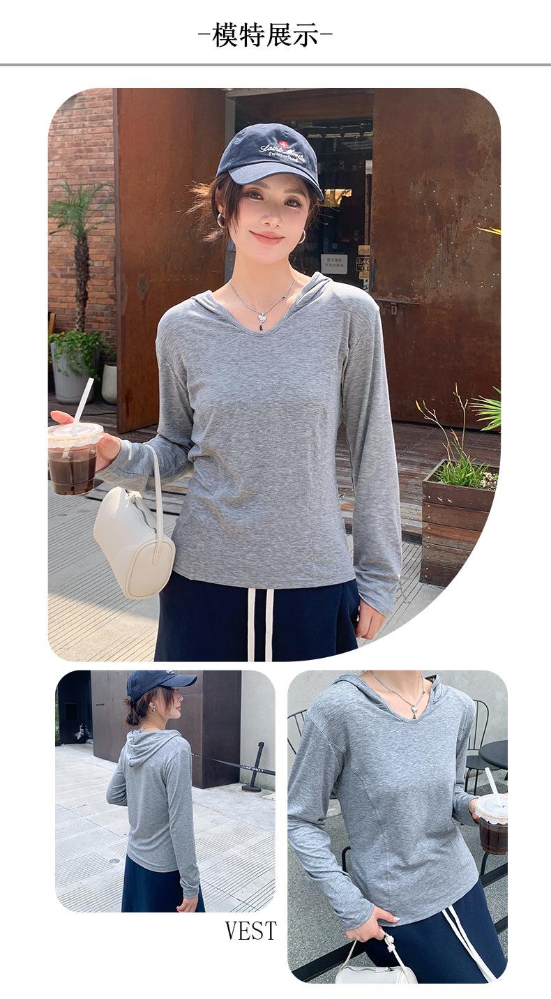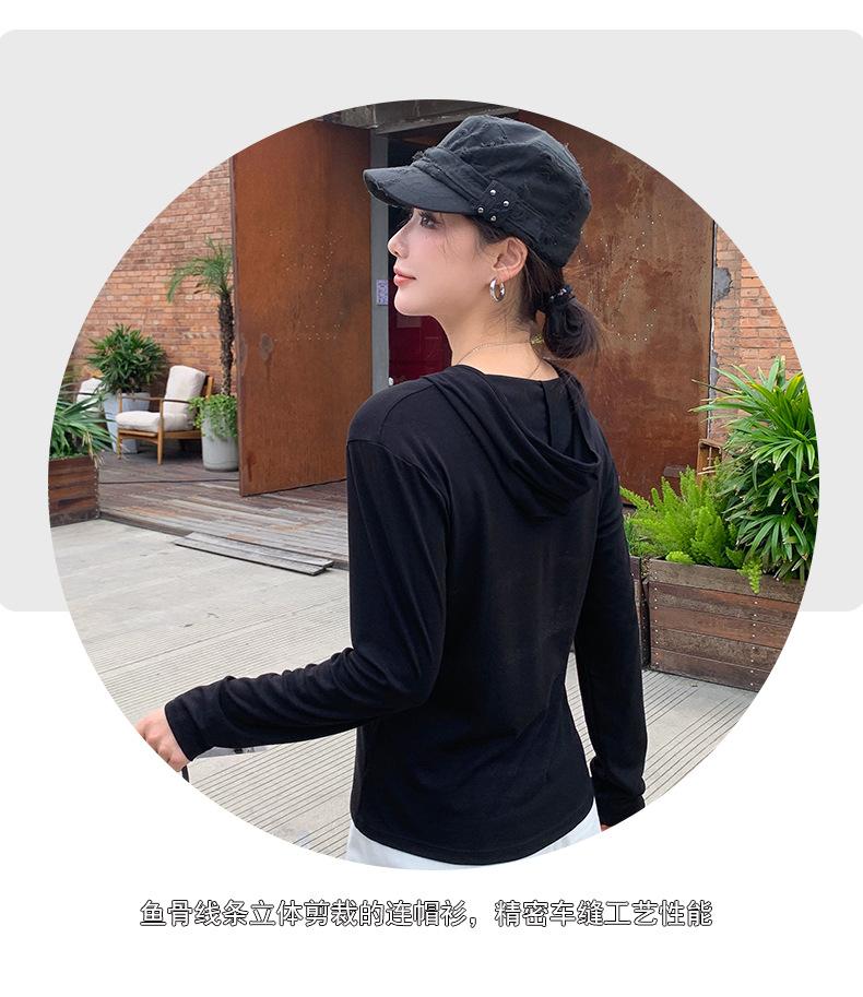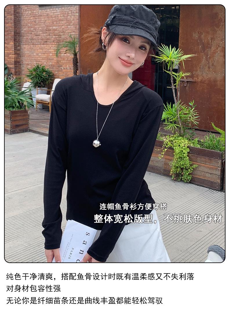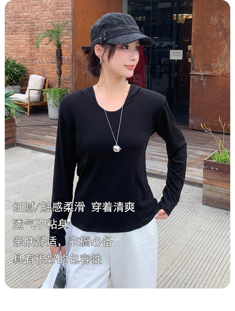 Playera de Manga Larga con Cuello en U Estilo Coreano para Mujer Primavera/Otoño 2025 Nueva Moda Ajuste Slim Sudadera con Capucha Capa Base Tejida