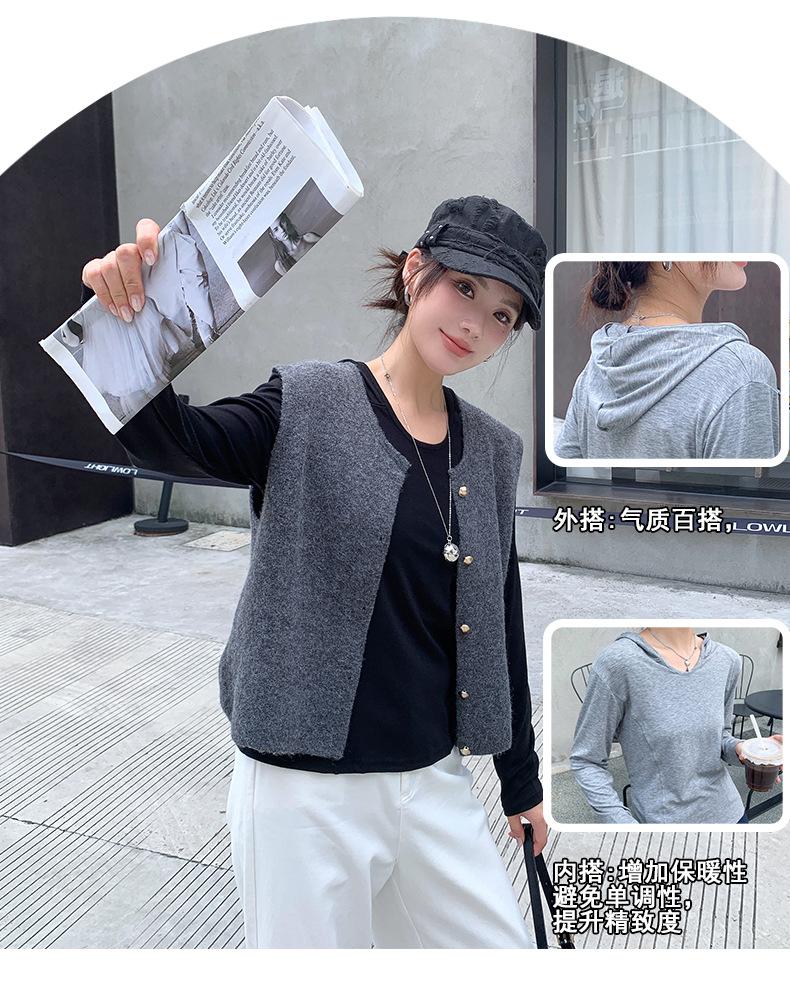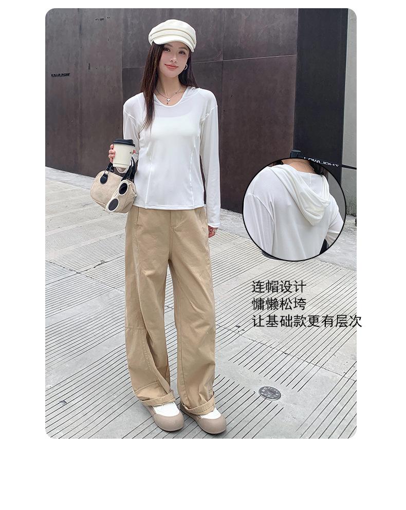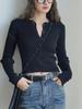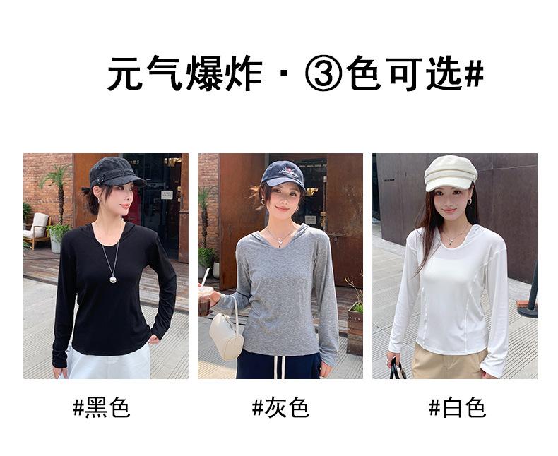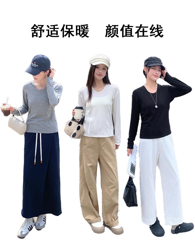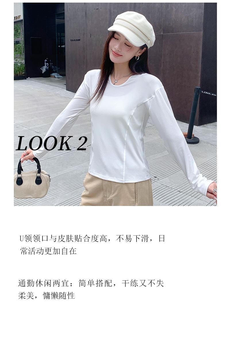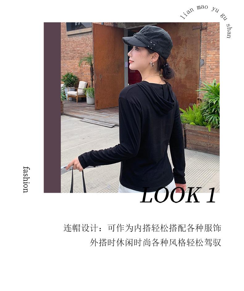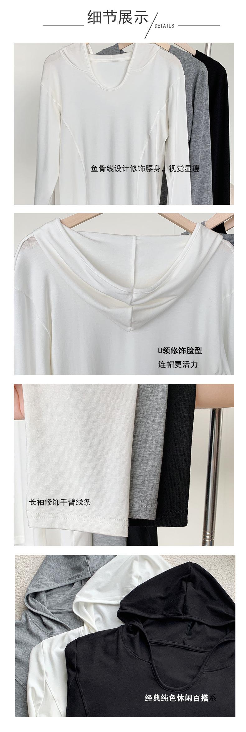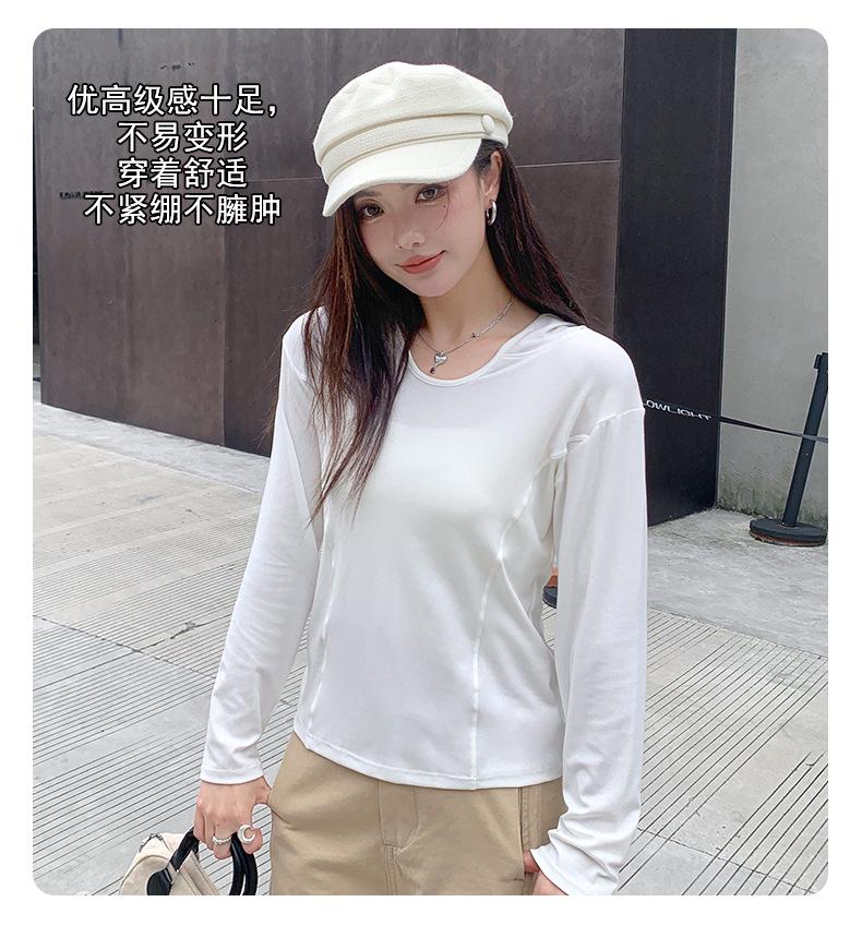 Playera de Manga Larga con Cuello en U Estilo Coreano para Mujer Primavera/Otoño 2025 Nueva Moda Ajuste Slim Sudadera con Capucha Capa Base Tejida