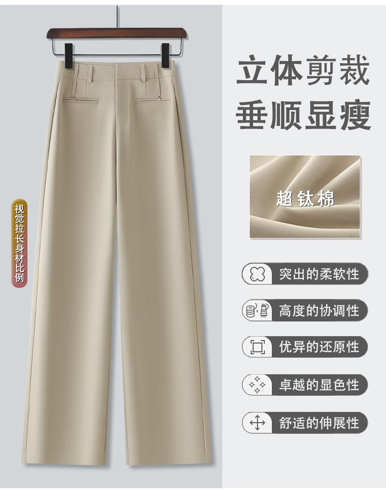 Pantalones drapeados de pierna ancha para mujer 2025 nuevo estilo de primavera y otoño corte ajustado pierna recta pantalones de traje de cintura alta adelgazantes sueltos casuales
