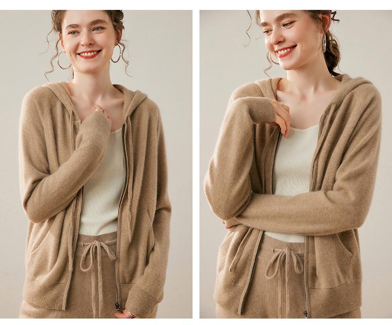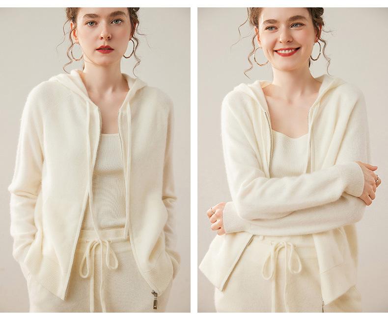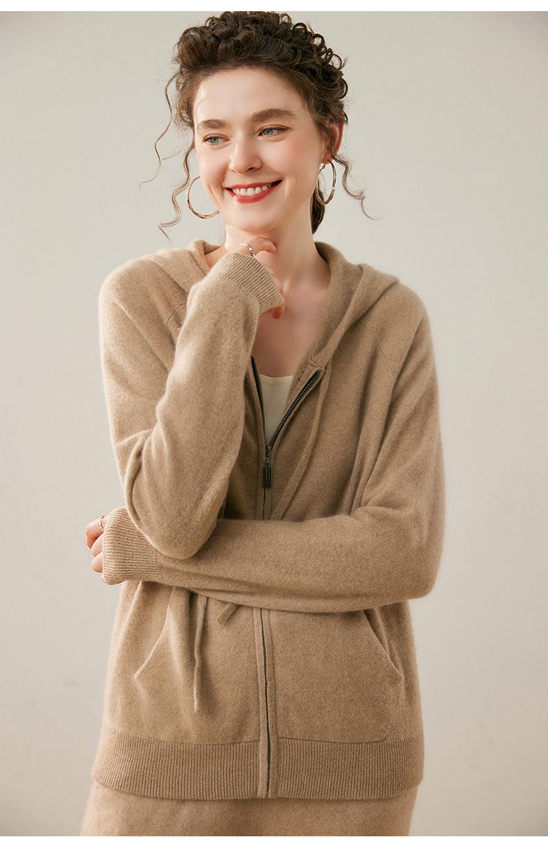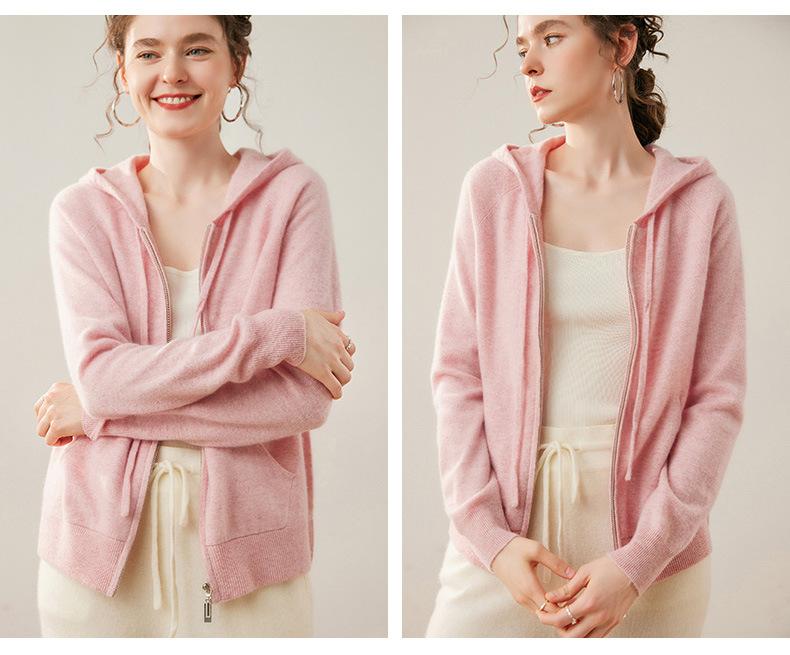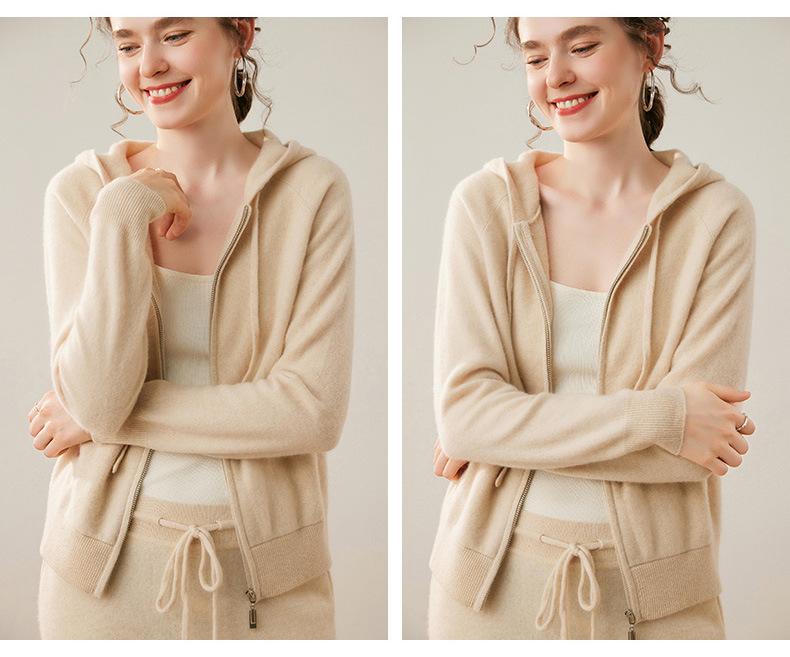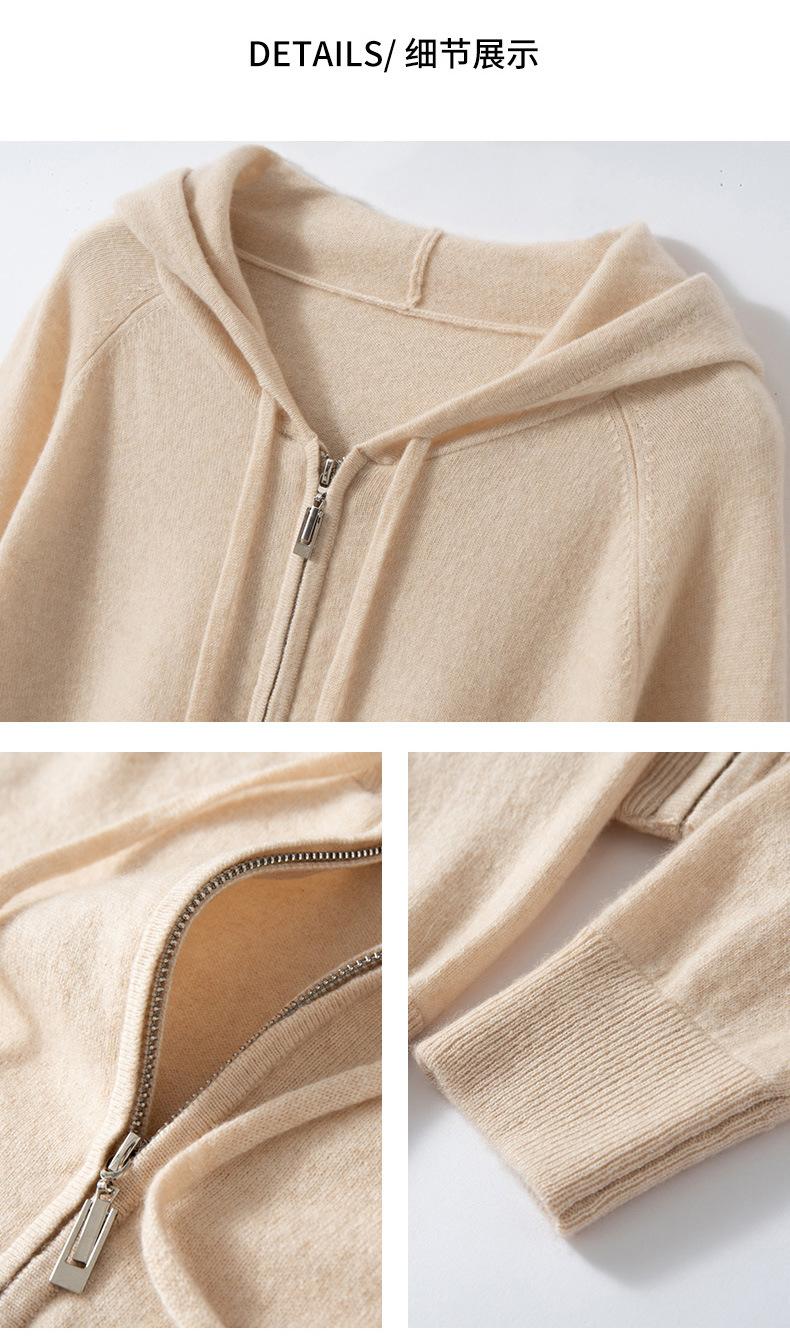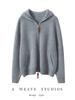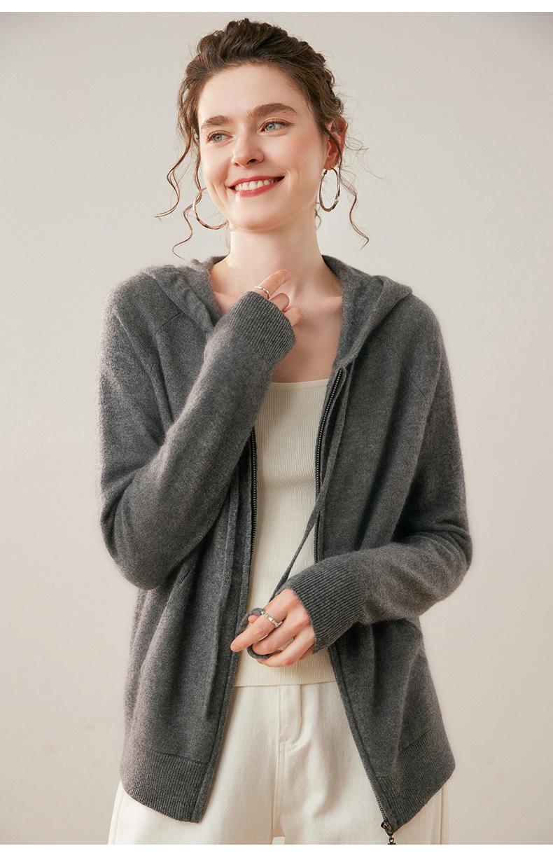 Cárdigan de Cachemira Versátil Nuevo Otoño/Invierno 2025 para Mujer con Capucha y Cierre de Cremallera, Abrigo Suéter Holgado de Punto Casual