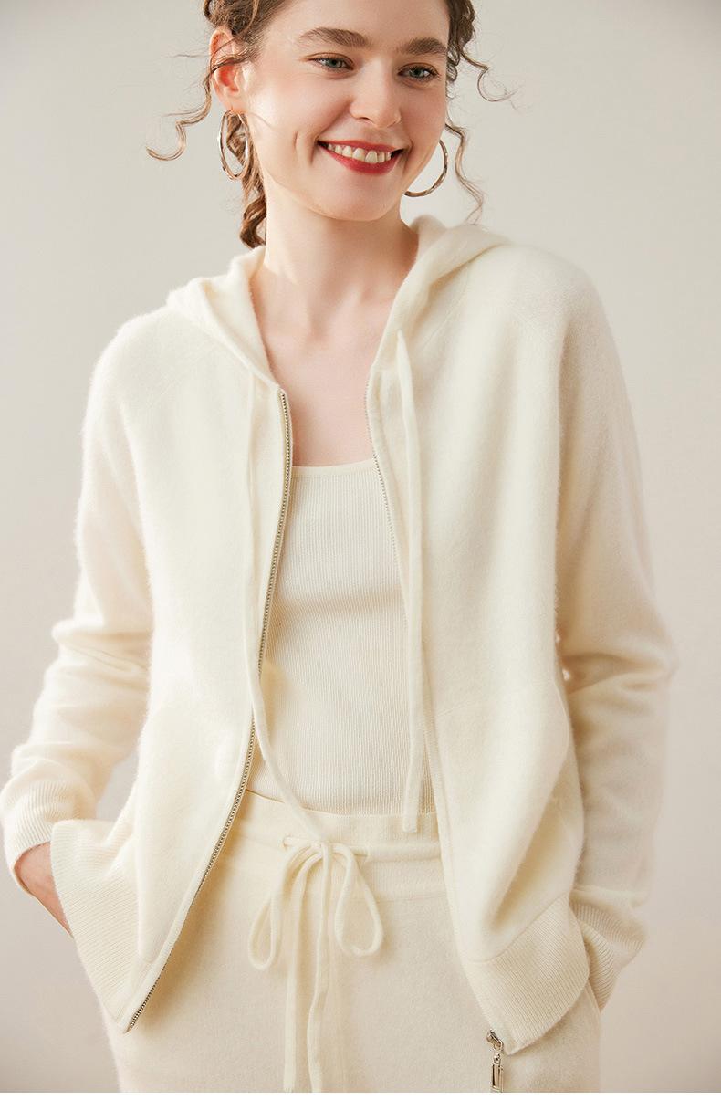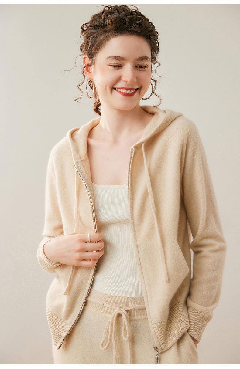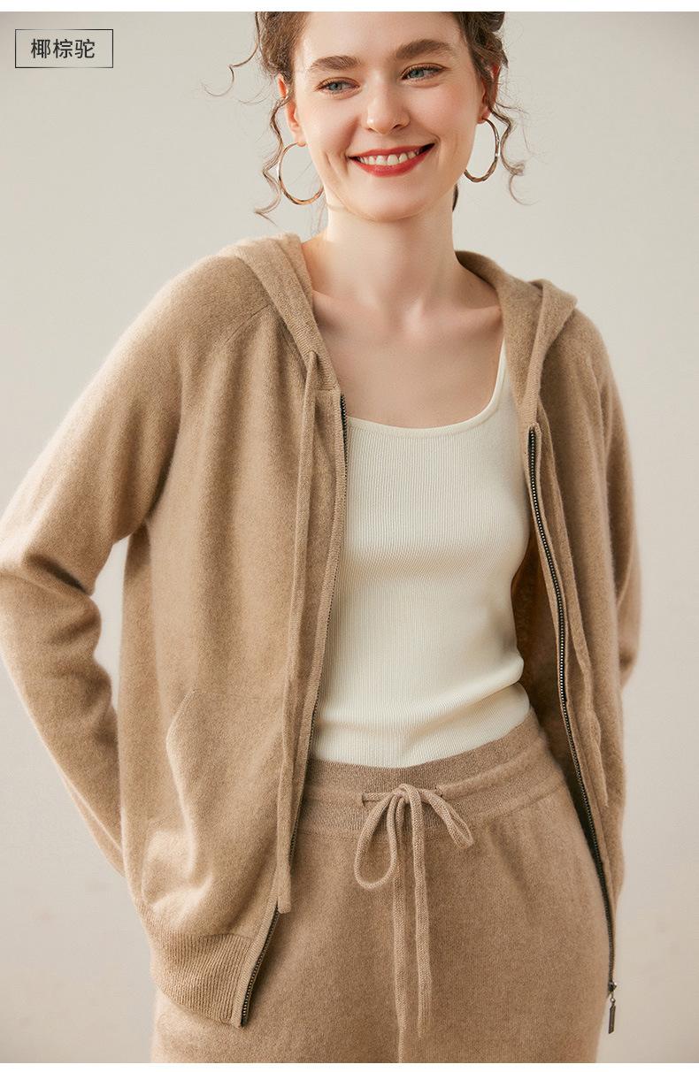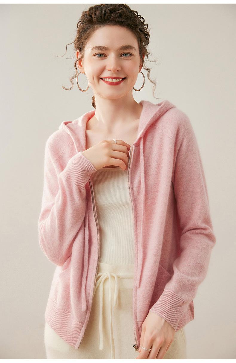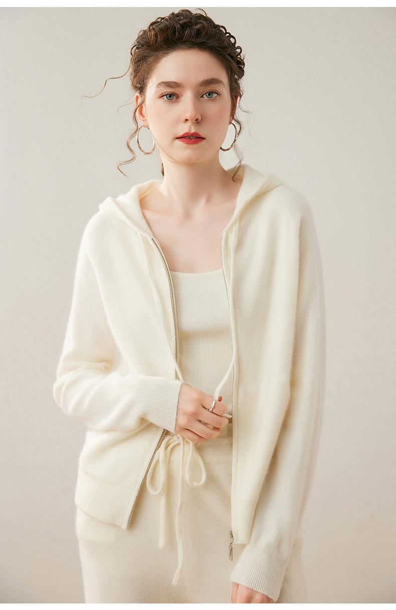 Cárdigan de Cachemira Versátil Nuevo Otoño/Invierno 2025 para Mujer con Capucha y Cierre de Cremallera, Abrigo Suéter Holgado de Punto Casual