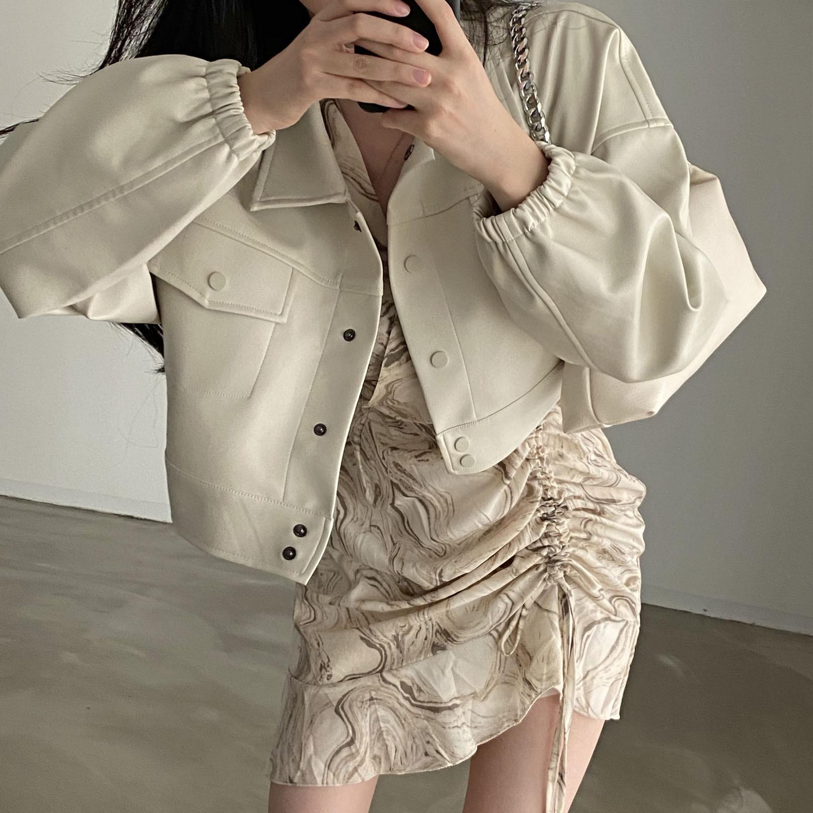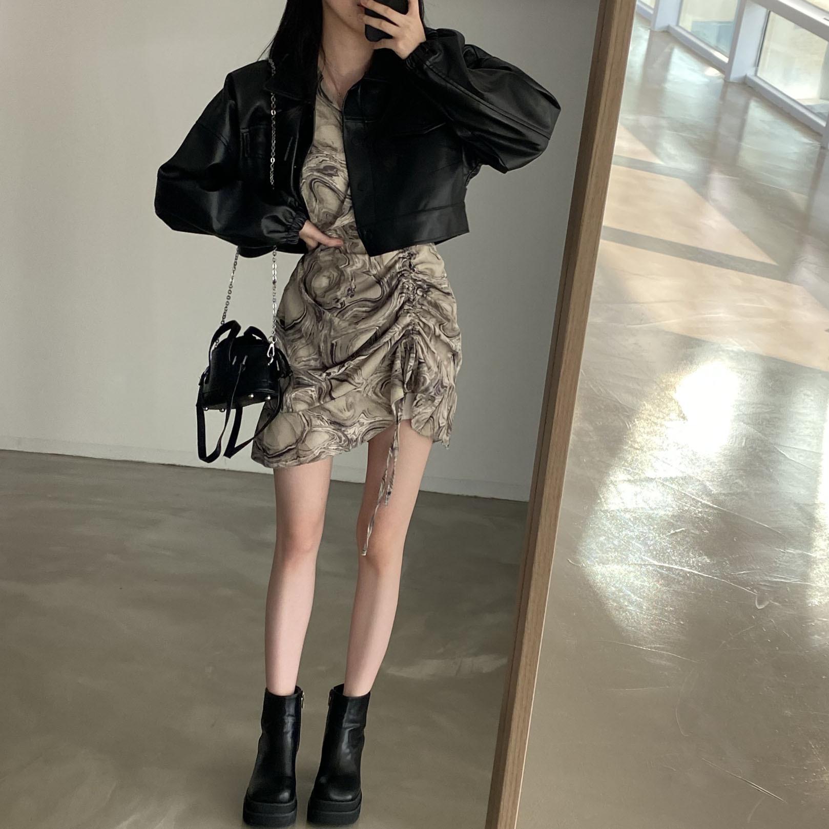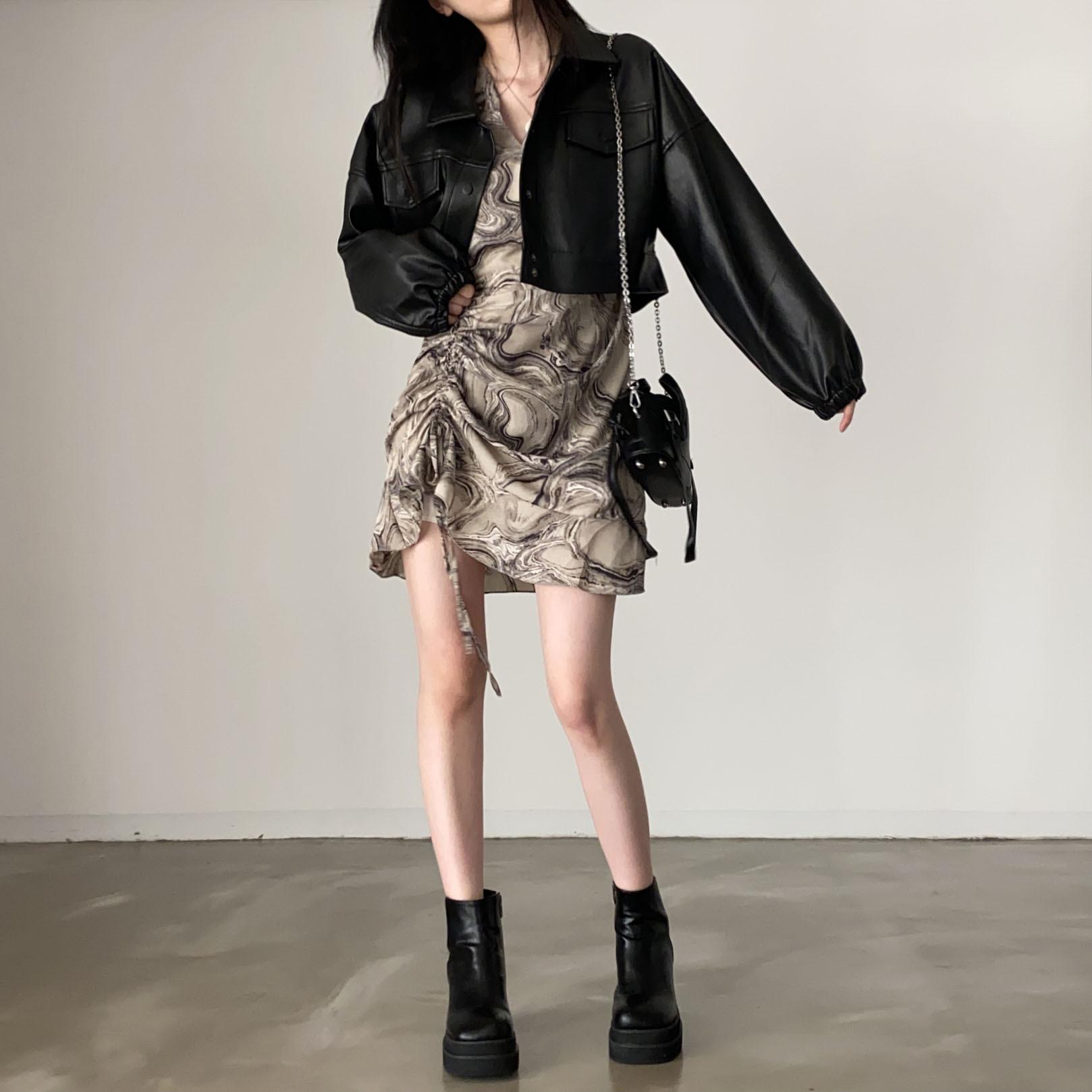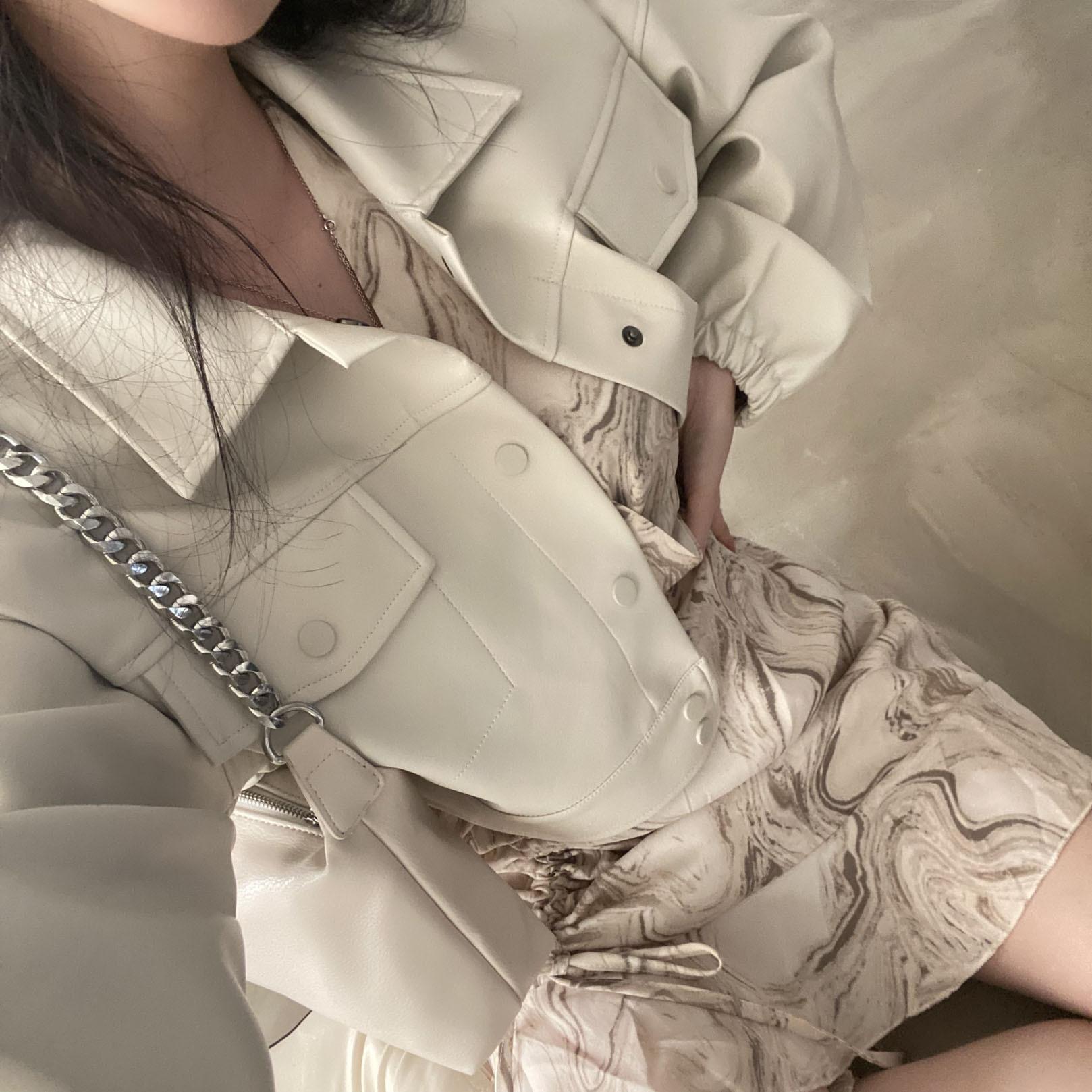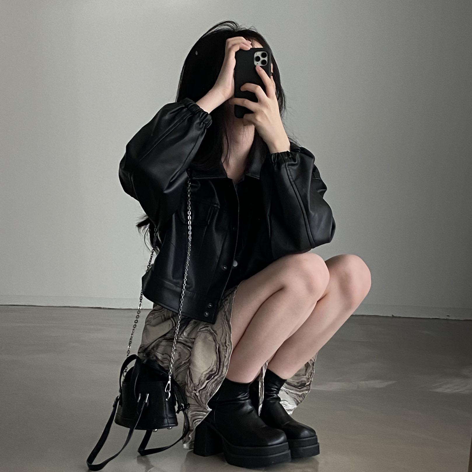 2025 Otoño Nuevo Chic Coreano Cuello Vuelto Doble Bolsillo Top de Cuero Chaqueta de Cuero para Mujer
