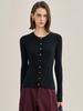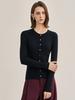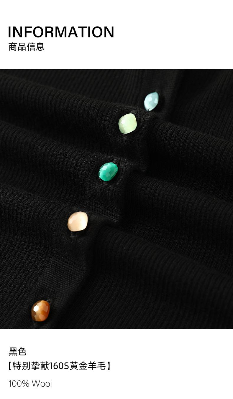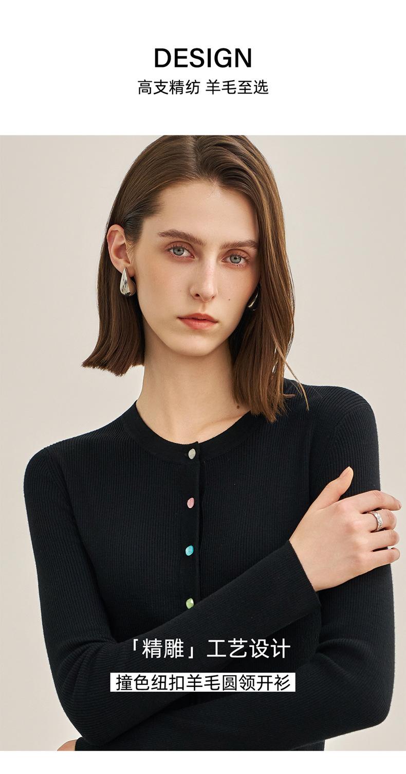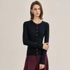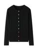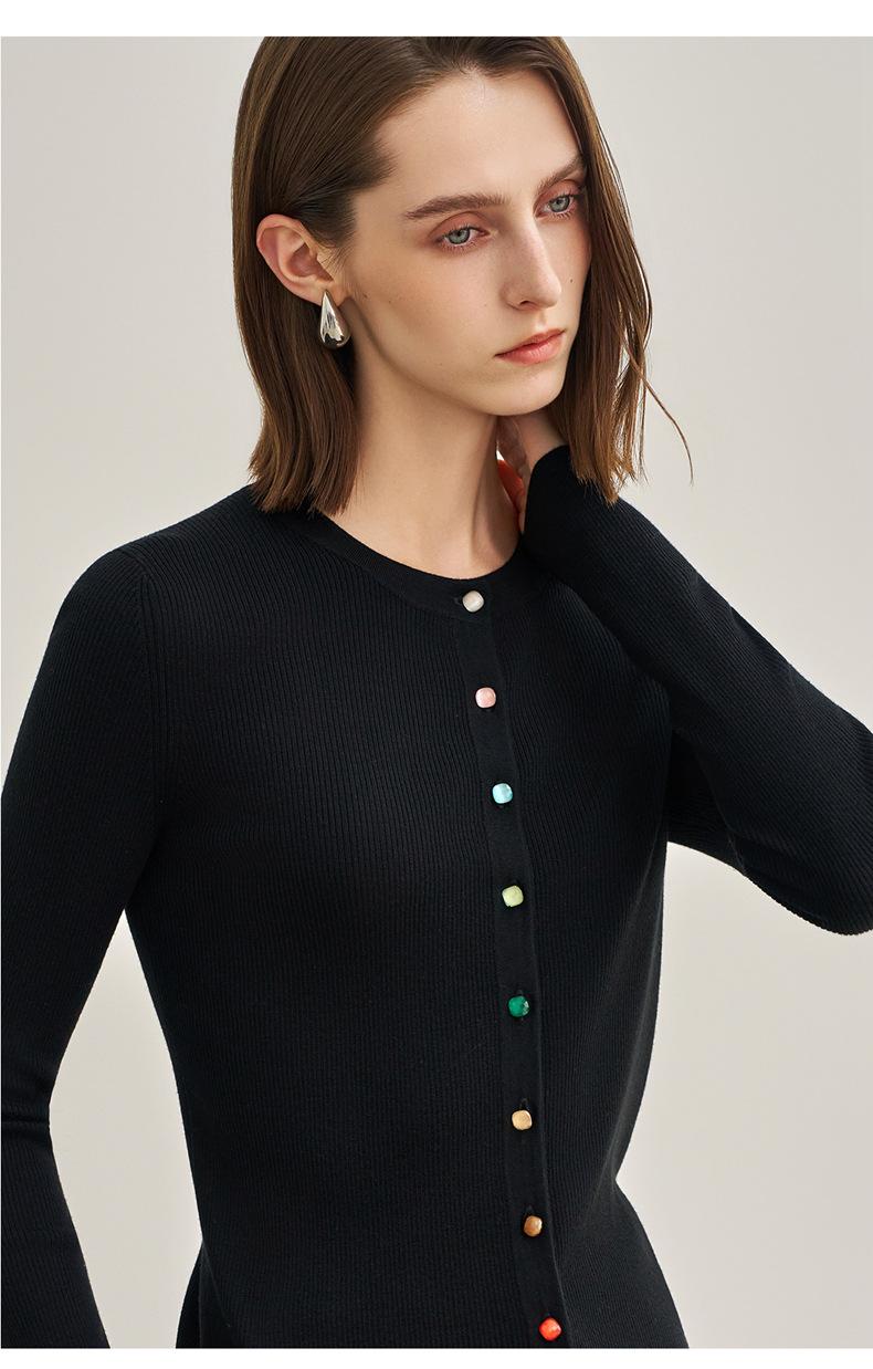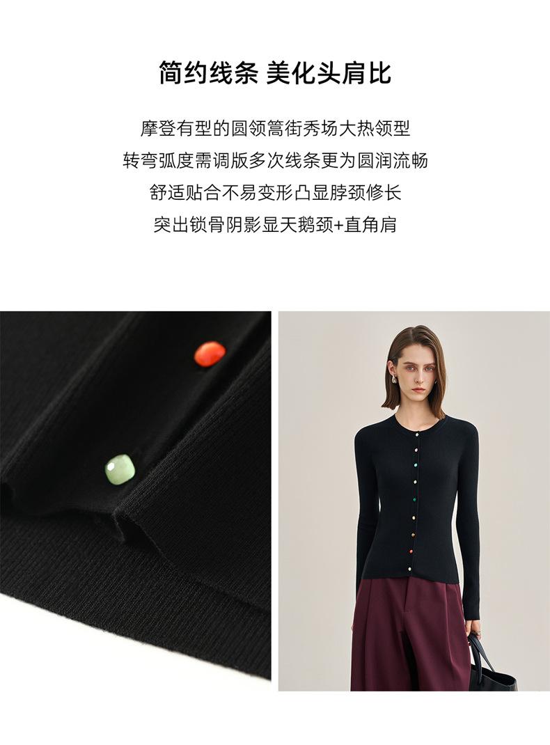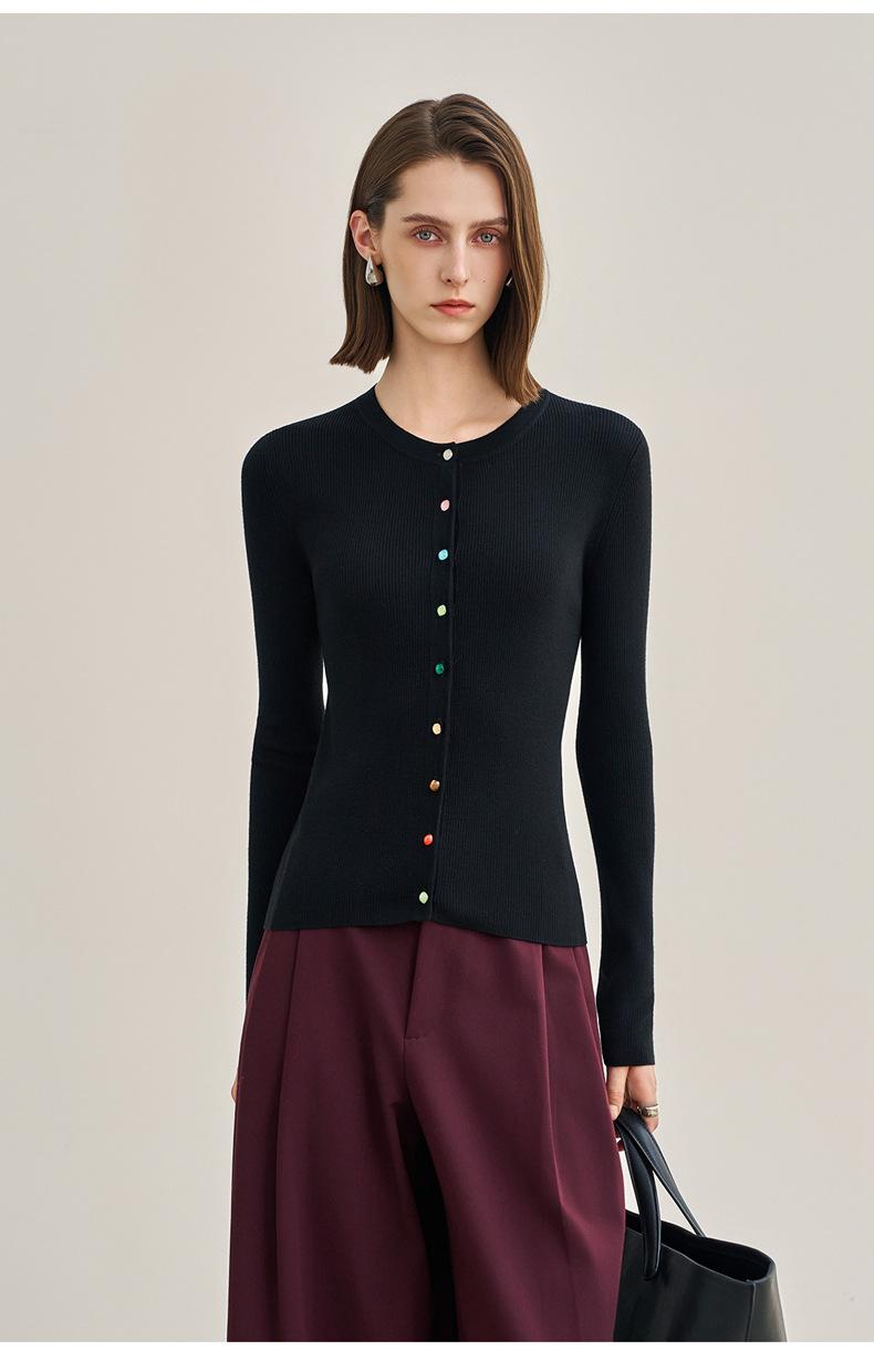 Suéter de otoño e invierno con botones de color y cuello redondo de imitación 100% lana pura, cárdigan para mujer, corte ajustado, entallado, abrigo exterior de un solo pecho, adelgazante