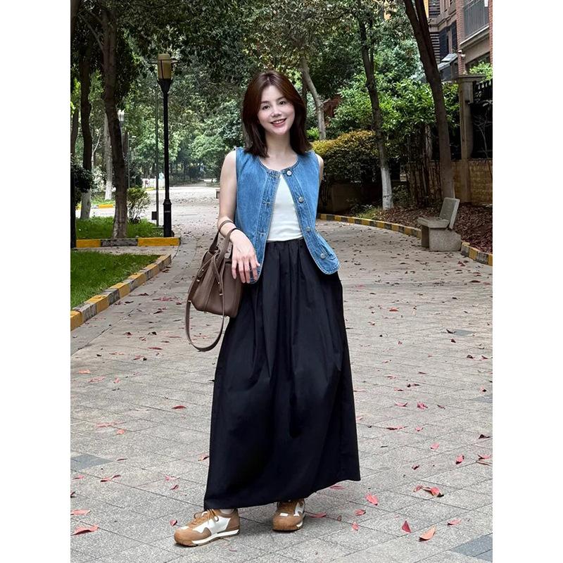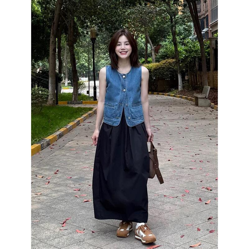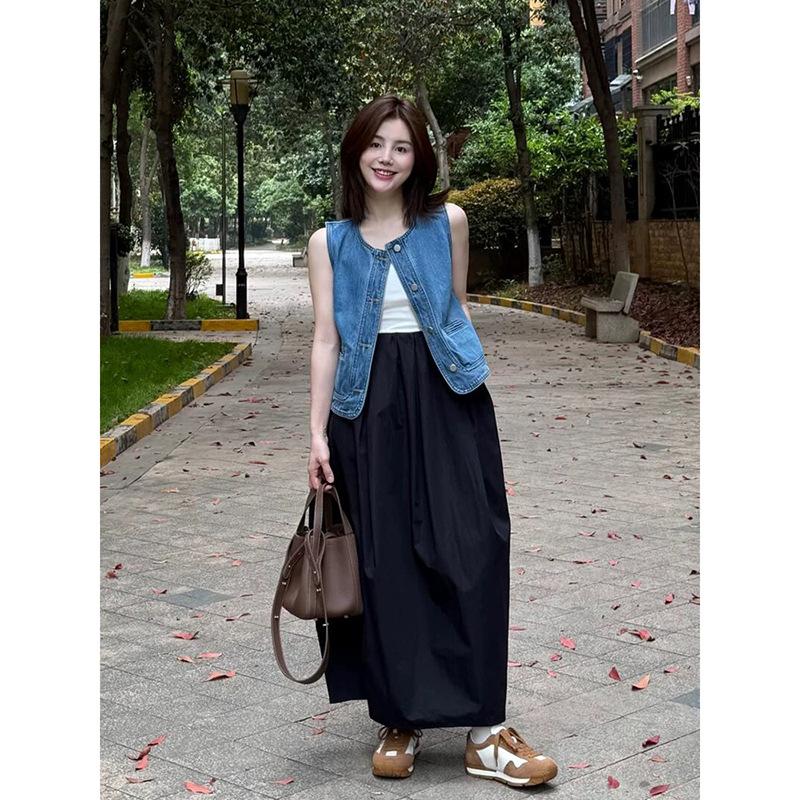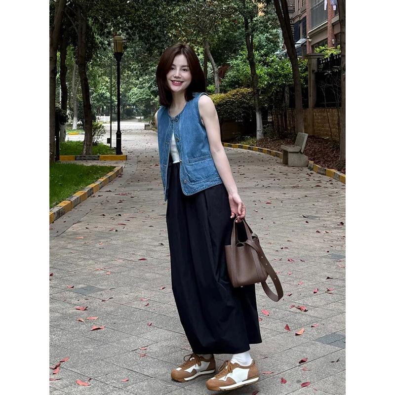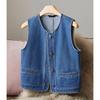 Chaleco Corto de Mezclilla Lavado de Cuello Redondo Retro Sin Mangas para Mujer Verano 2025 Nuevo Talla Pequeña Versátil