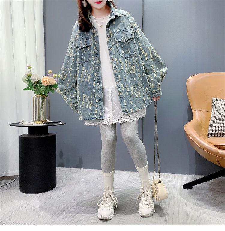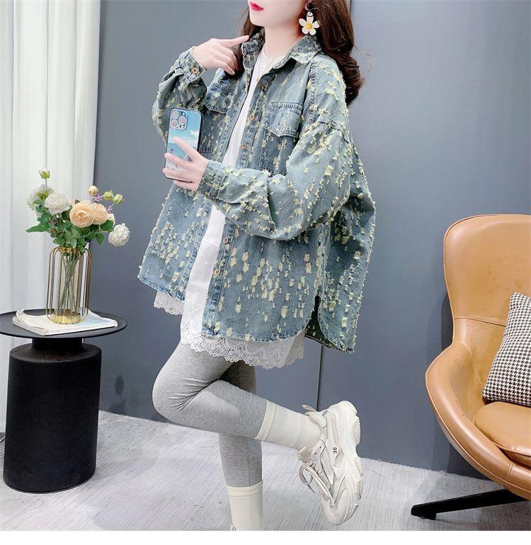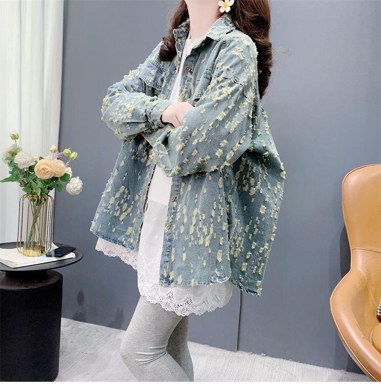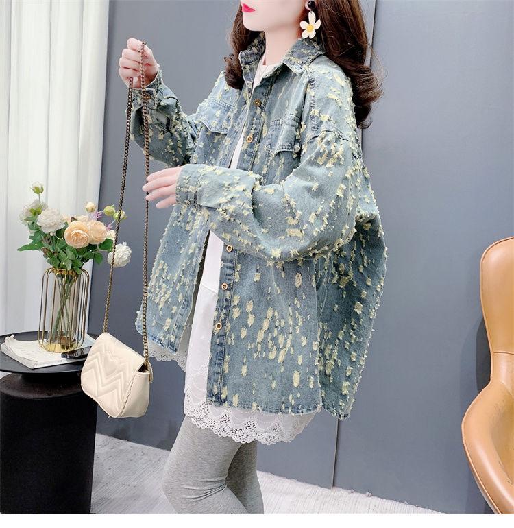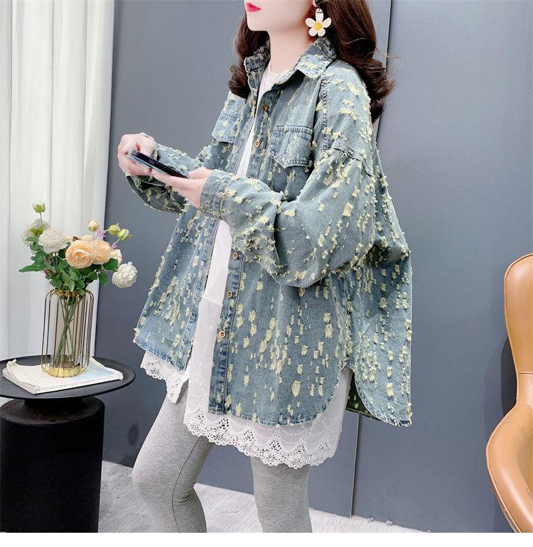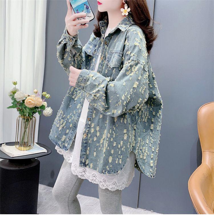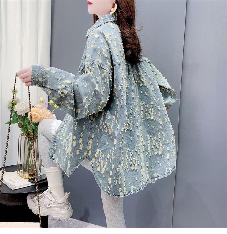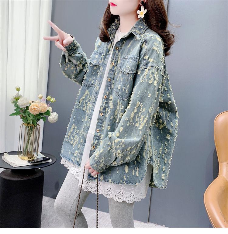 Shanlidaidi sentido del diseño camisa de mezclilla rasgada mujer primavera 2025 nueva suelta moderna versátil retro casual