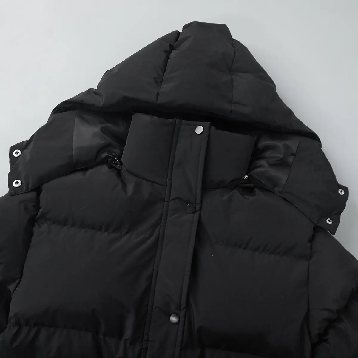 Abrigo chaqueta de algodón negro transfronterizo Europeo y Americano 2025 invierno nuevo bolsillo cuadrado chaqueta de algodón cálida con capucha chaqueta de algodón mujer