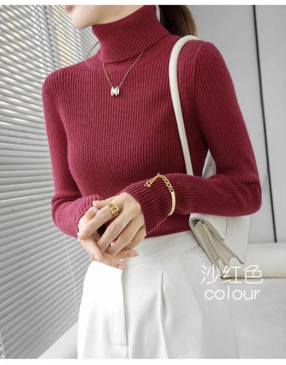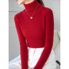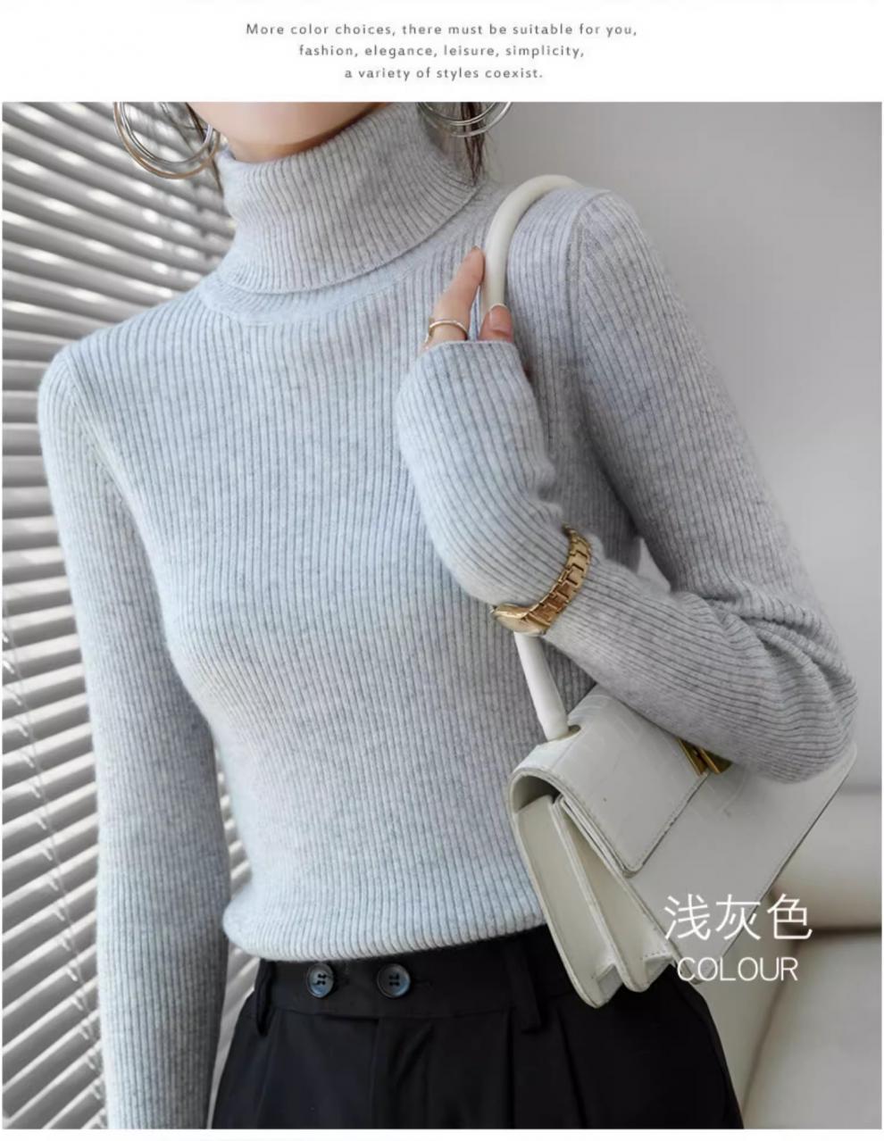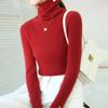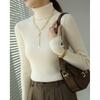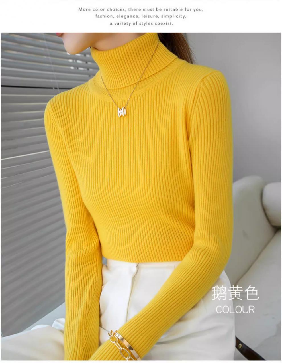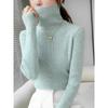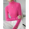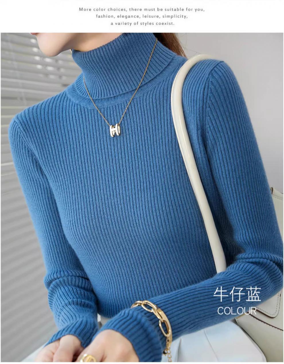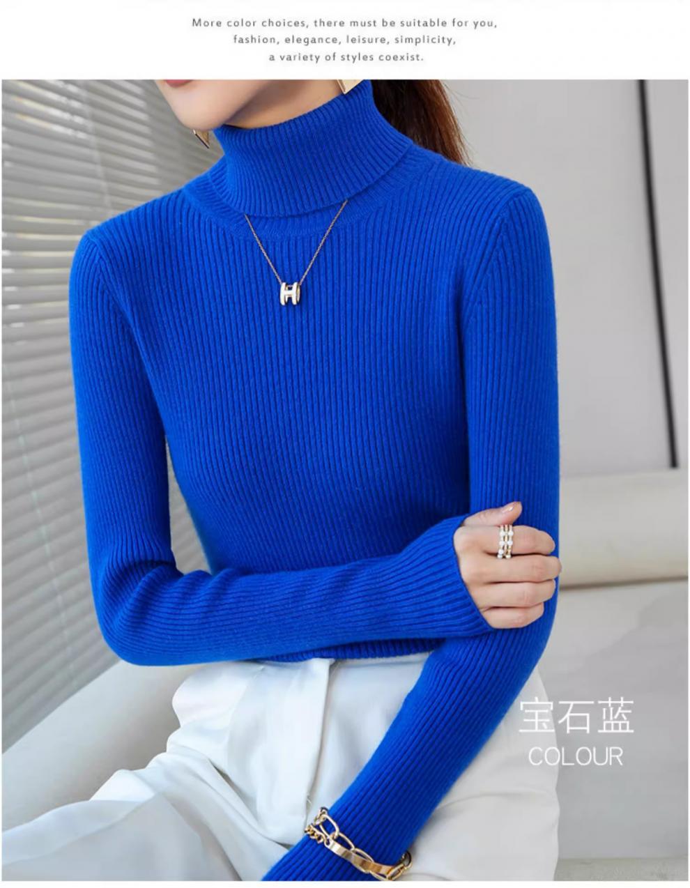 Camiseta Base de Cuello Alto para Mujer Otoño Invierno Tejido de Punto Adelgazante Azul Real Suéter Ajustado Capa Interior Top de Moda