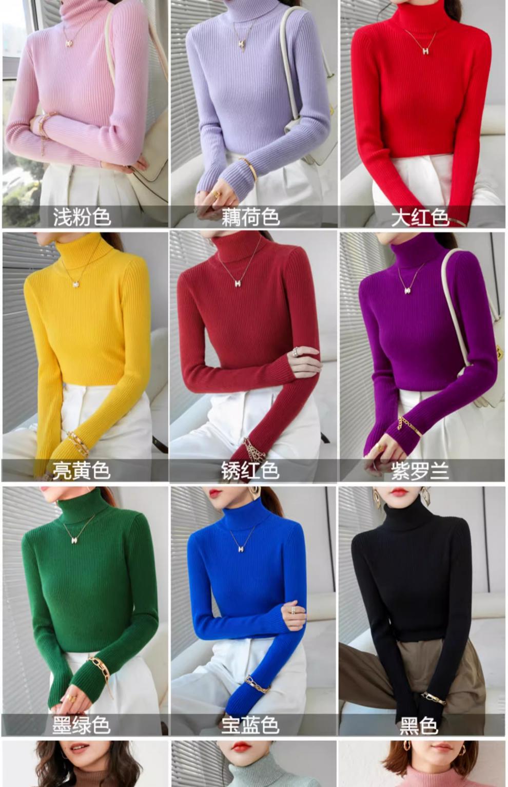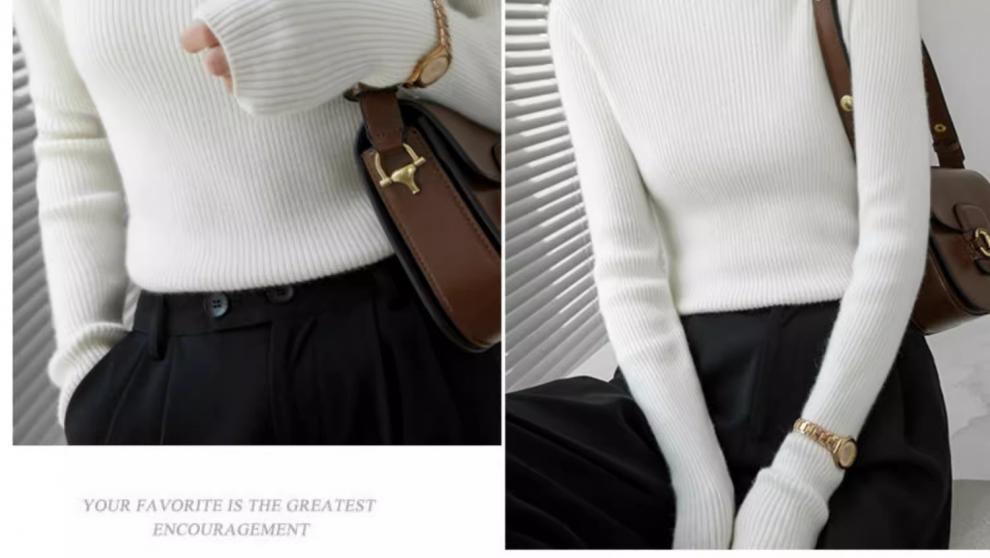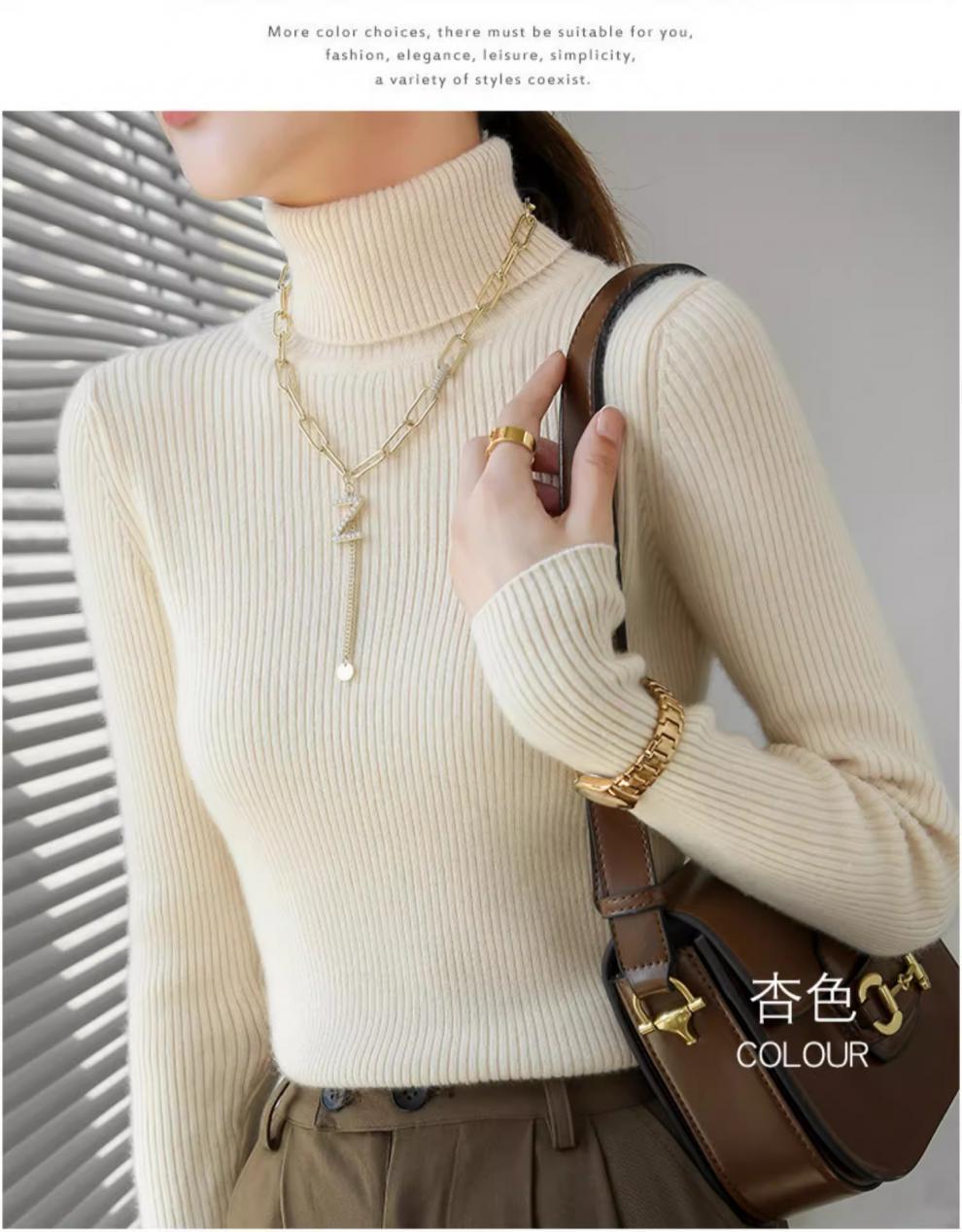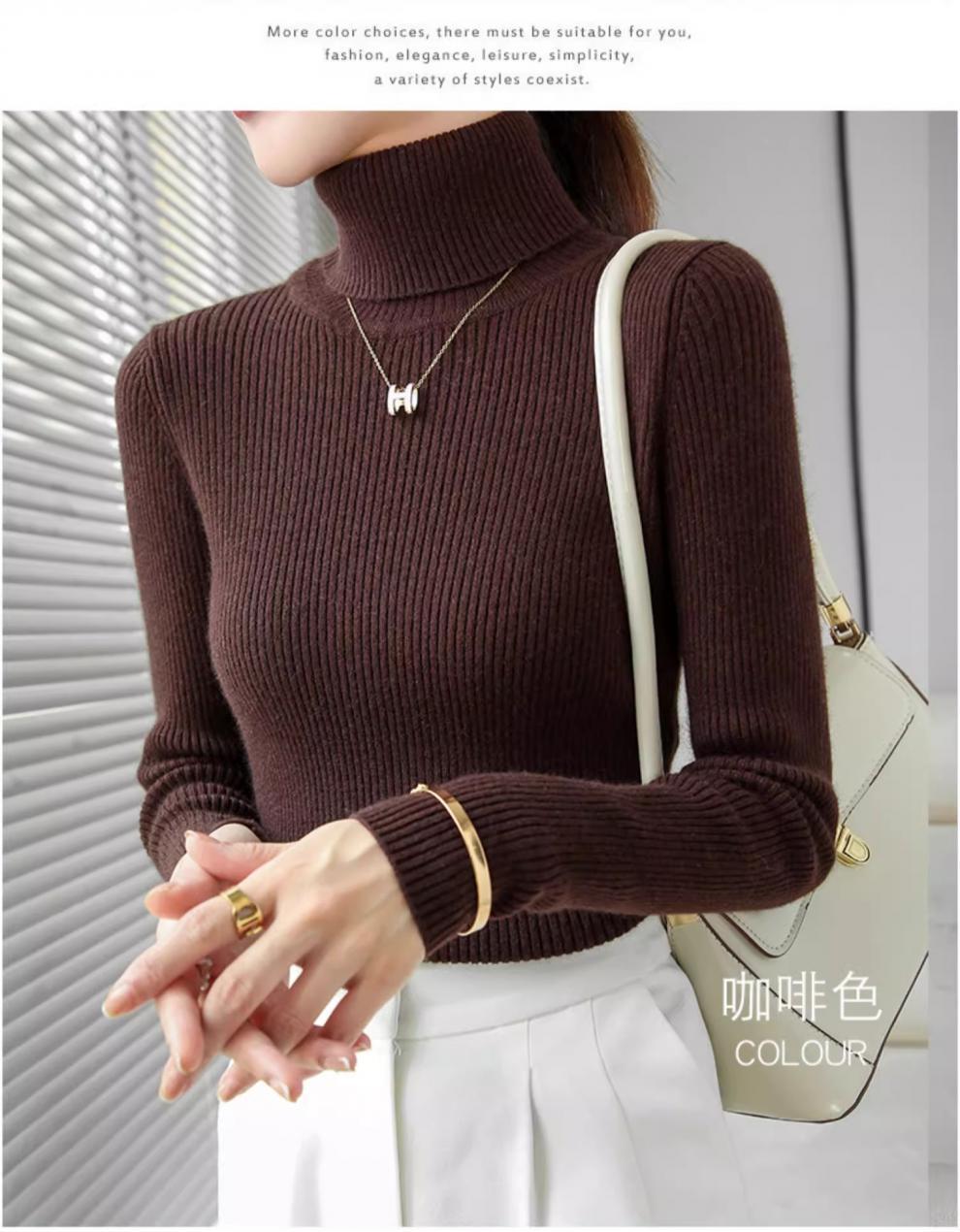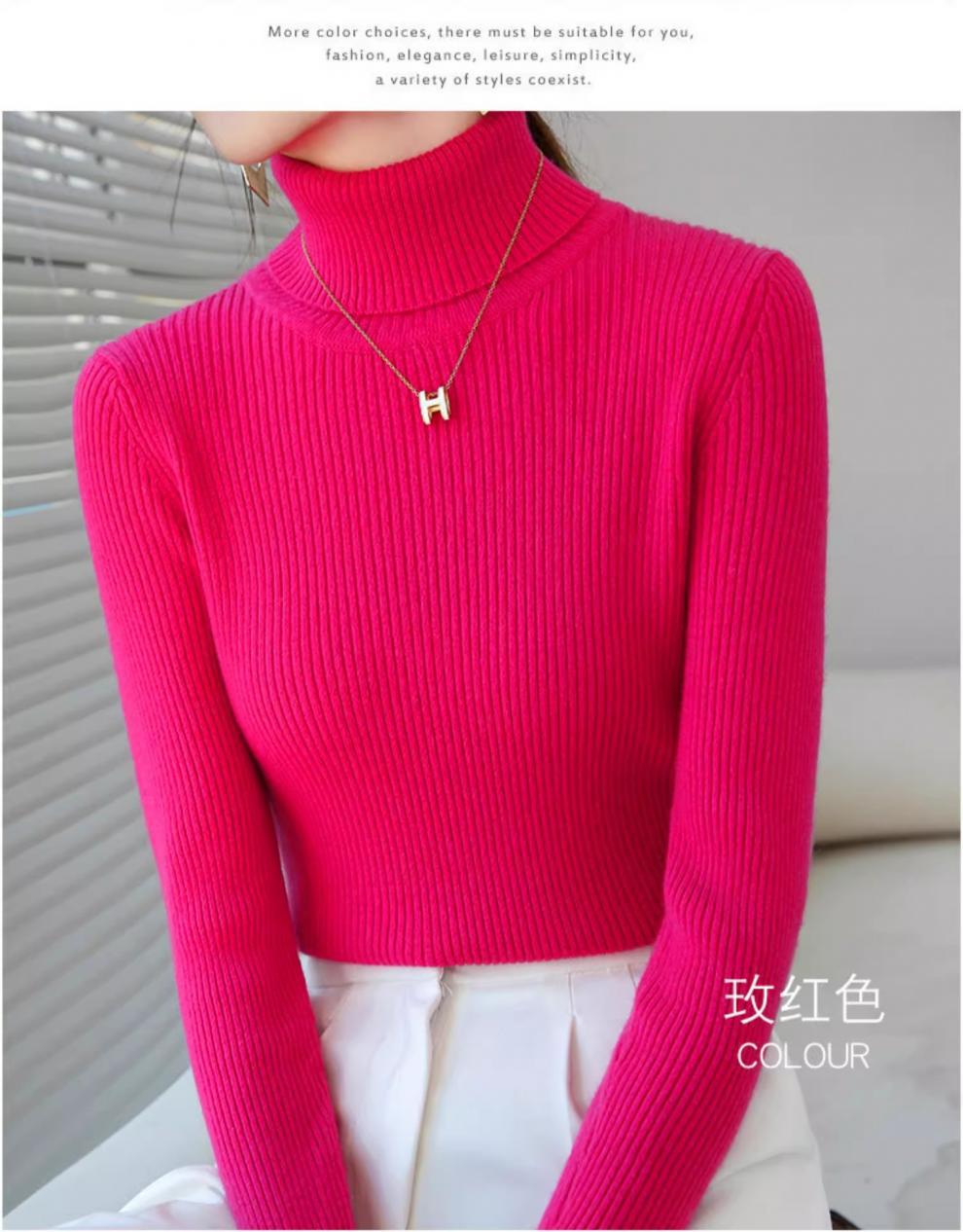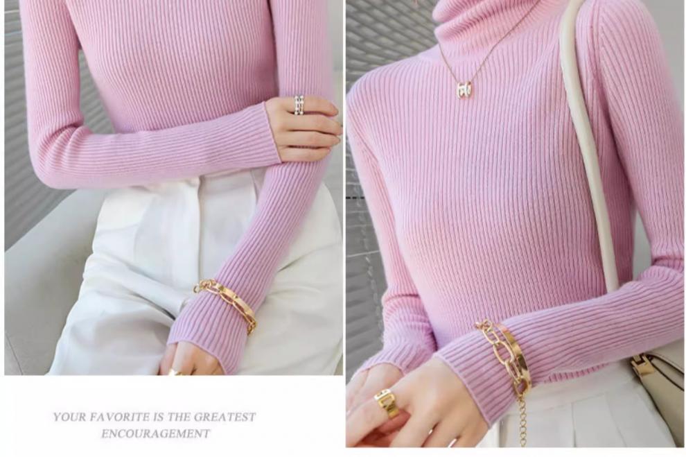 Camiseta Base de Cuello Alto para Mujer Otoño Invierno Tejido de Punto Adelgazante Azul Real Suéter Ajustado Capa Interior Top de Moda