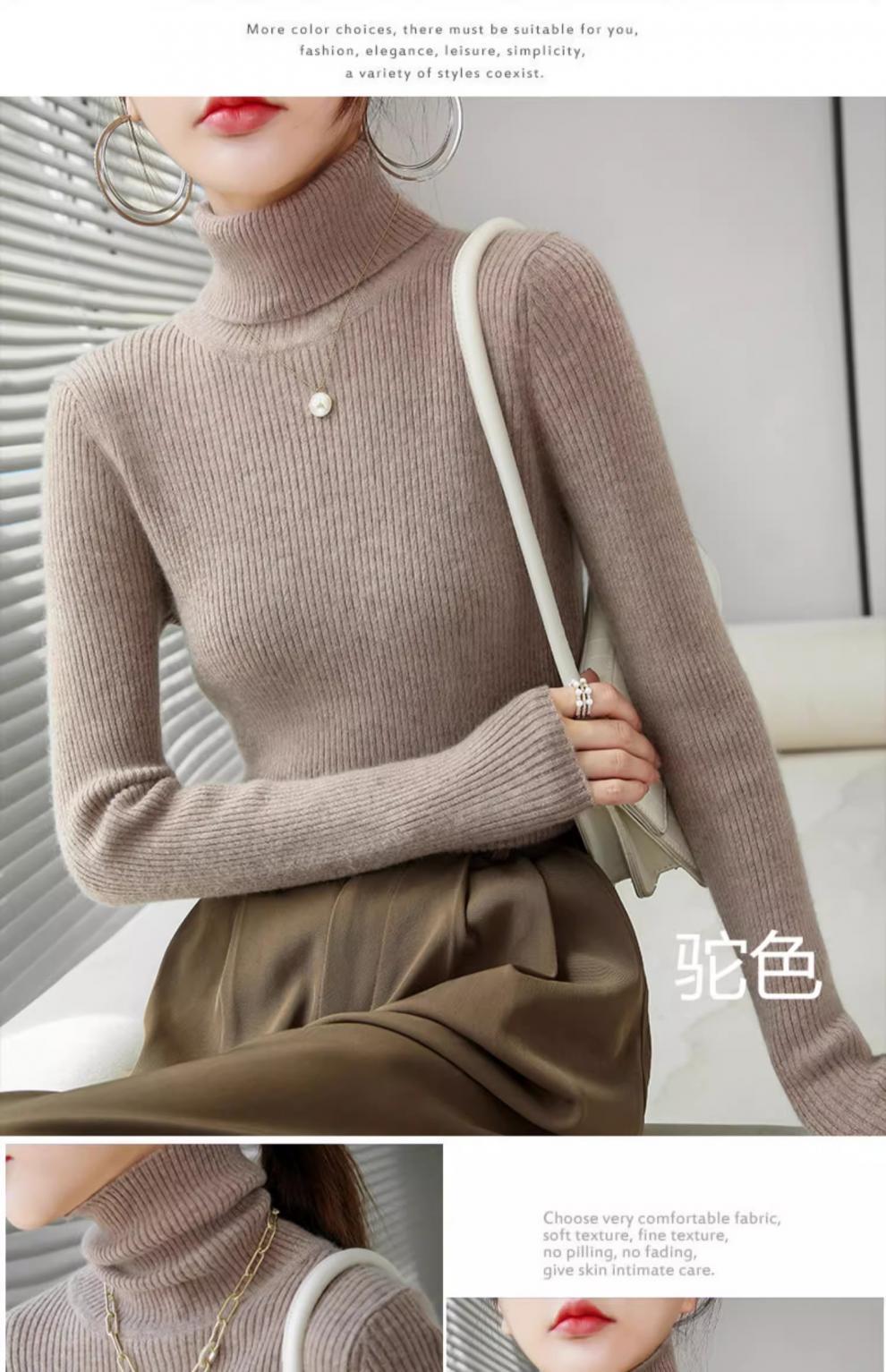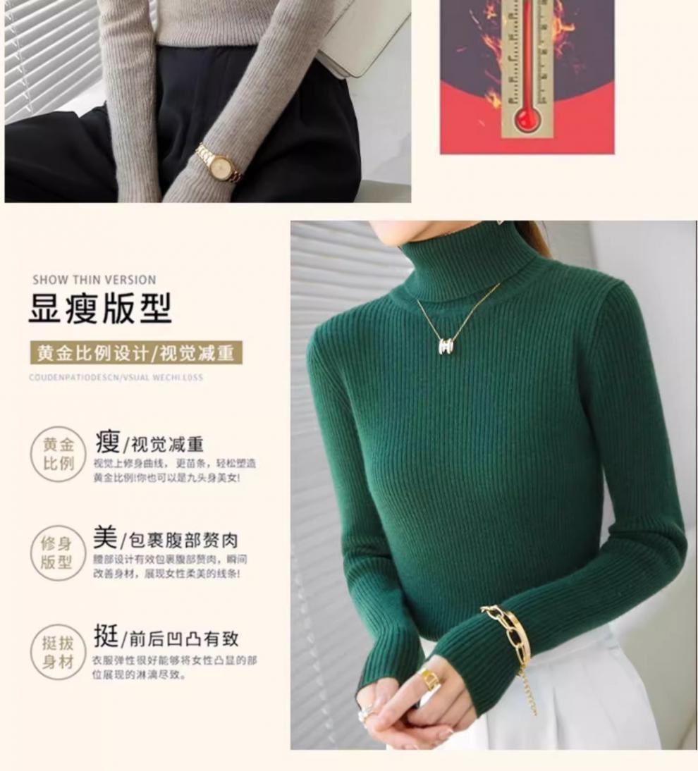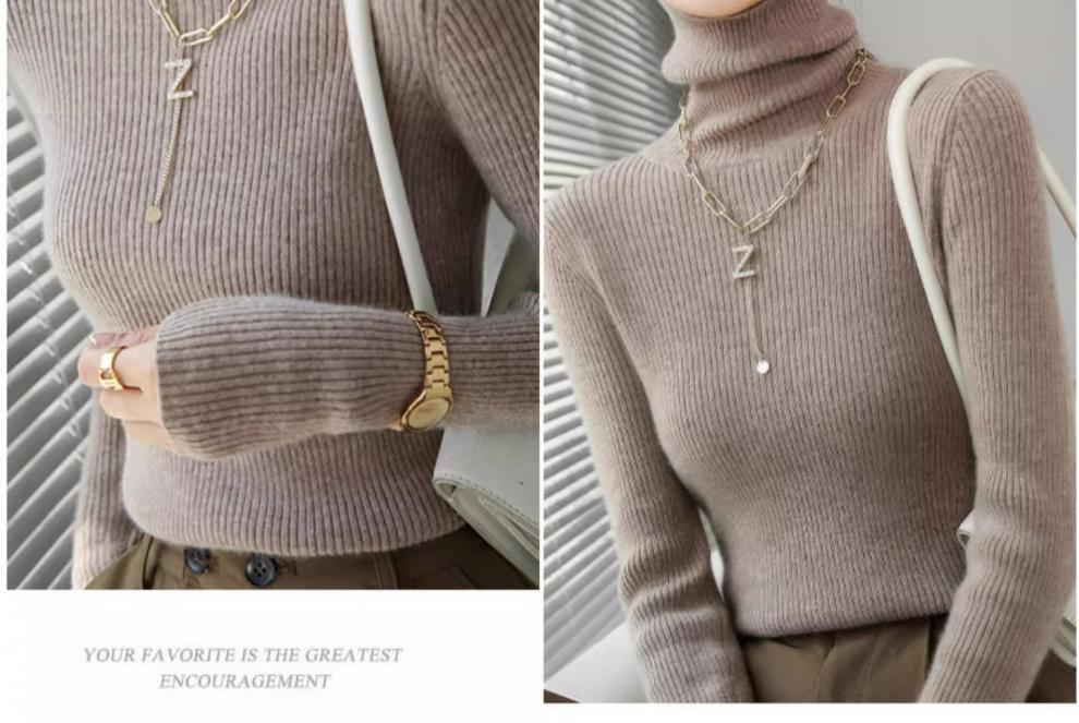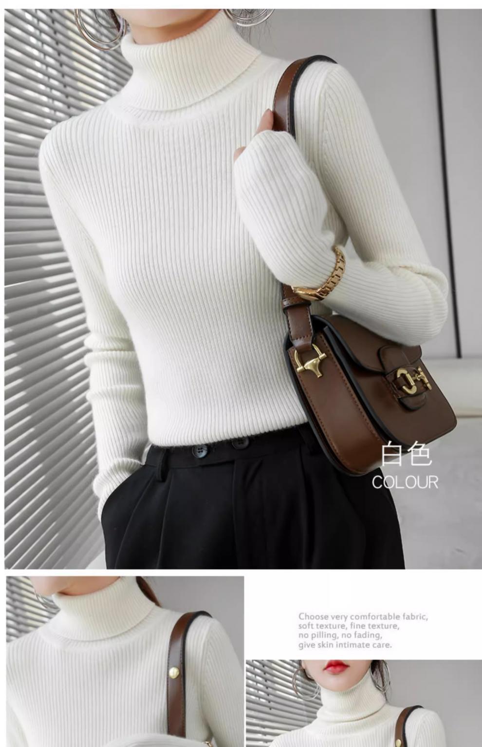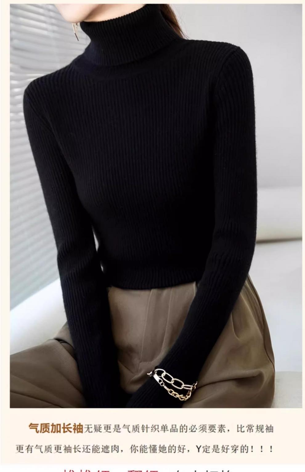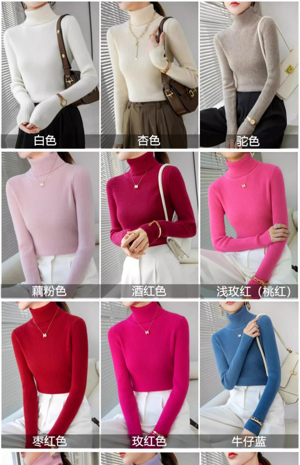 Camiseta Base de Cuello Alto para Mujer Otoño Invierno Tejido de Punto Adelgazante Azul Real Suéter Ajustado Capa Interior Top de Moda