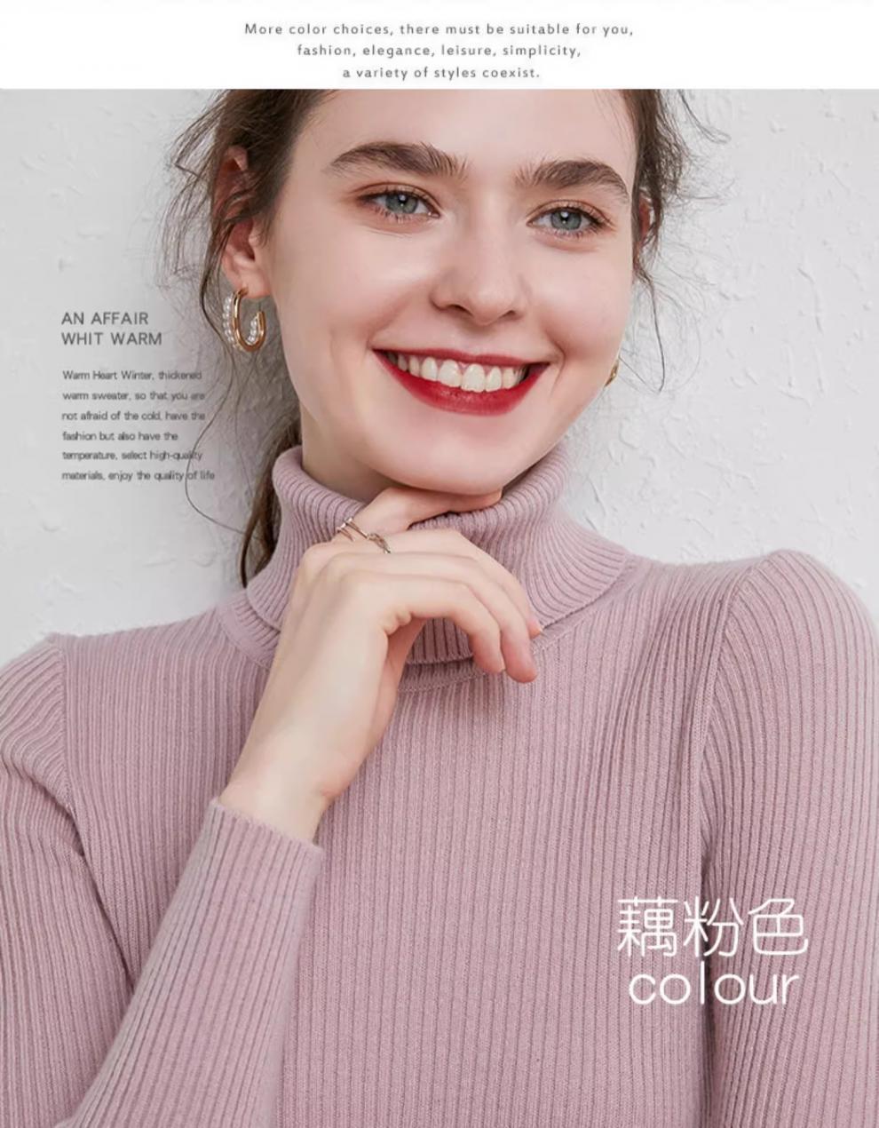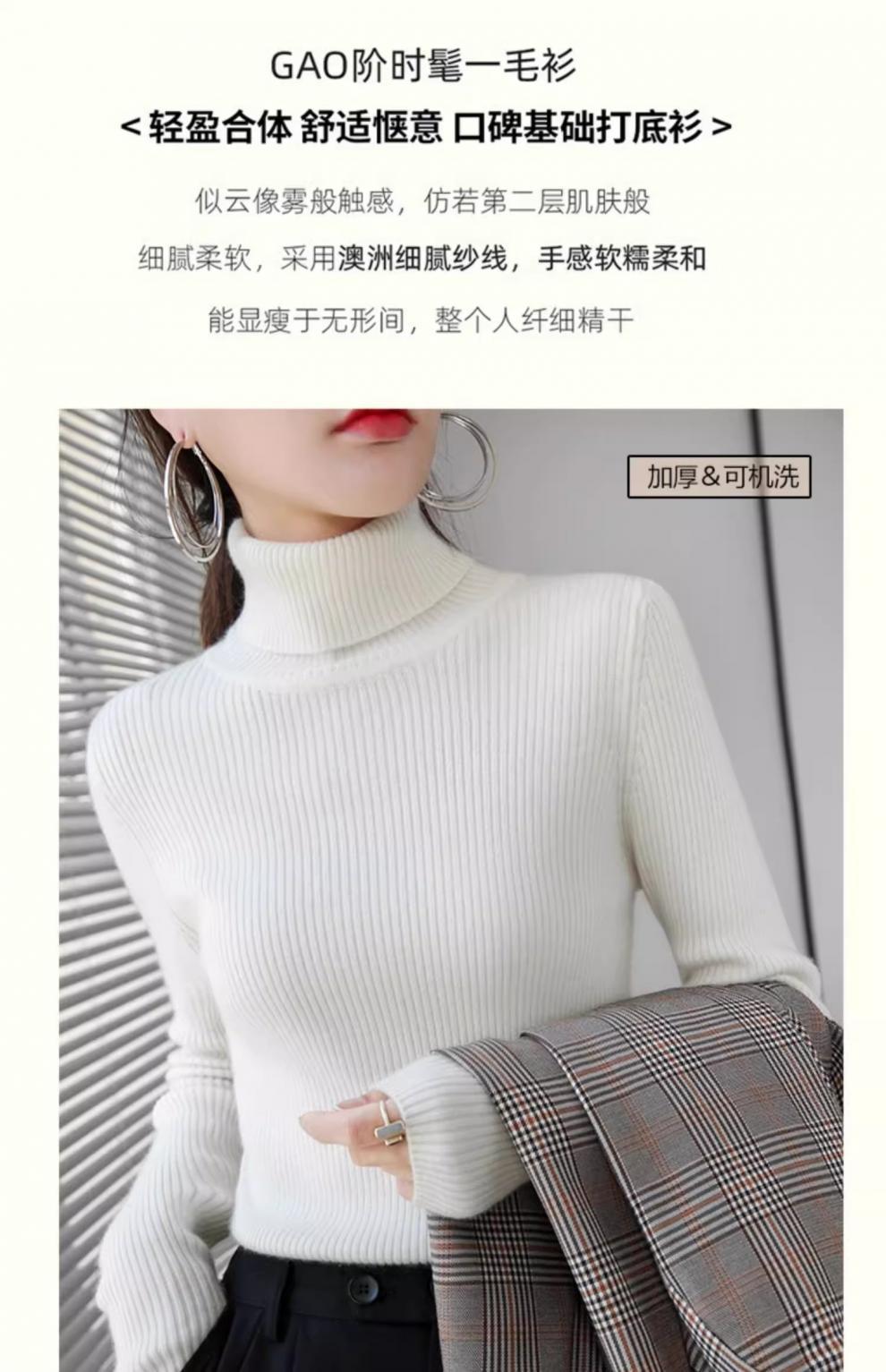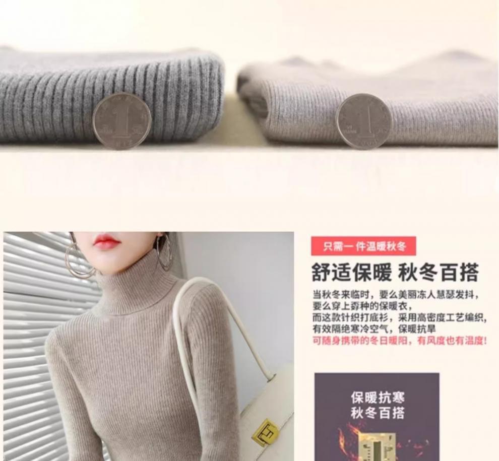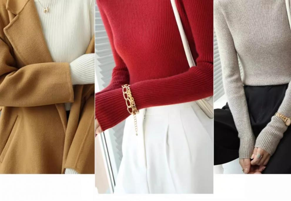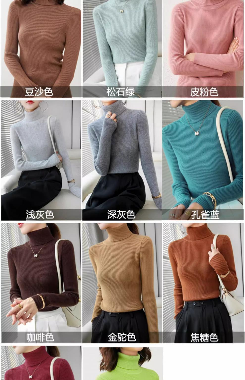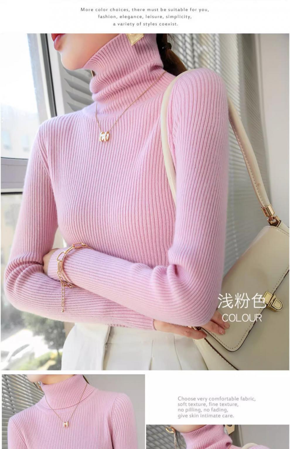 Camiseta Base de Cuello Alto para Mujer Otoño Invierno Tejido de Punto Adelgazante Azul Real Suéter Ajustado Capa Interior Top de Moda