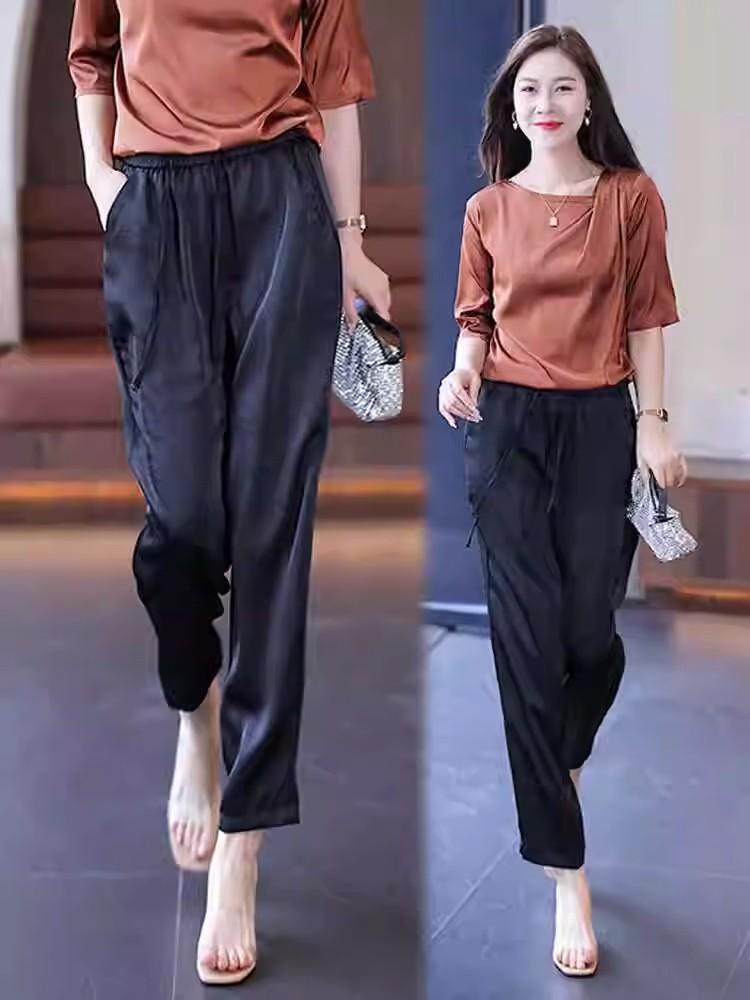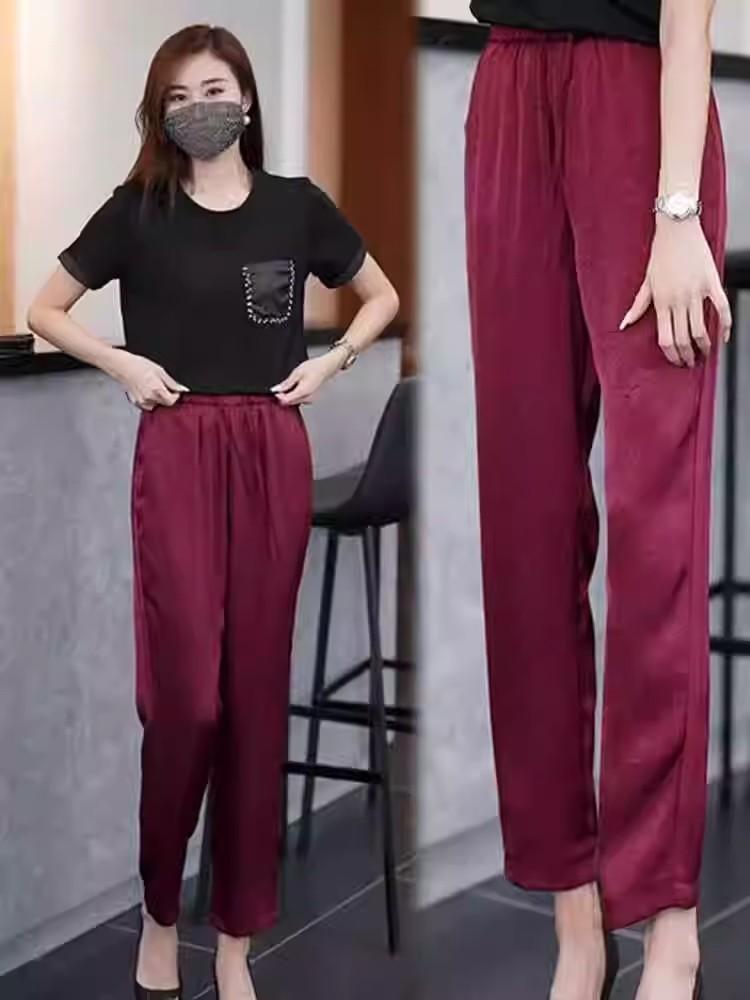 Pantalones de Mujer 2025 Nuevos Pantalones Casuales de Cintura Alta Pantalones Delgados de Verano para Mujer Pantalones Harem de Nueve Puntos Slim y Sueltos