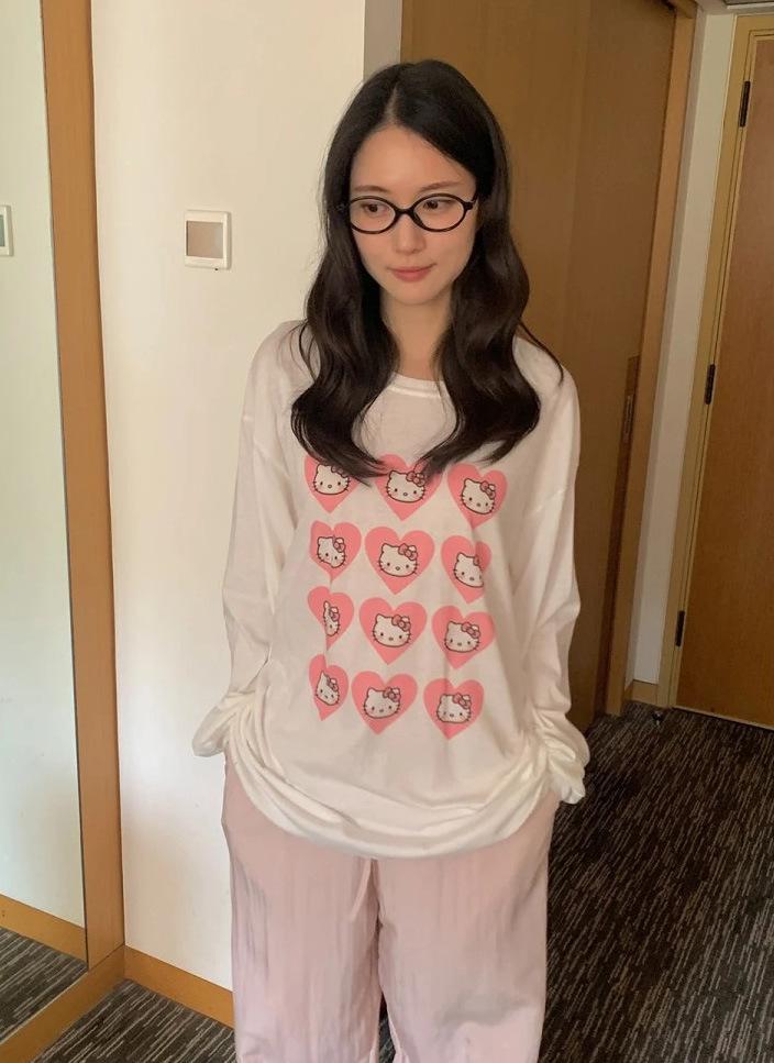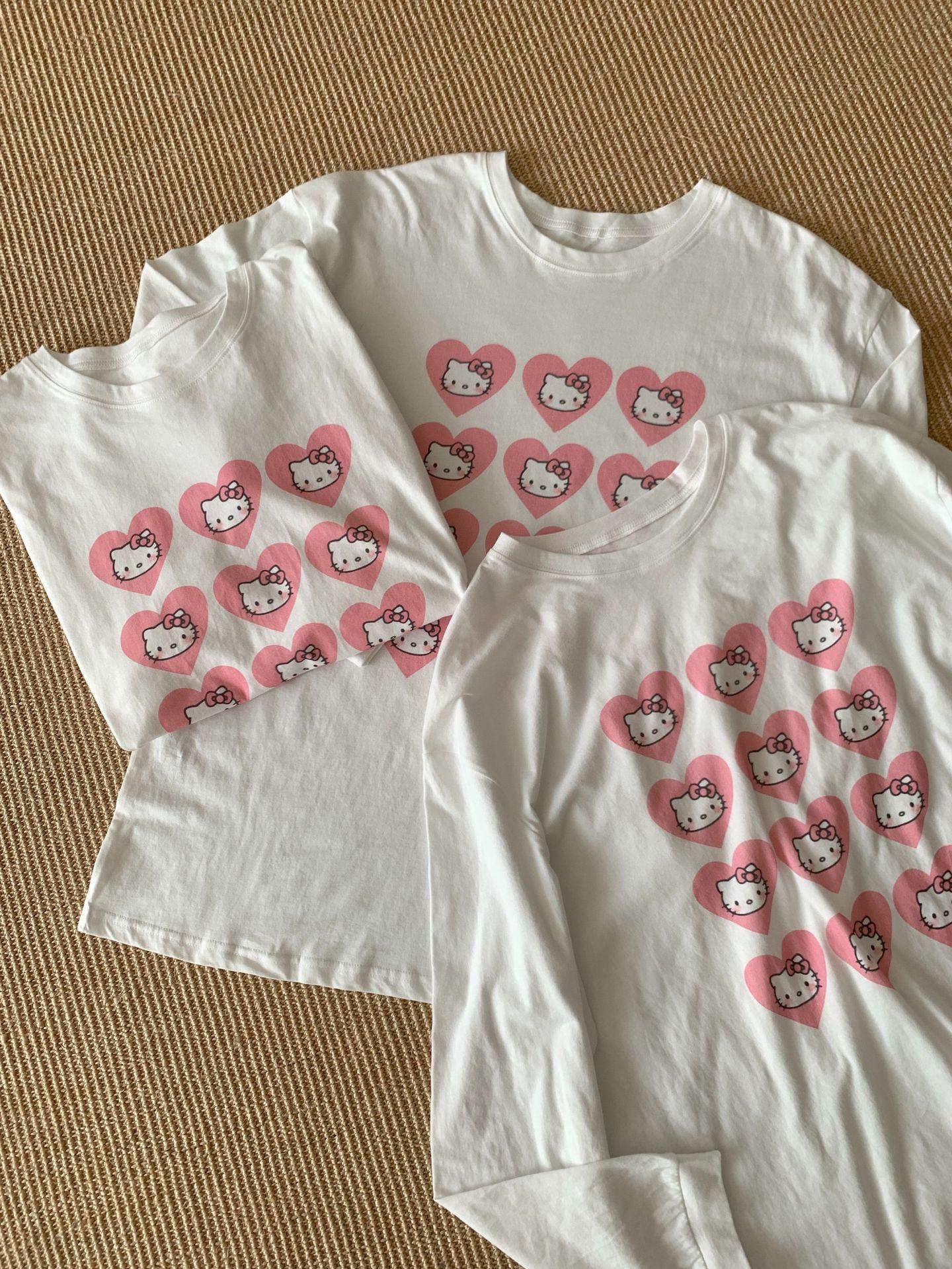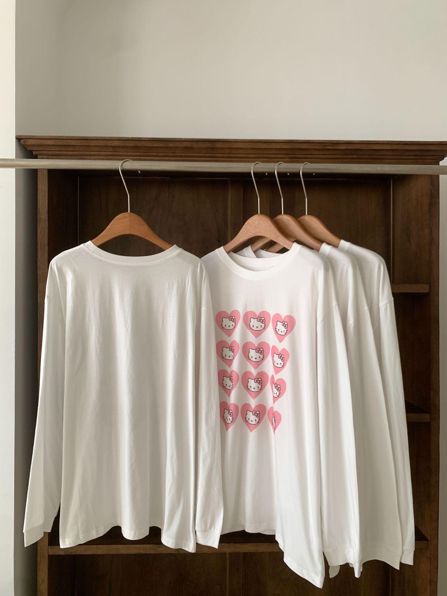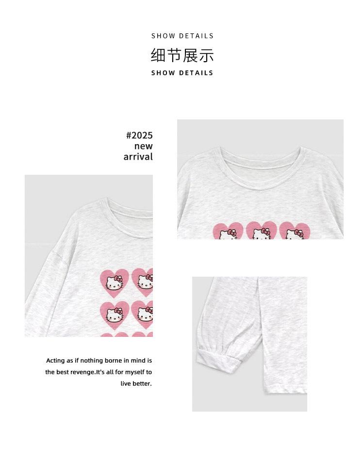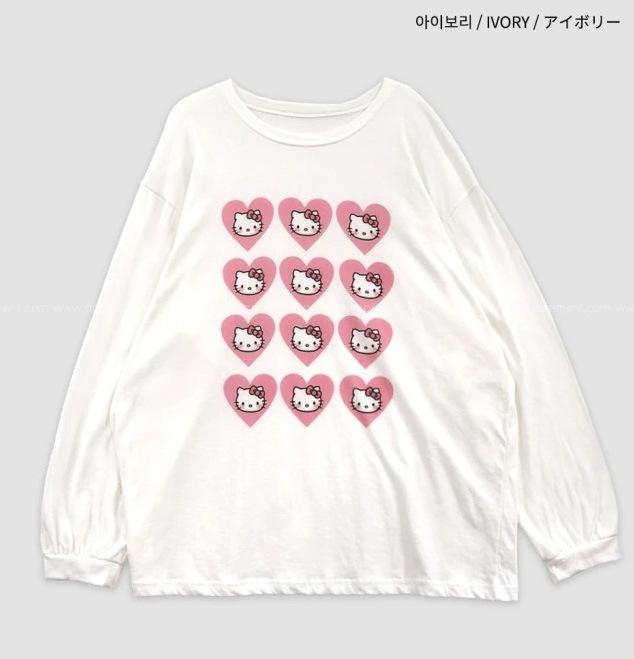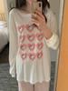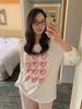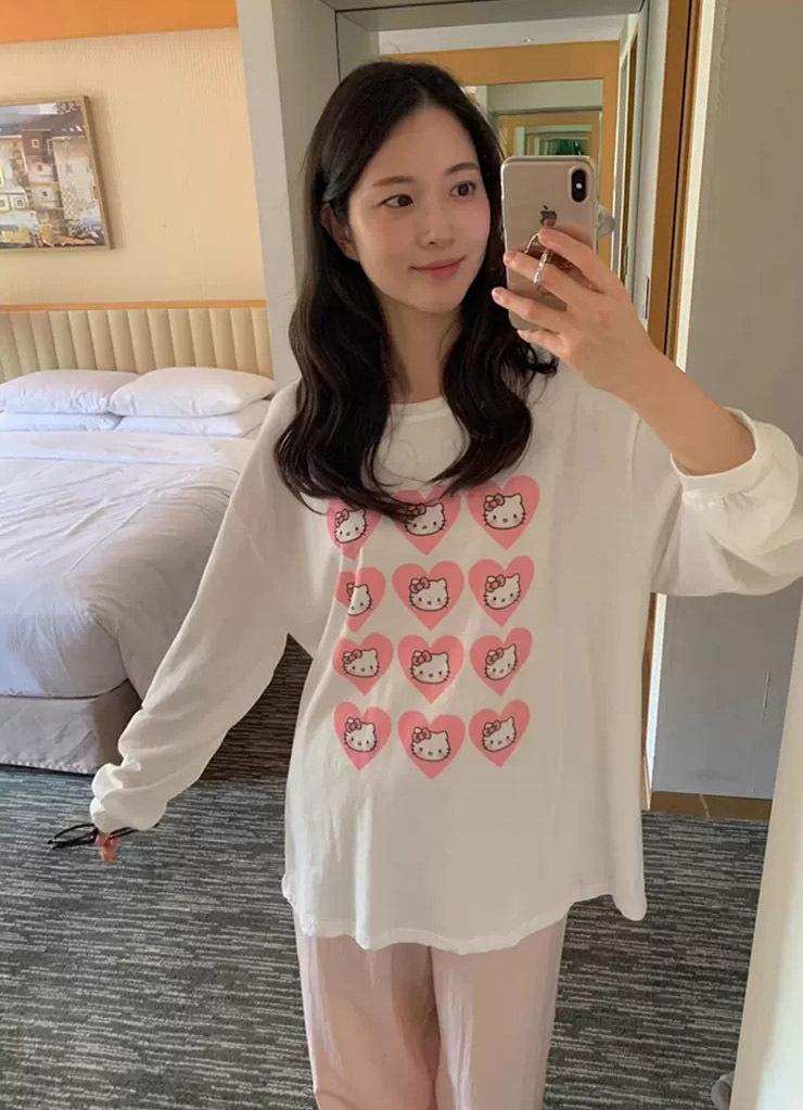 En stock 2025 Otoño Nuevo Coreano Dongdaemun Dulce Rosa Corazón Estampado de Gato Camiseta de Manga Larga Top Mujer