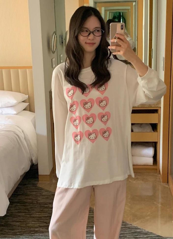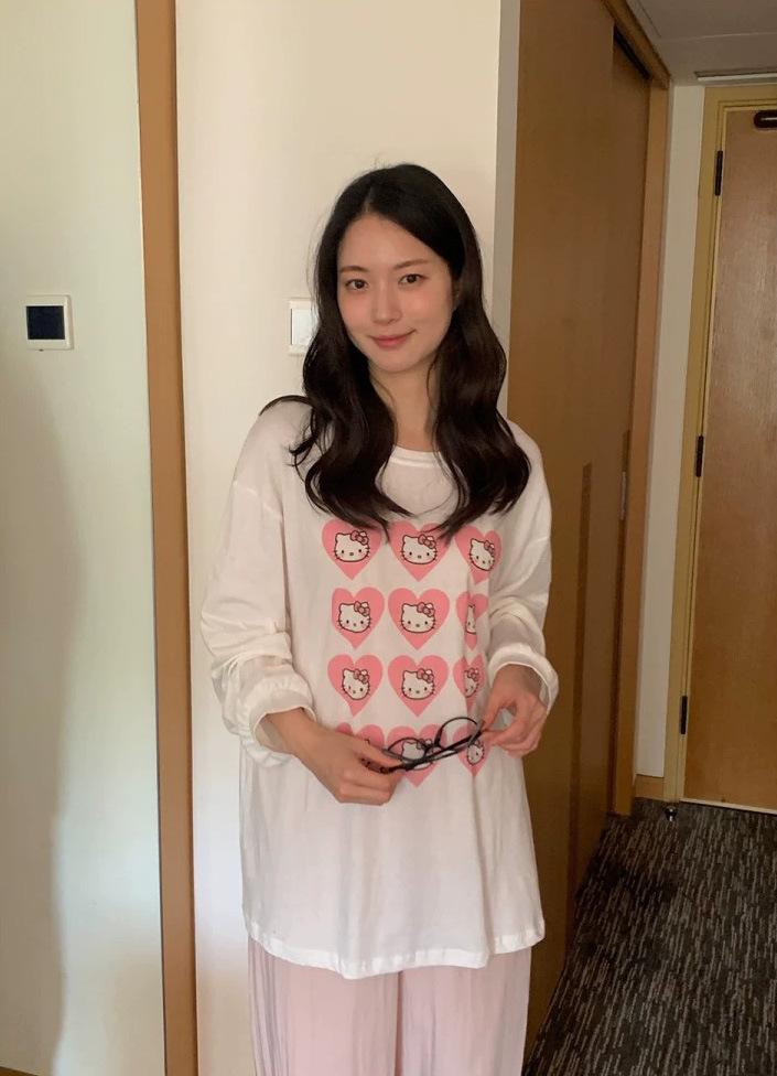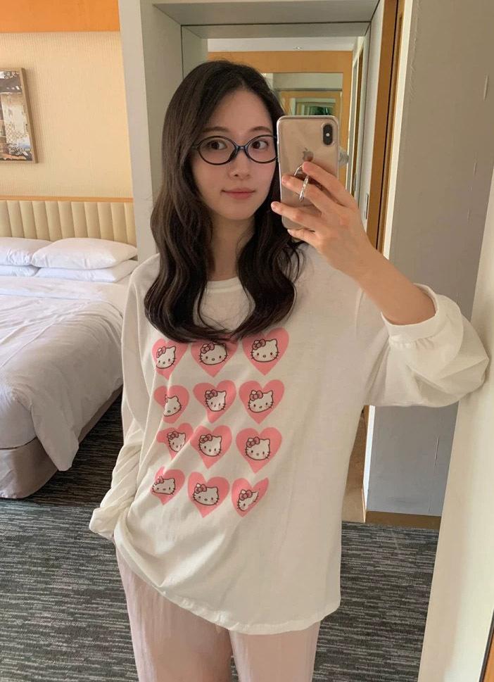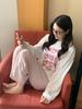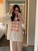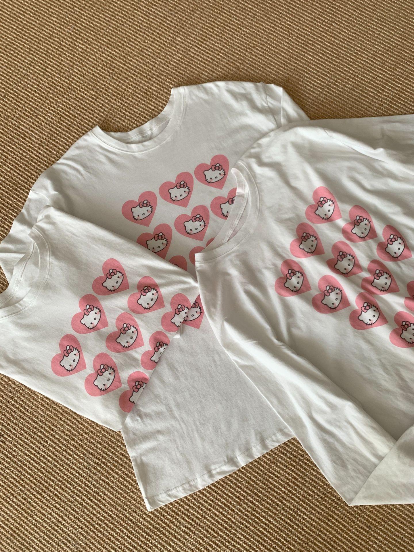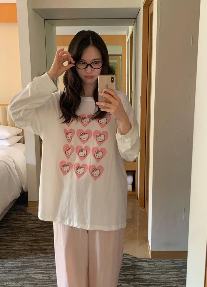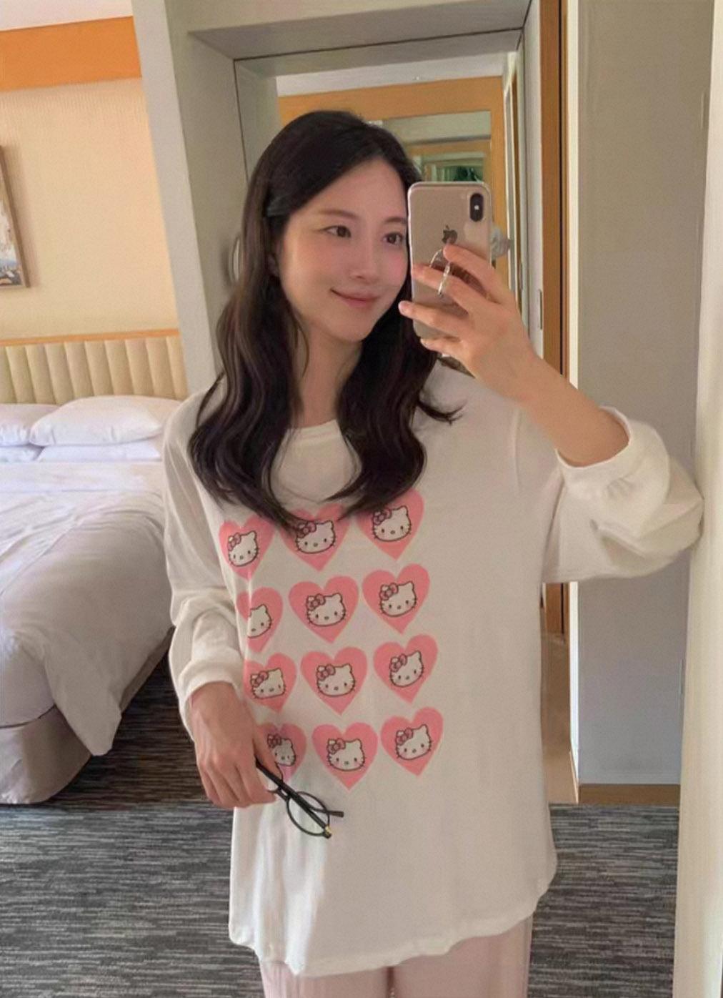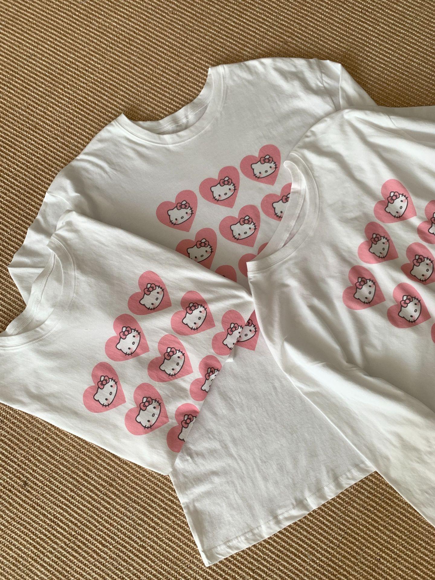 En stock 2025 Otoño Nuevo Coreano Dongdaemun Dulce Rosa Corazón Estampado de Gato Camiseta de Manga Larga Top Mujer