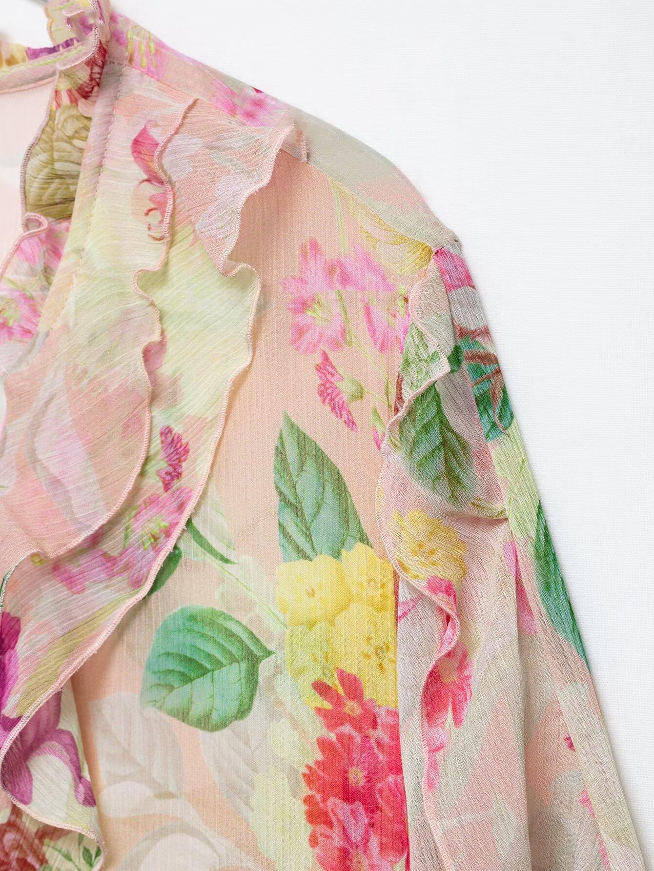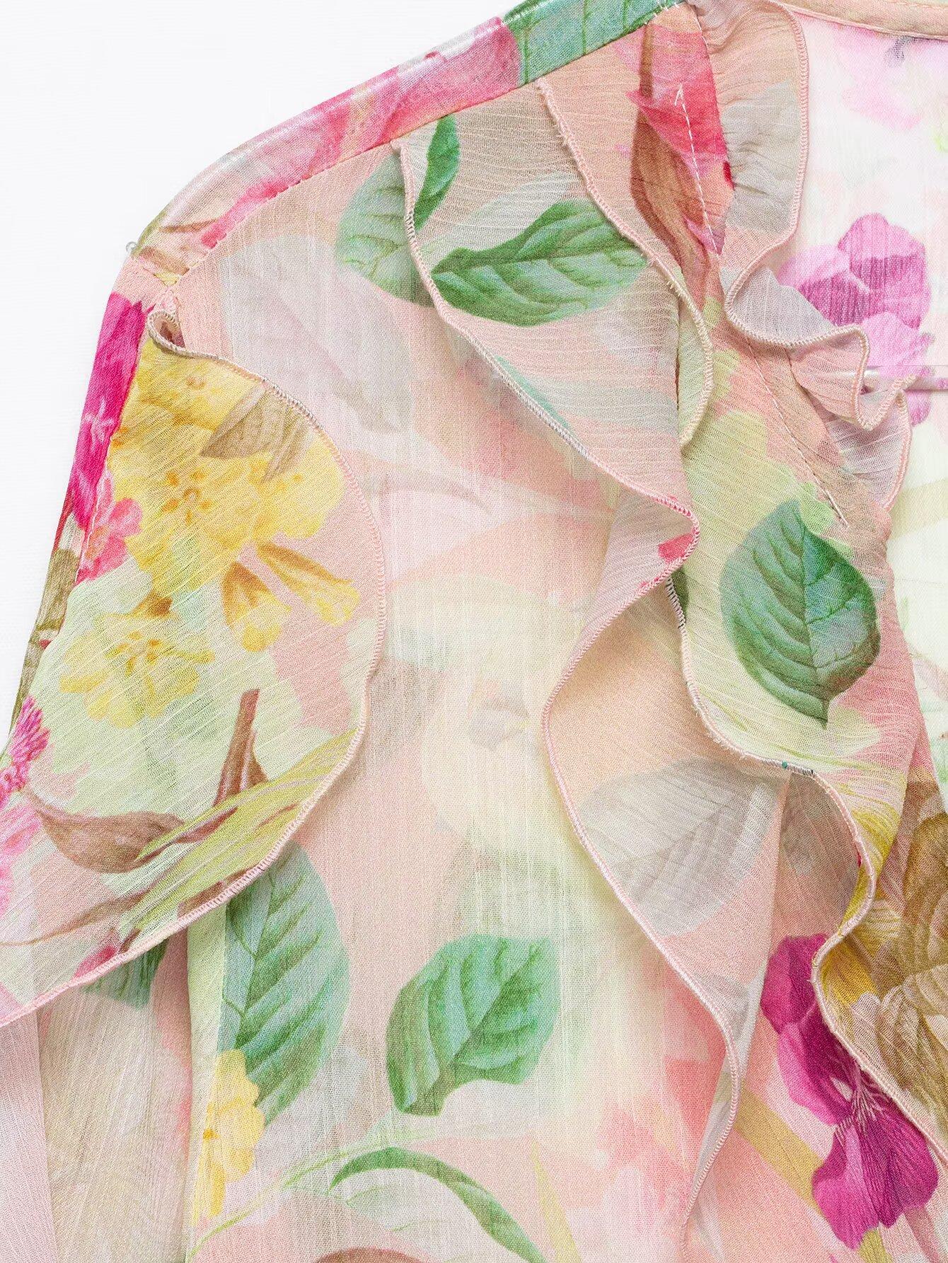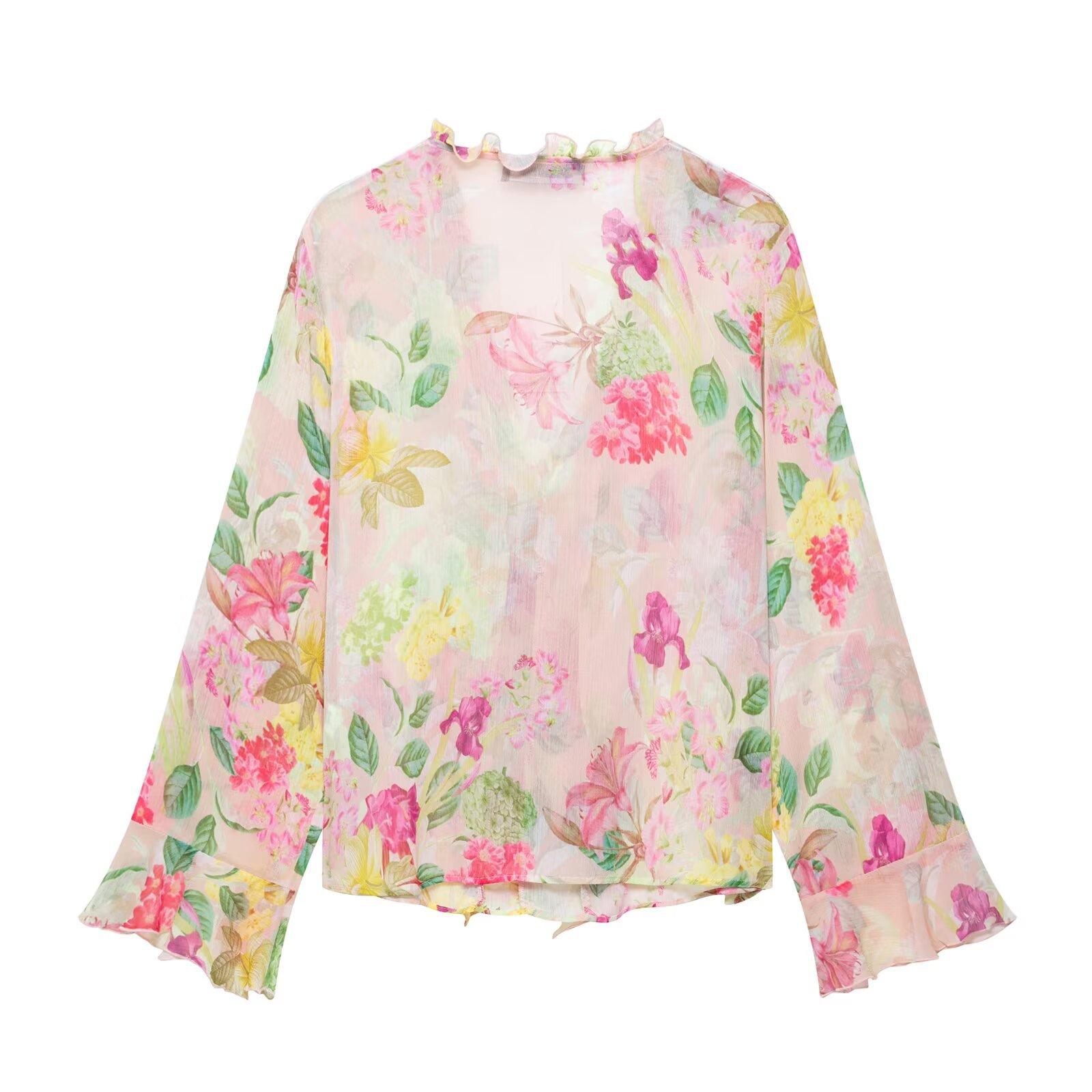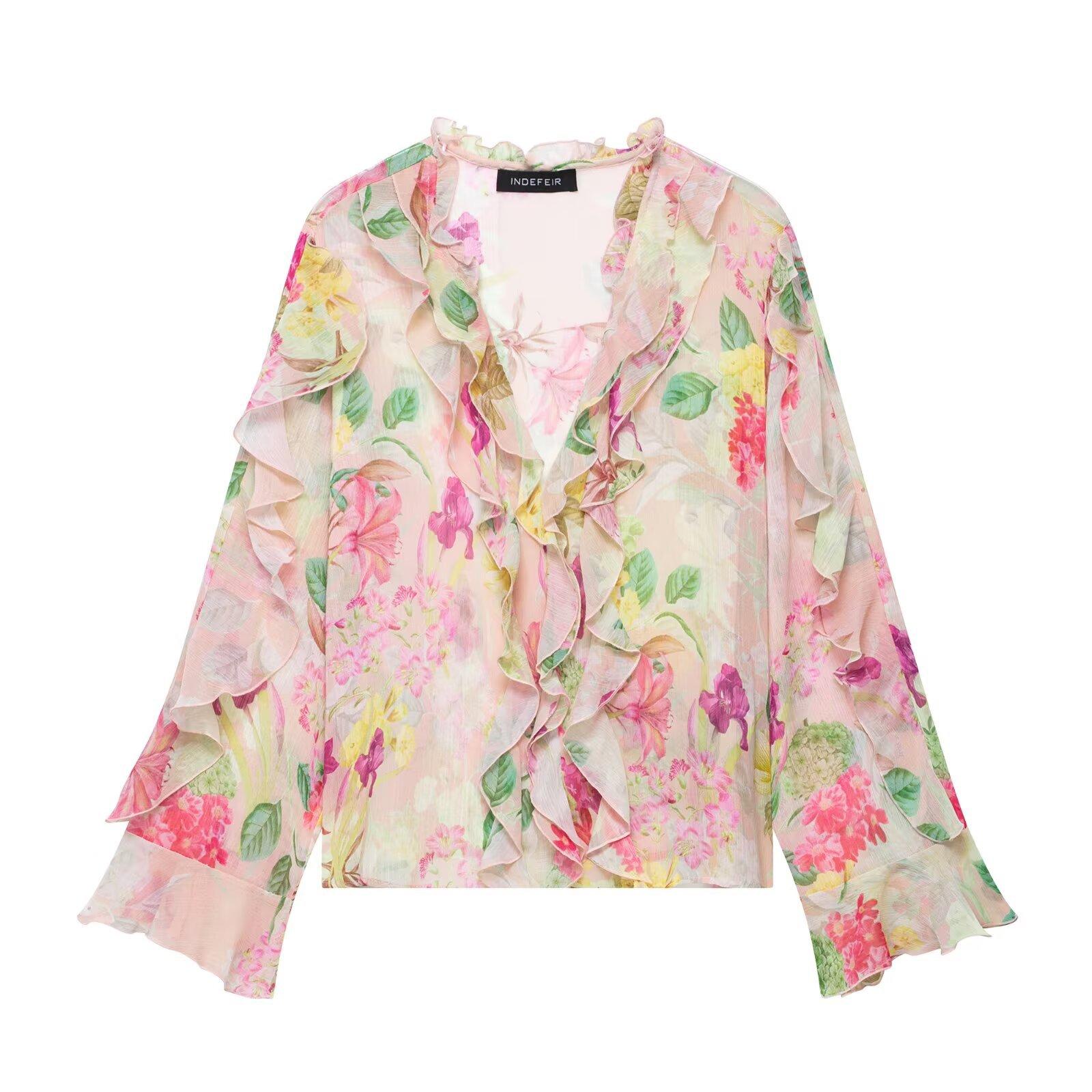 Nuevo Producto Transfronterizo 2025 Ropa de Mujer Estilo Europeo y Americano Exportación Venta al por Mayor Camisa Decorativa en Capas con Estampado Floral Zr