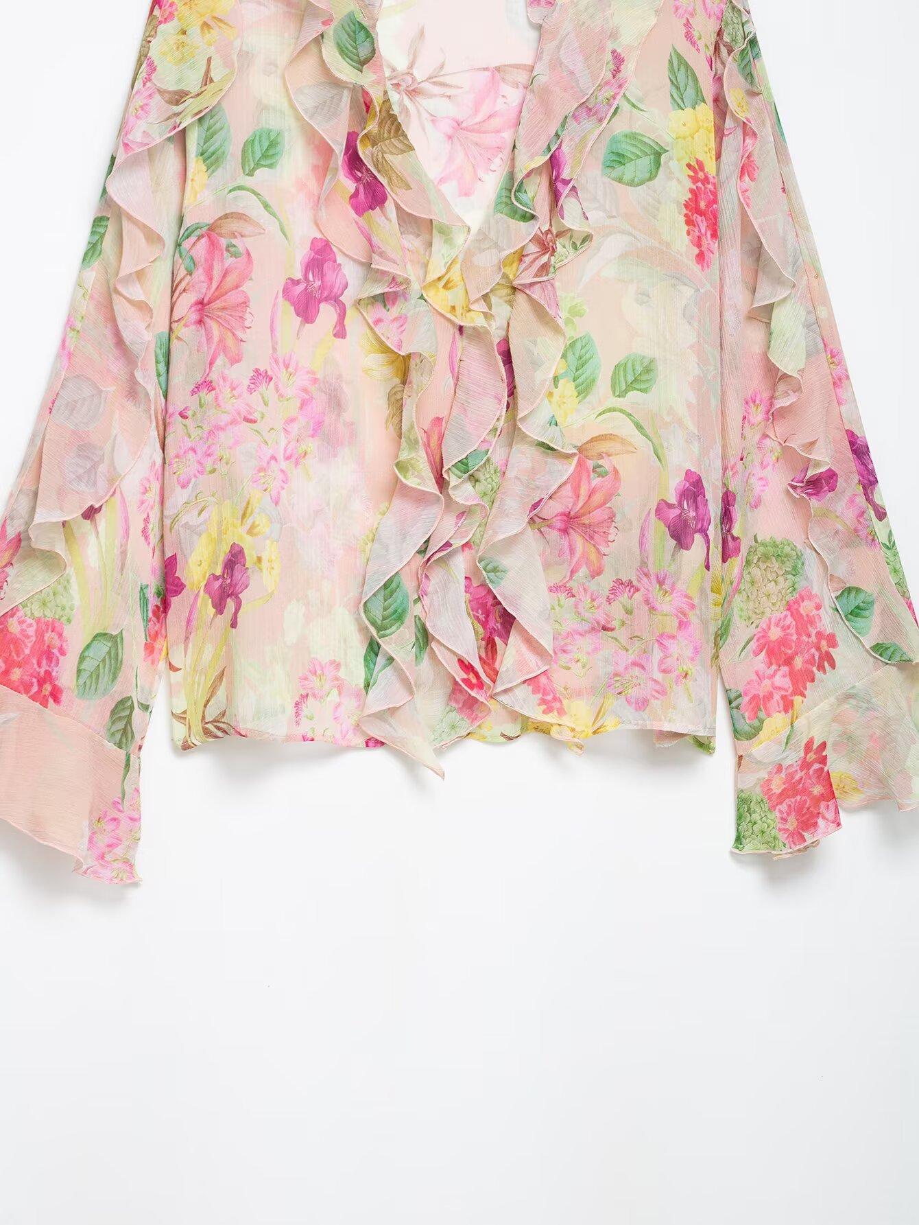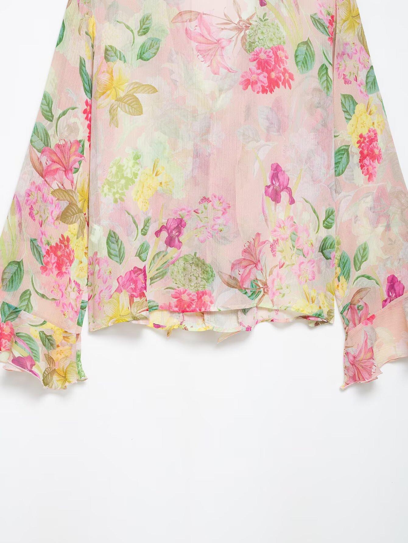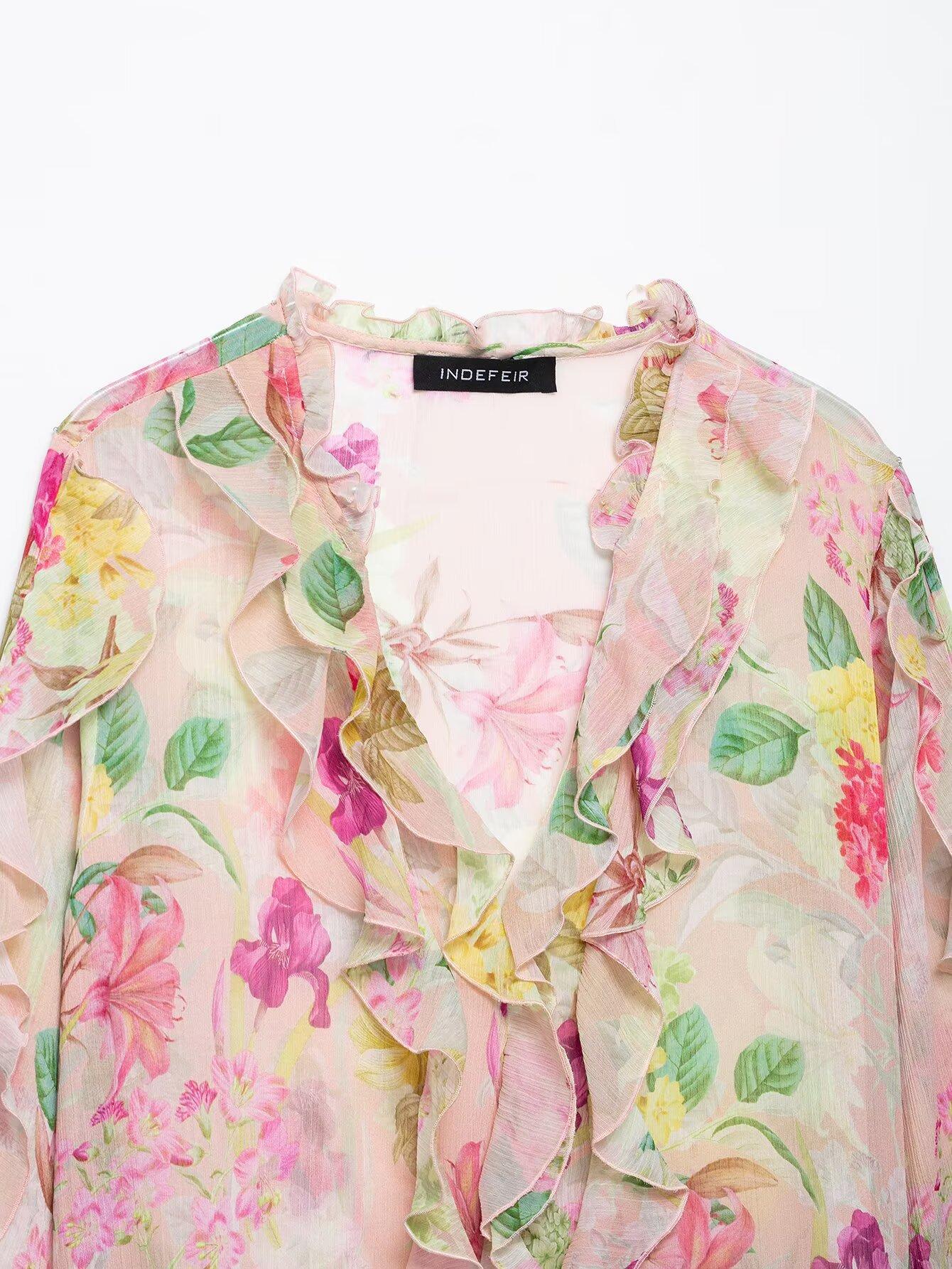 Nuevo Producto Transfronterizo 2025 Ropa de Mujer Estilo Europeo y Americano Exportación Venta al por Mayor Camisa Decorativa en Capas con Estampado Floral Zr